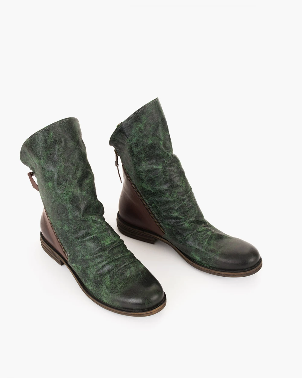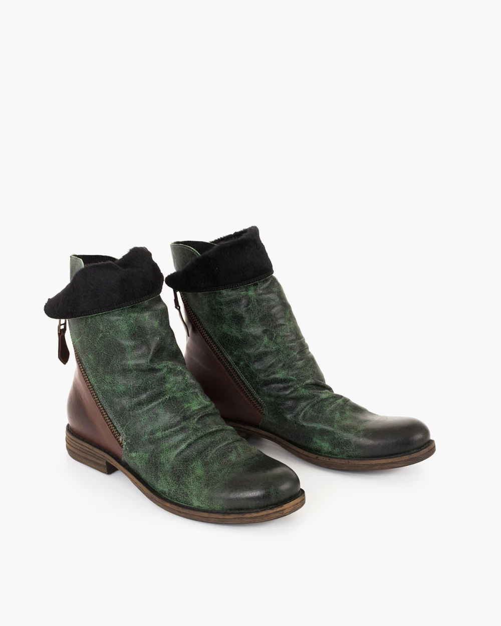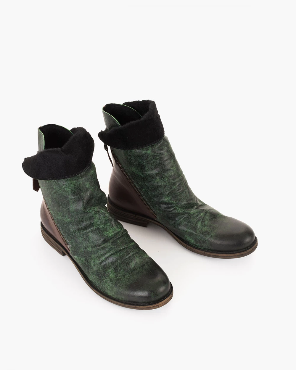 Zielone botki damskie skórzane na niskim obcasie