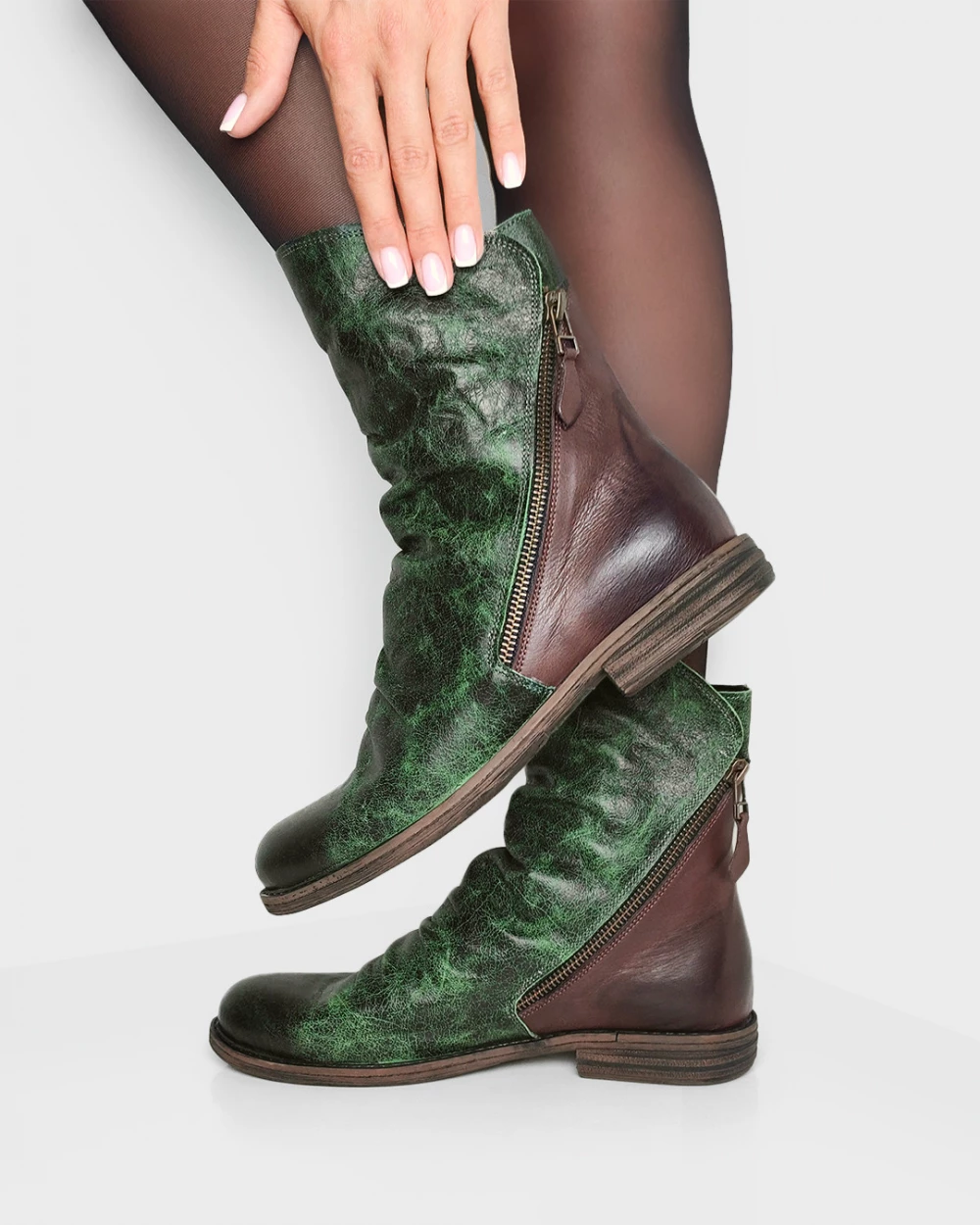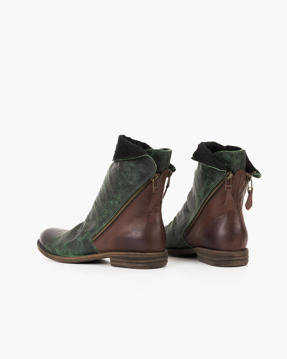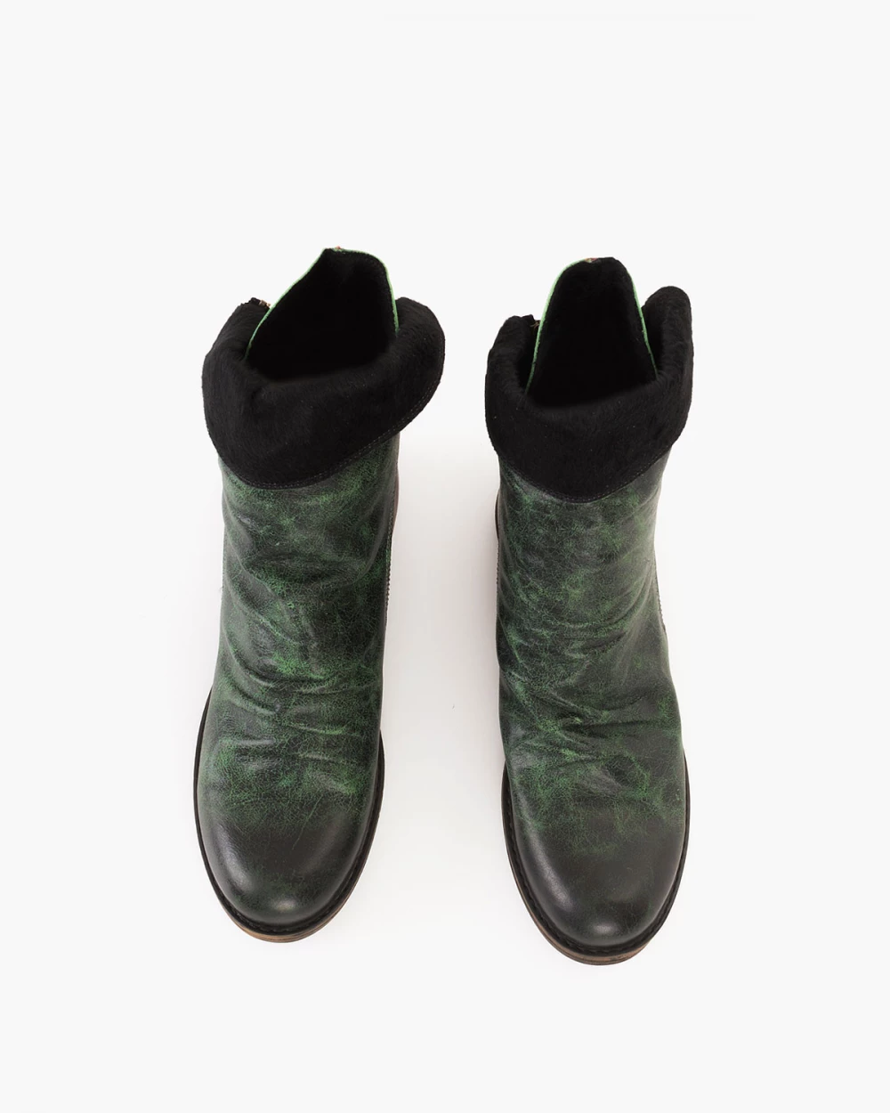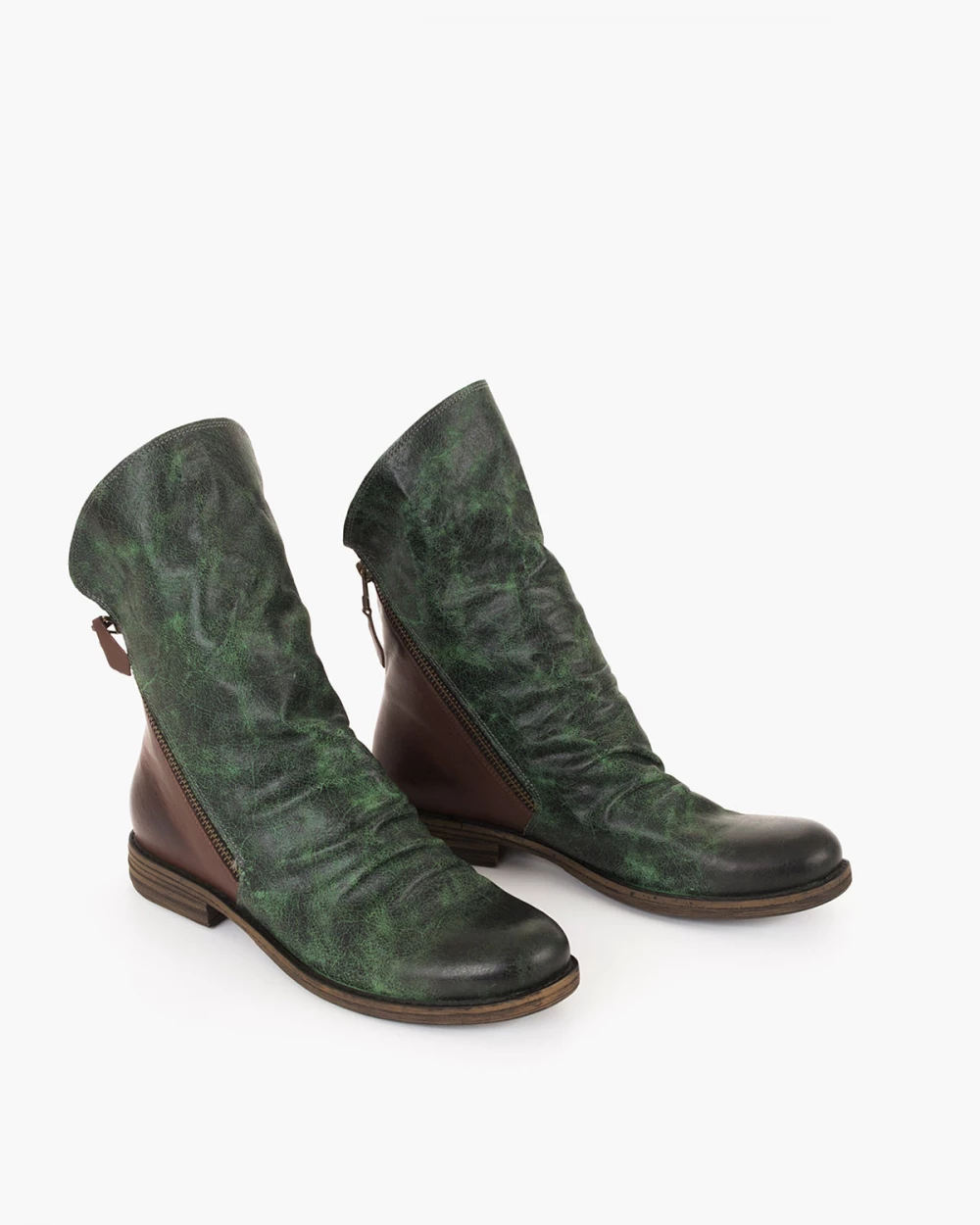 Zielone botki damskie skórzane na niskim obcasie