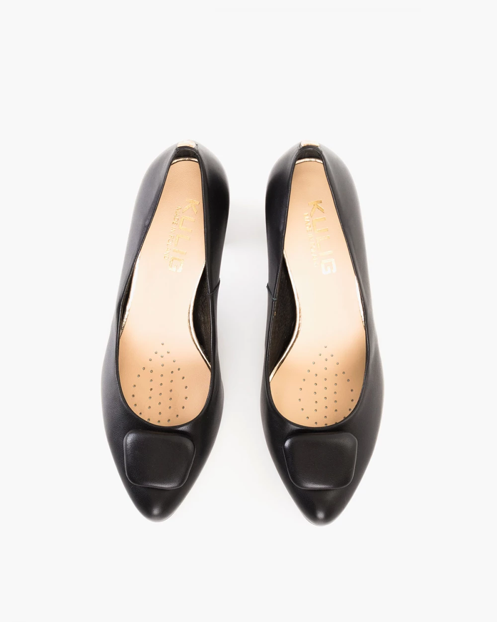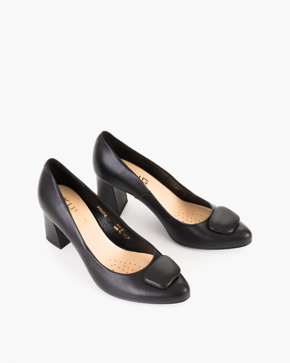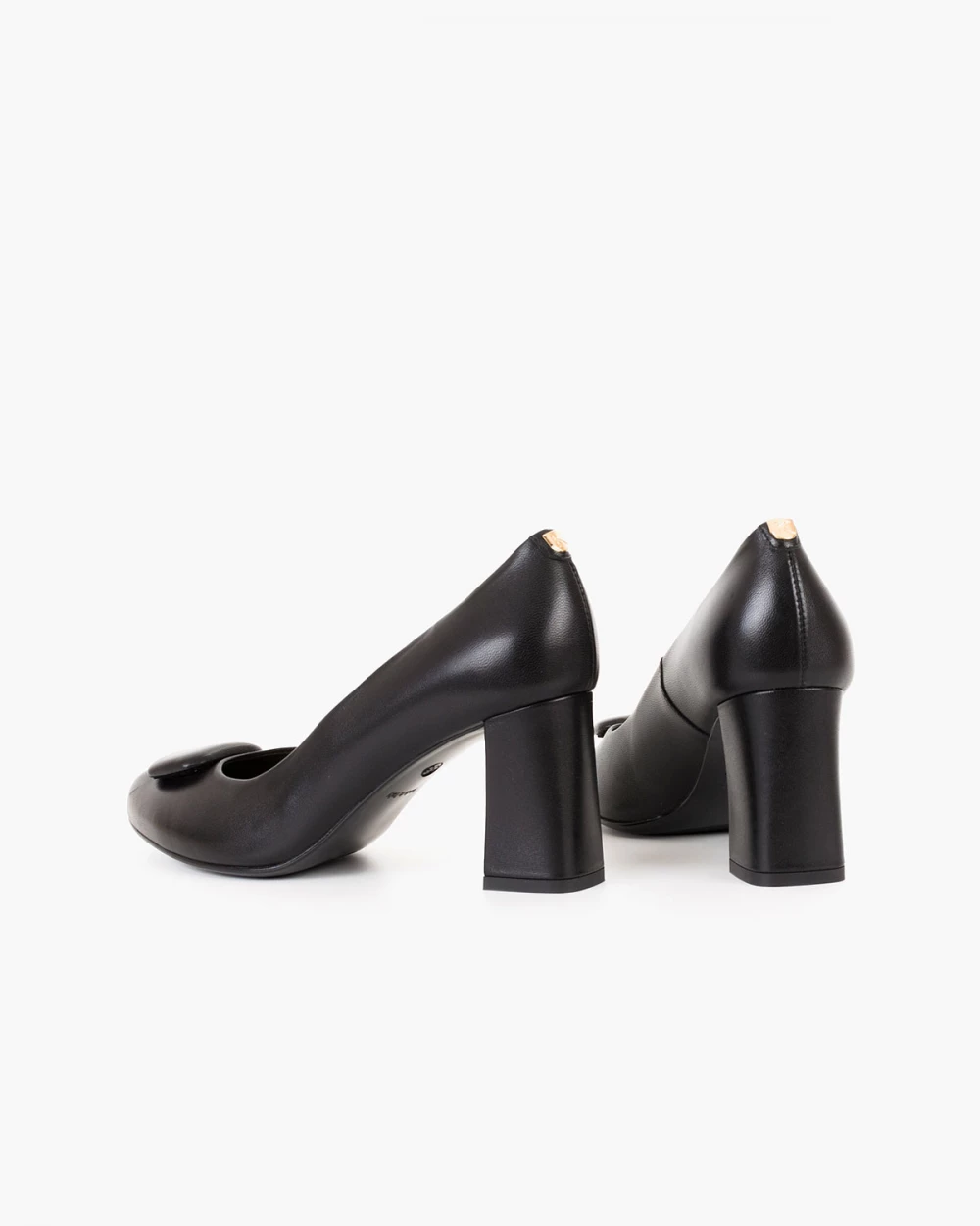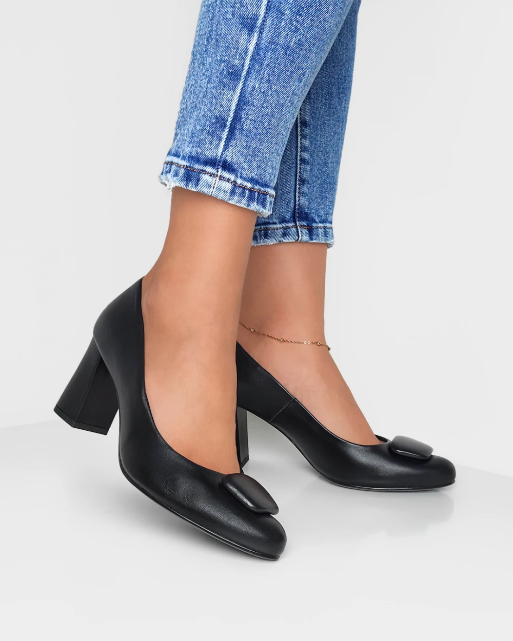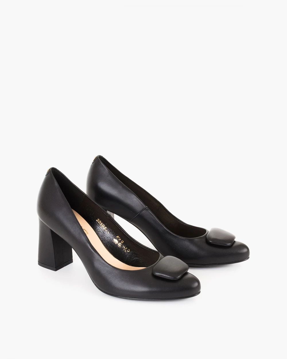 Czarne czółenka damskie ze skóry naturalnej na słupku