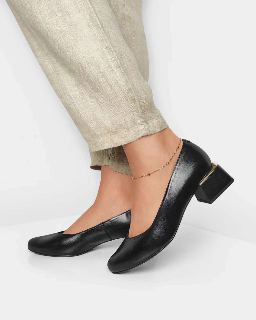 Czarne czółenka damskie skórzane na klocku