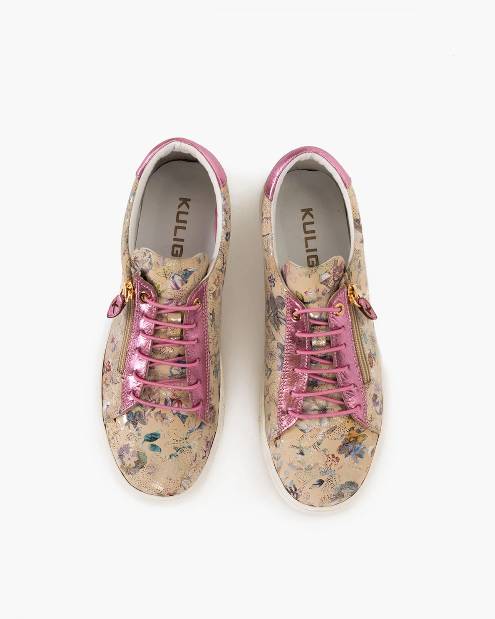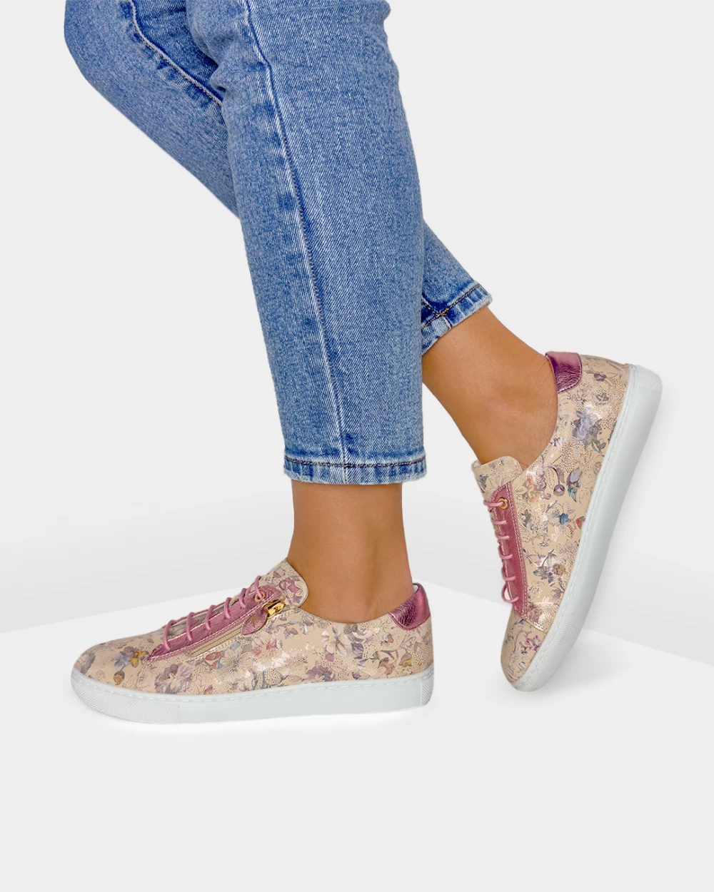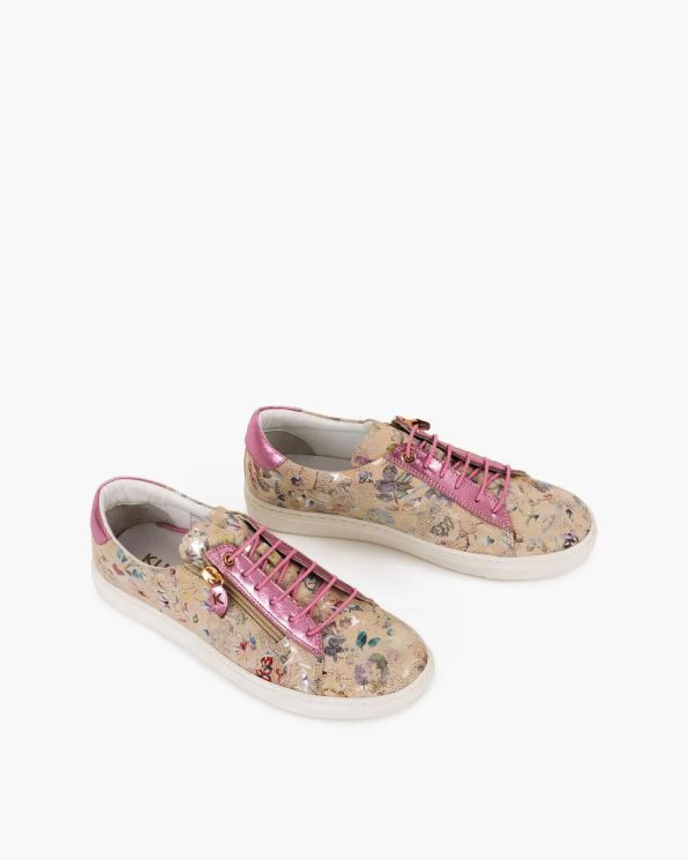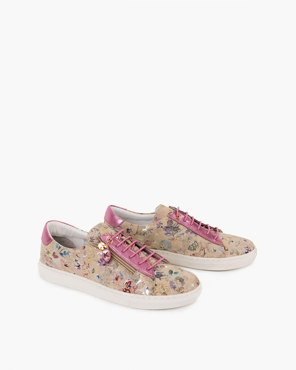 Wielokolorowe półbuty damskie skórzane z motywem kwiatowym