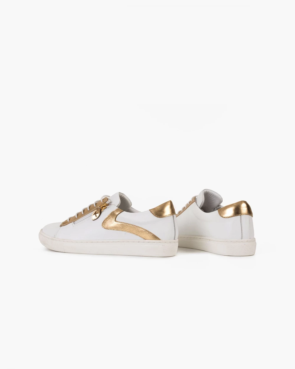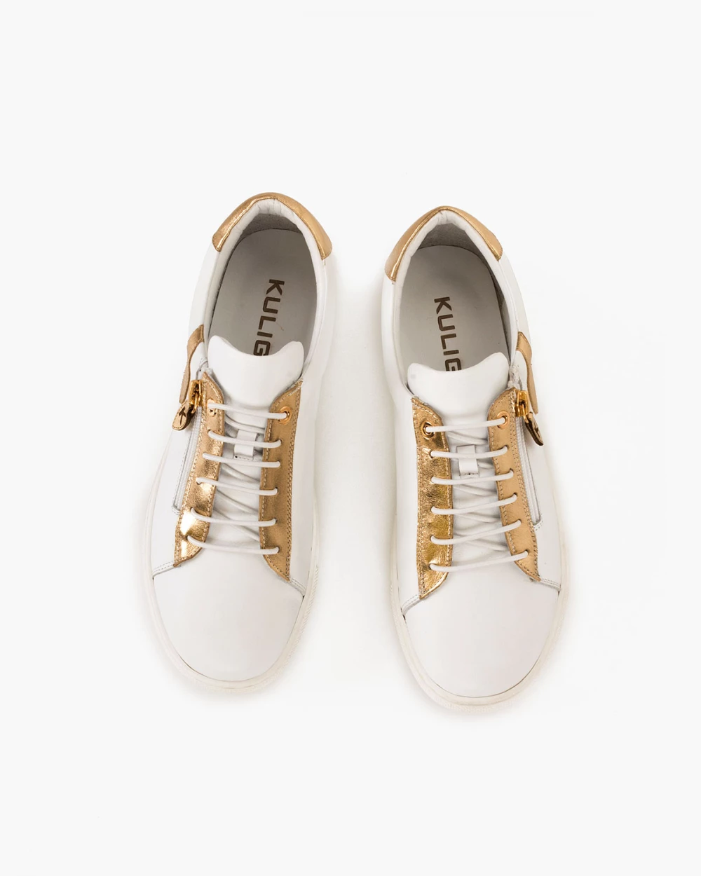 Biało-złote półbuty damskie z naturalnej skóry licowej