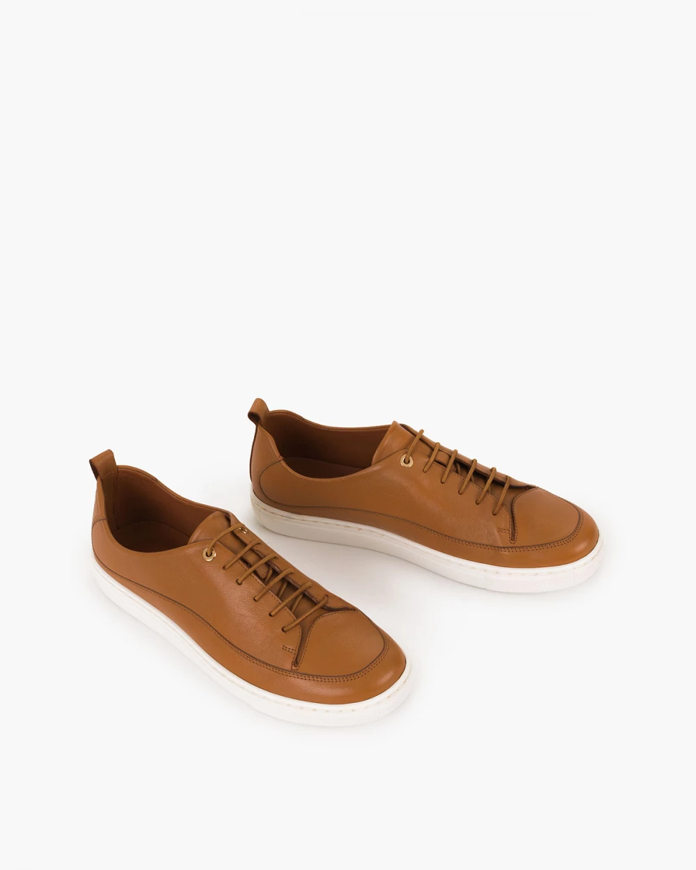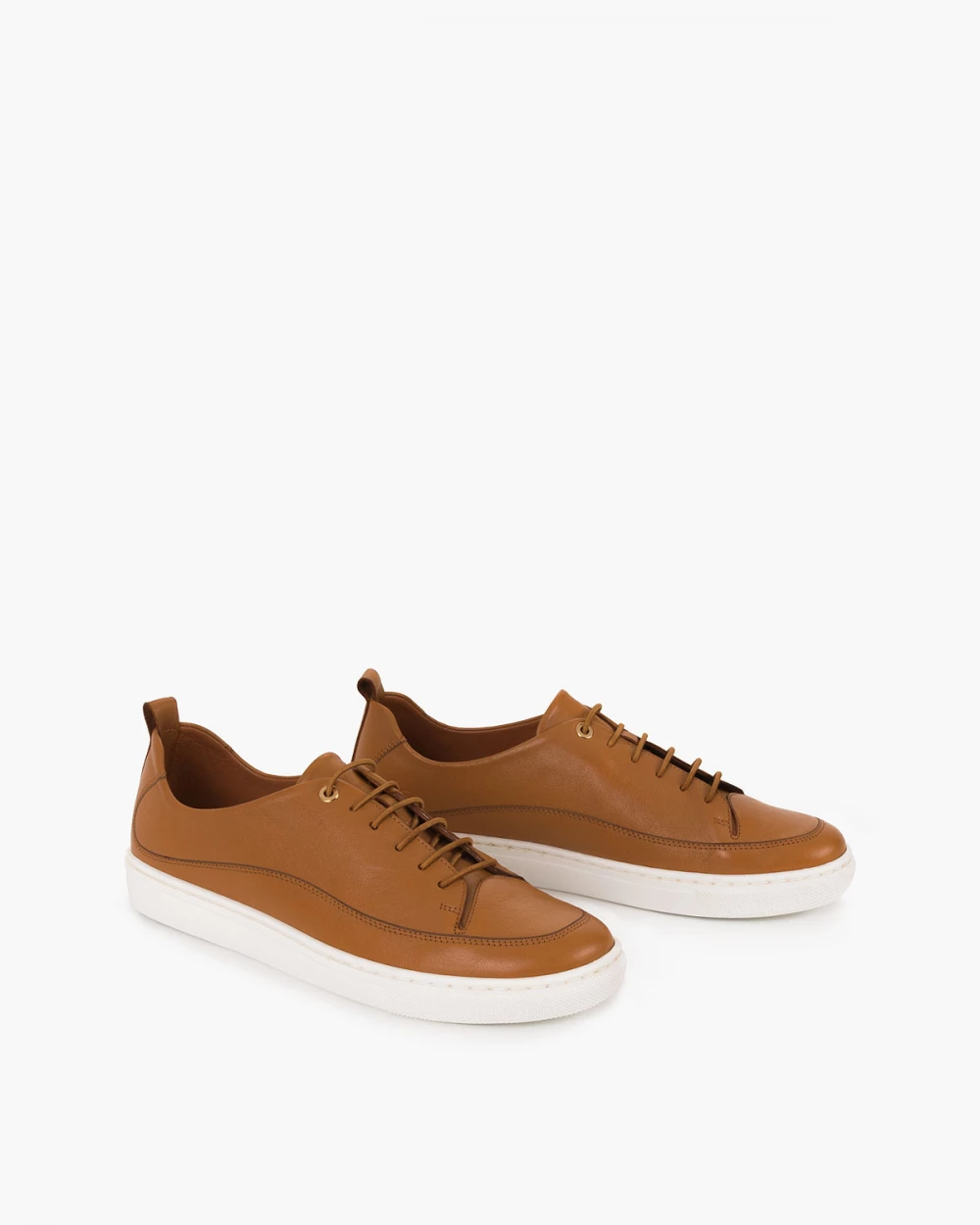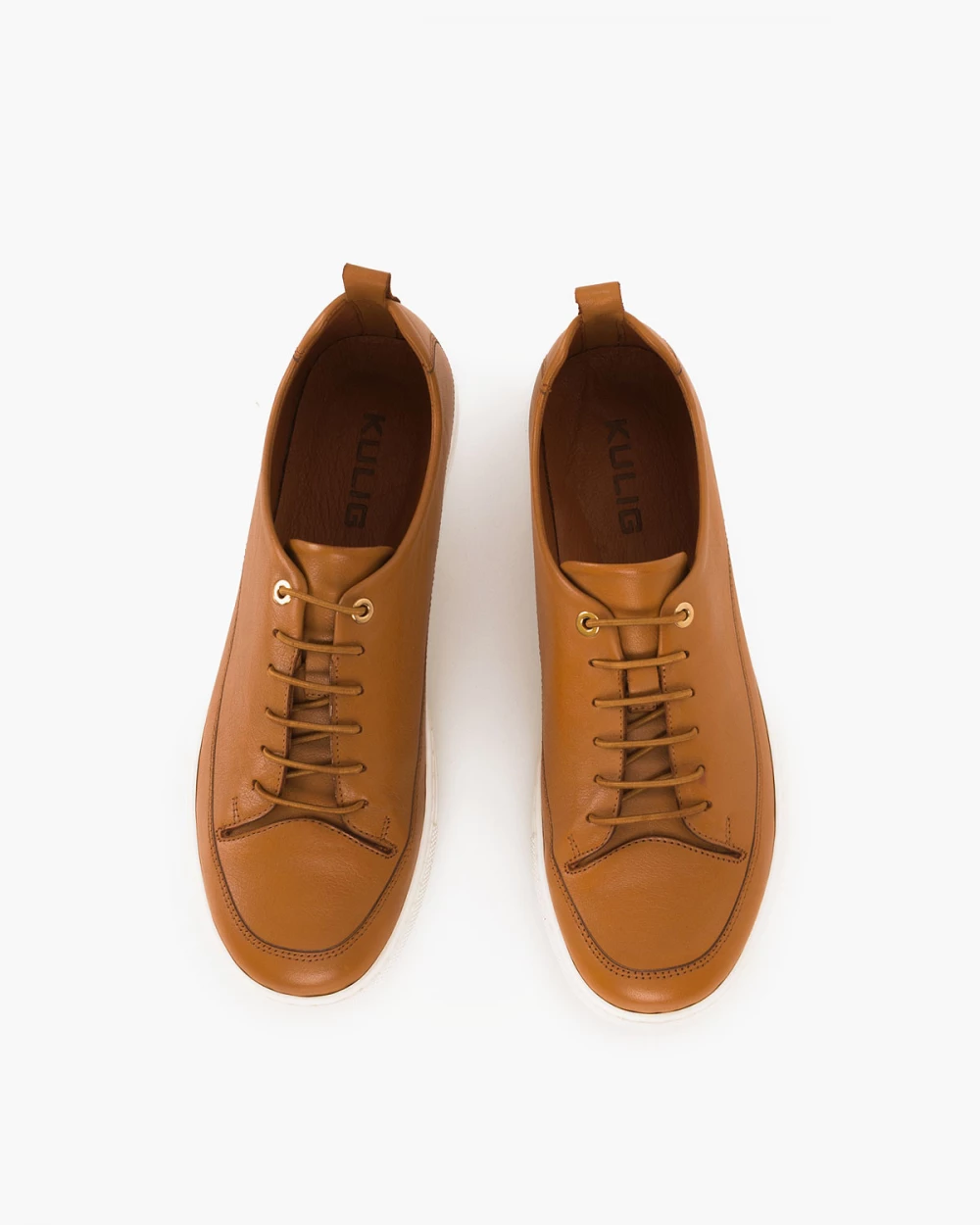 Brązowe trampki damskie ze skóry licowej na płaskim obcasie