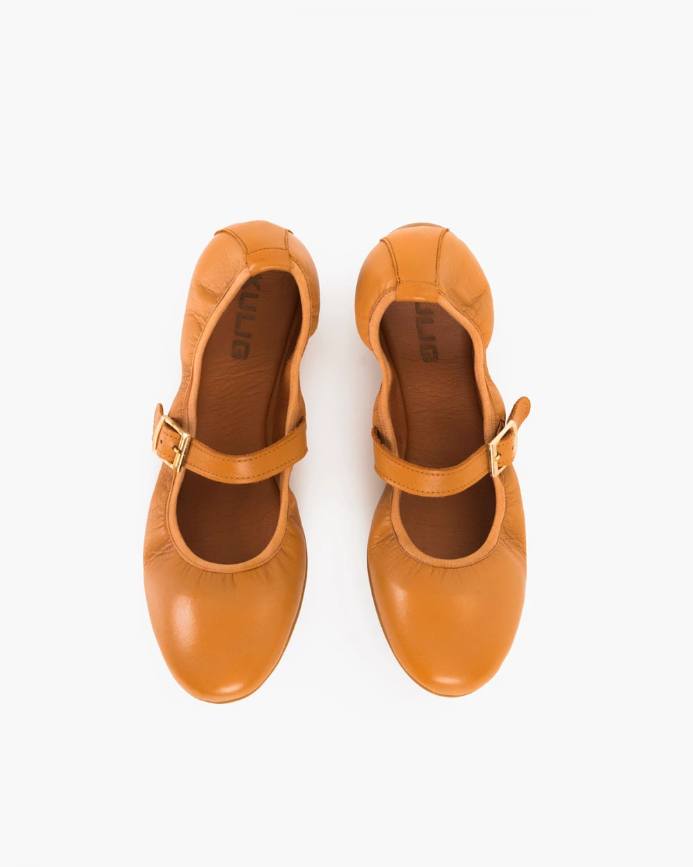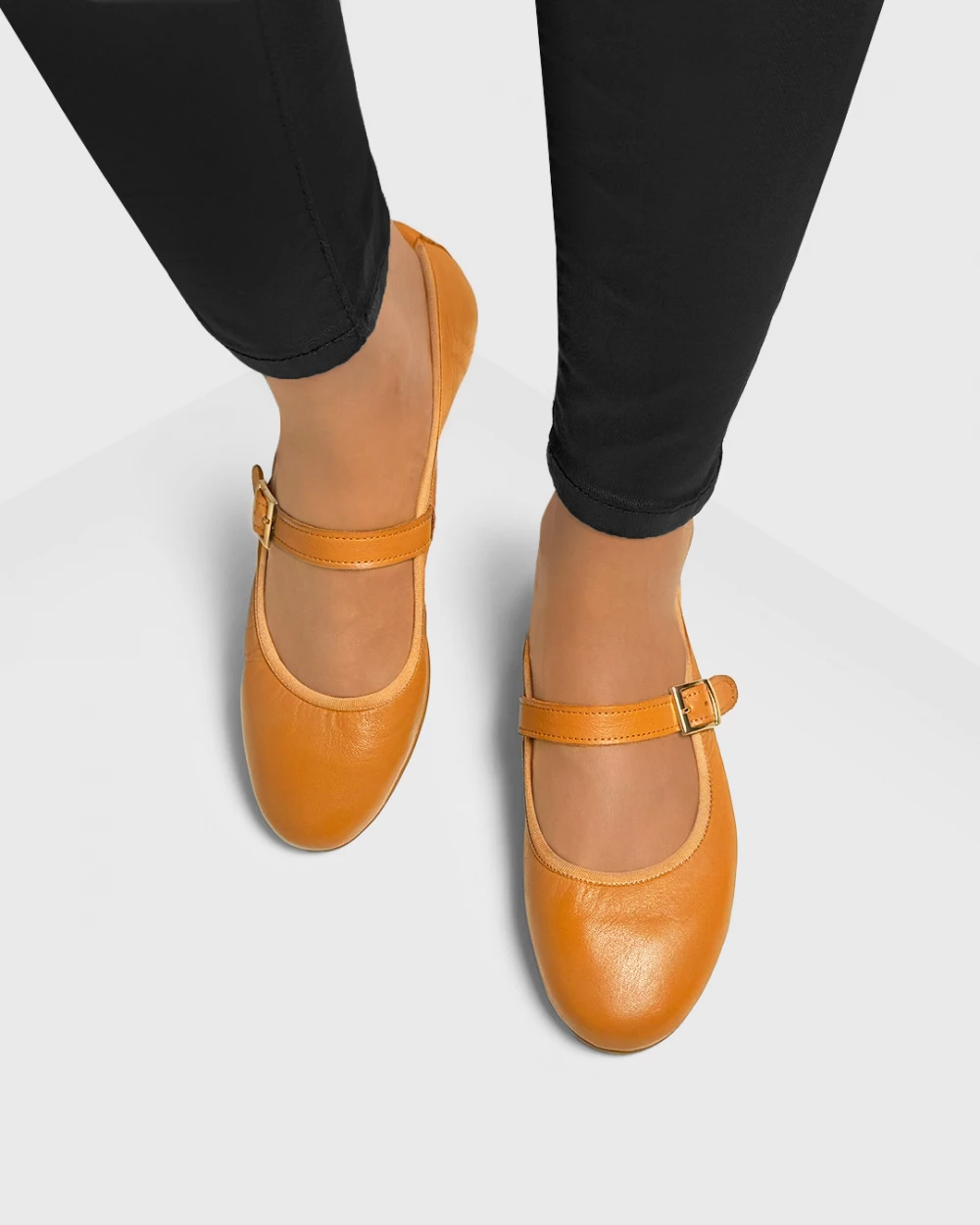 Rude baleriny damskie ze skóry licowej z klamrą