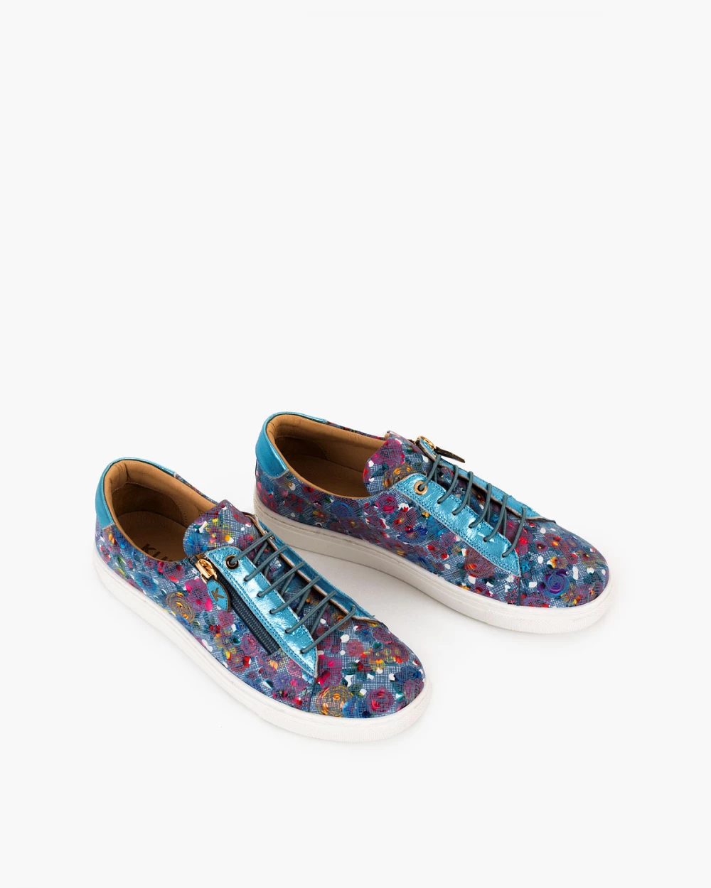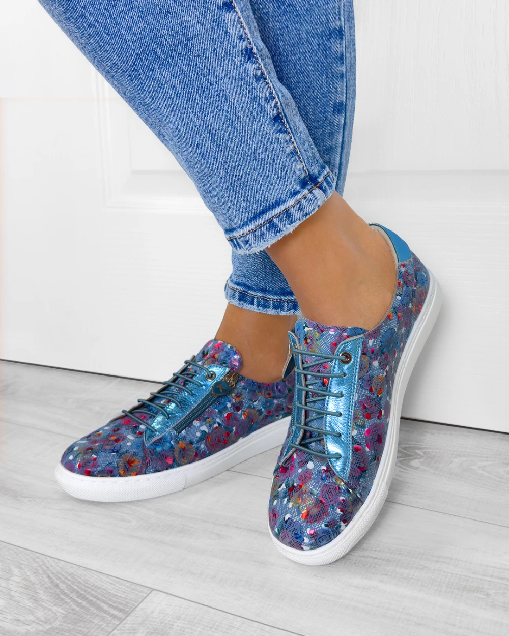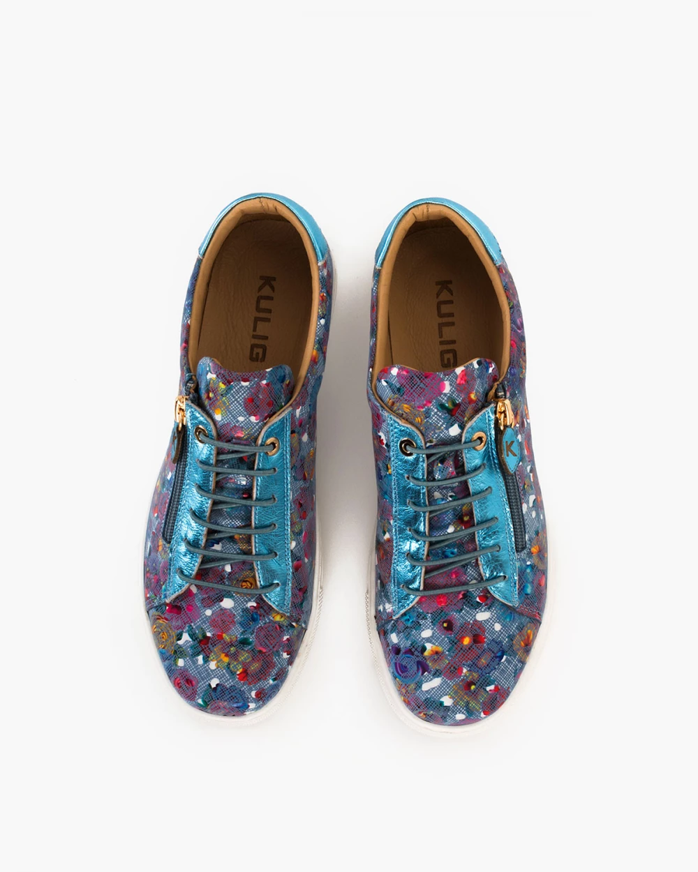 Wielokolorowe półbuty damskie skórzane z zamkiem