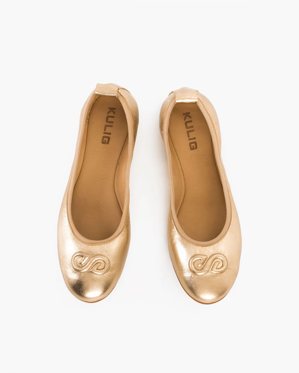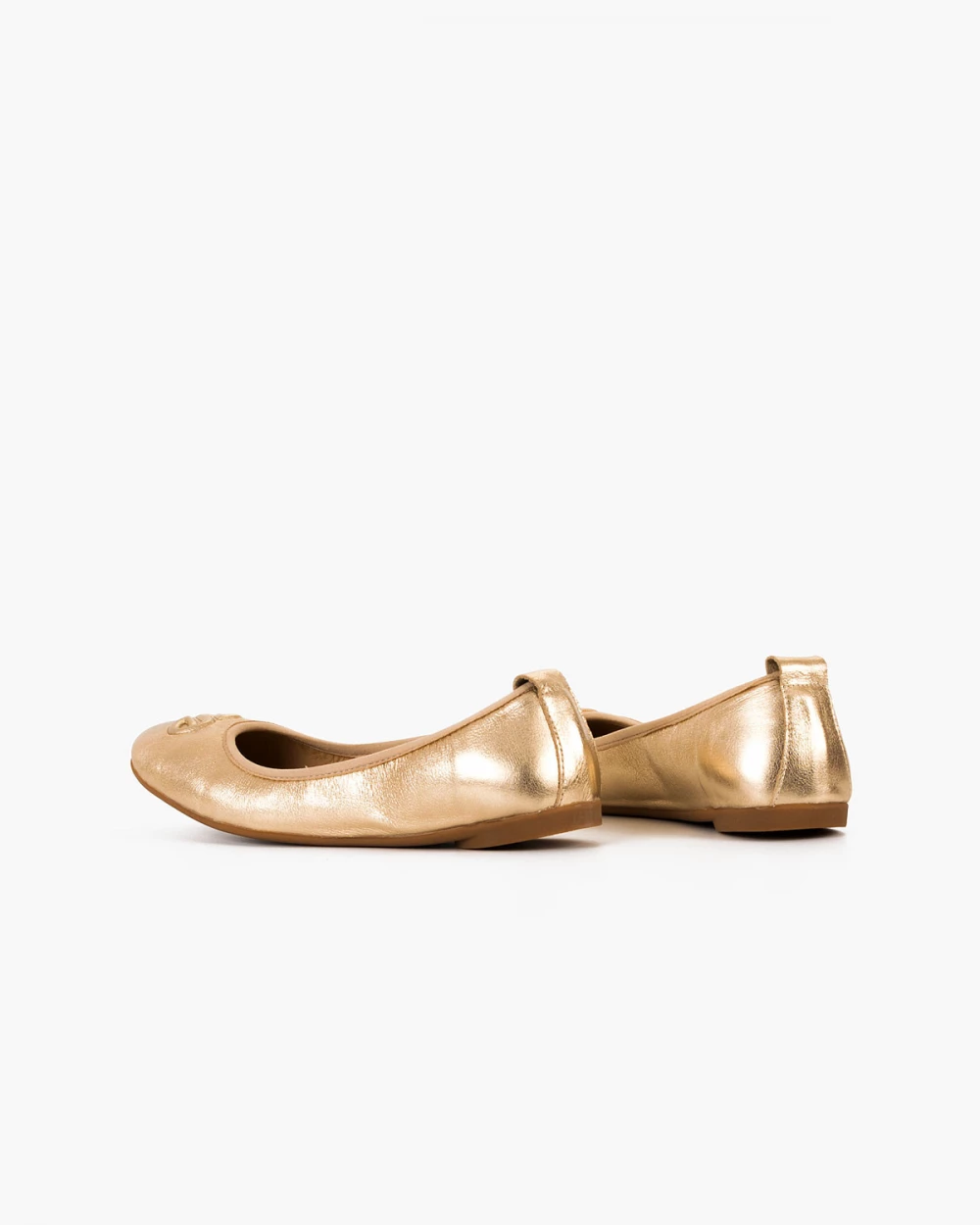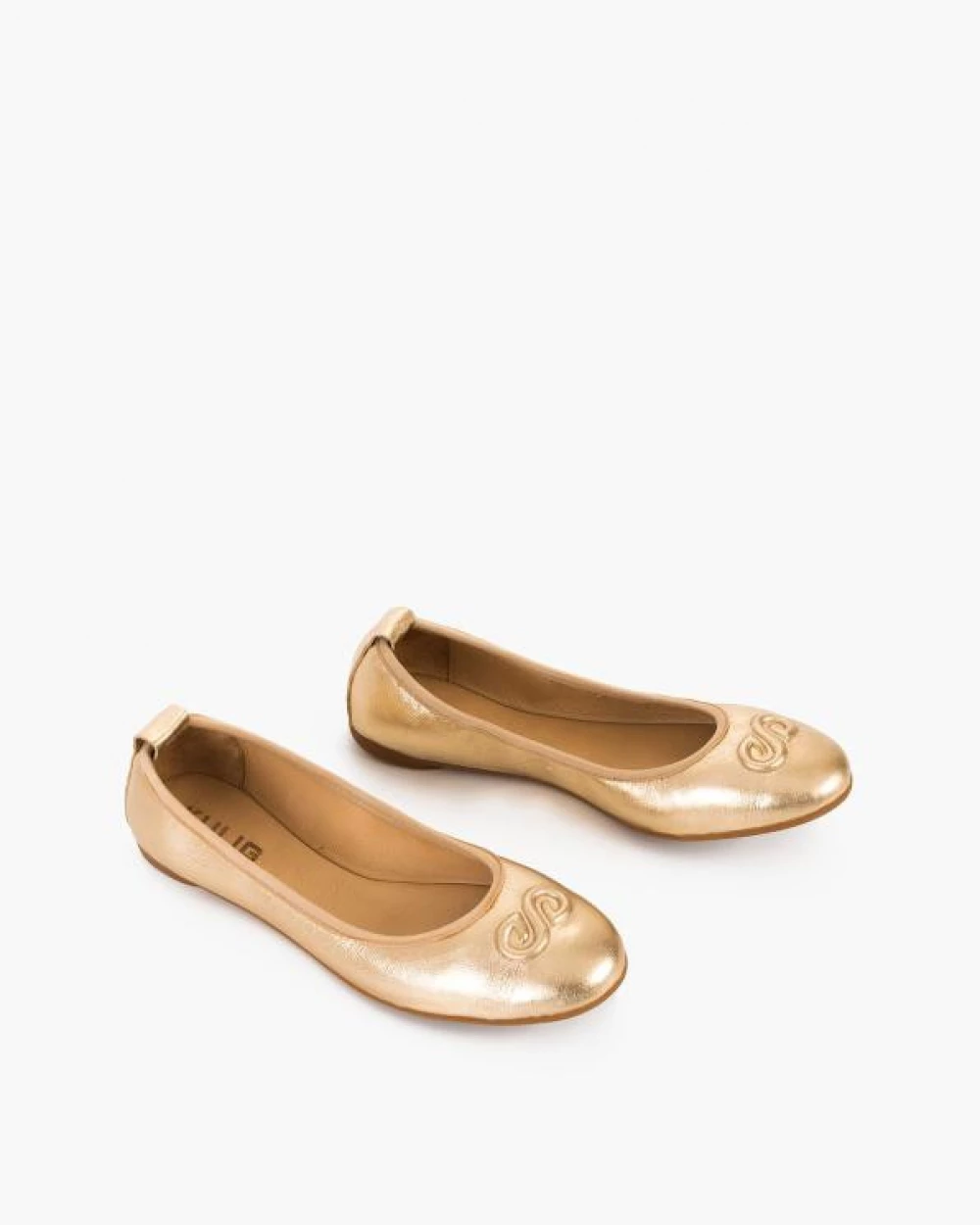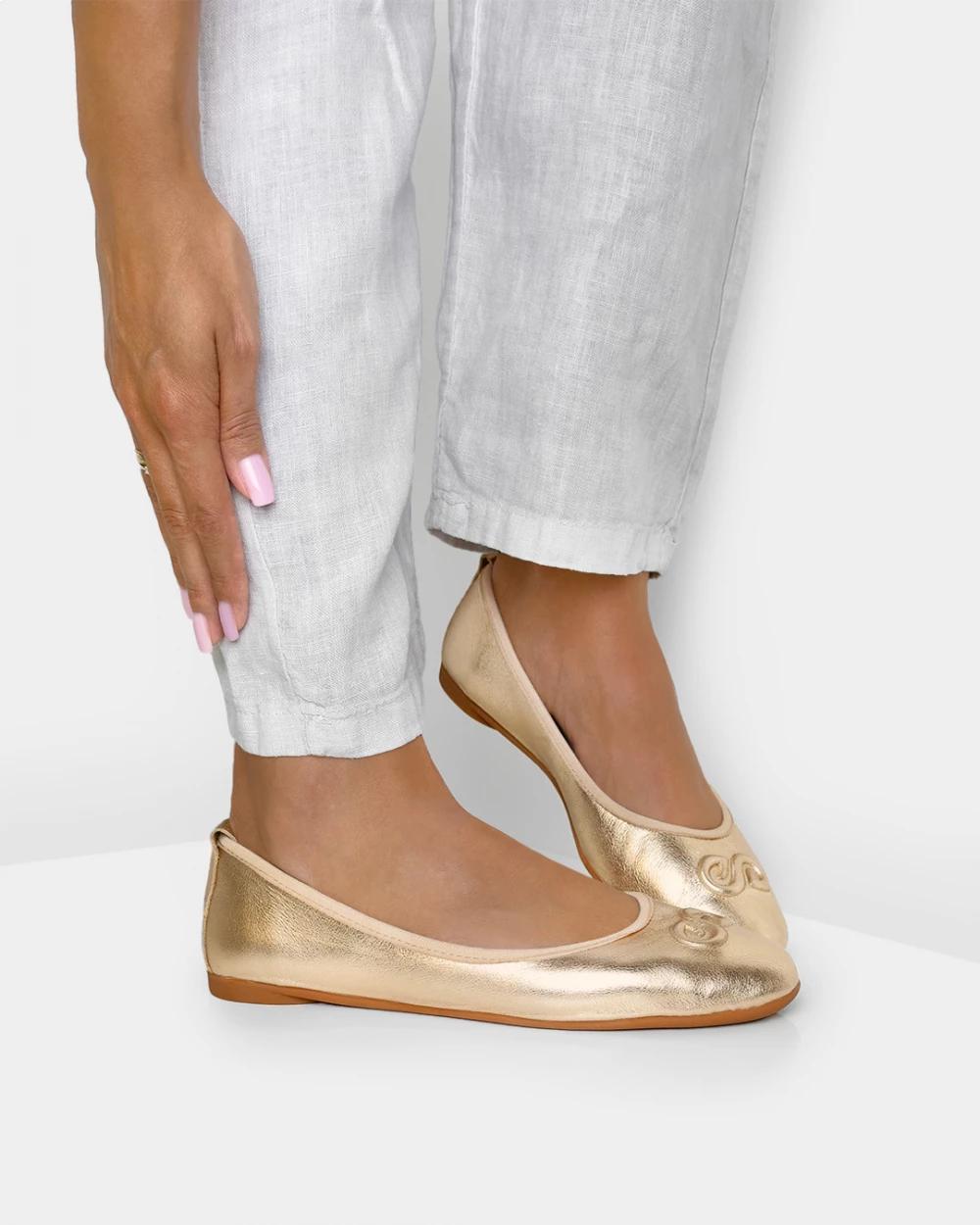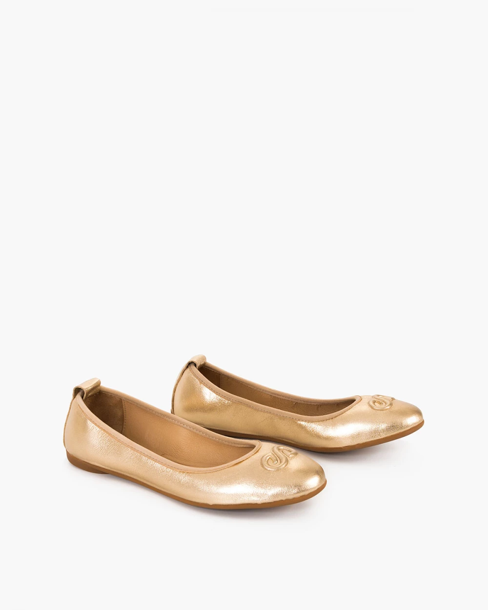 Złote baleriny damskie skórzane