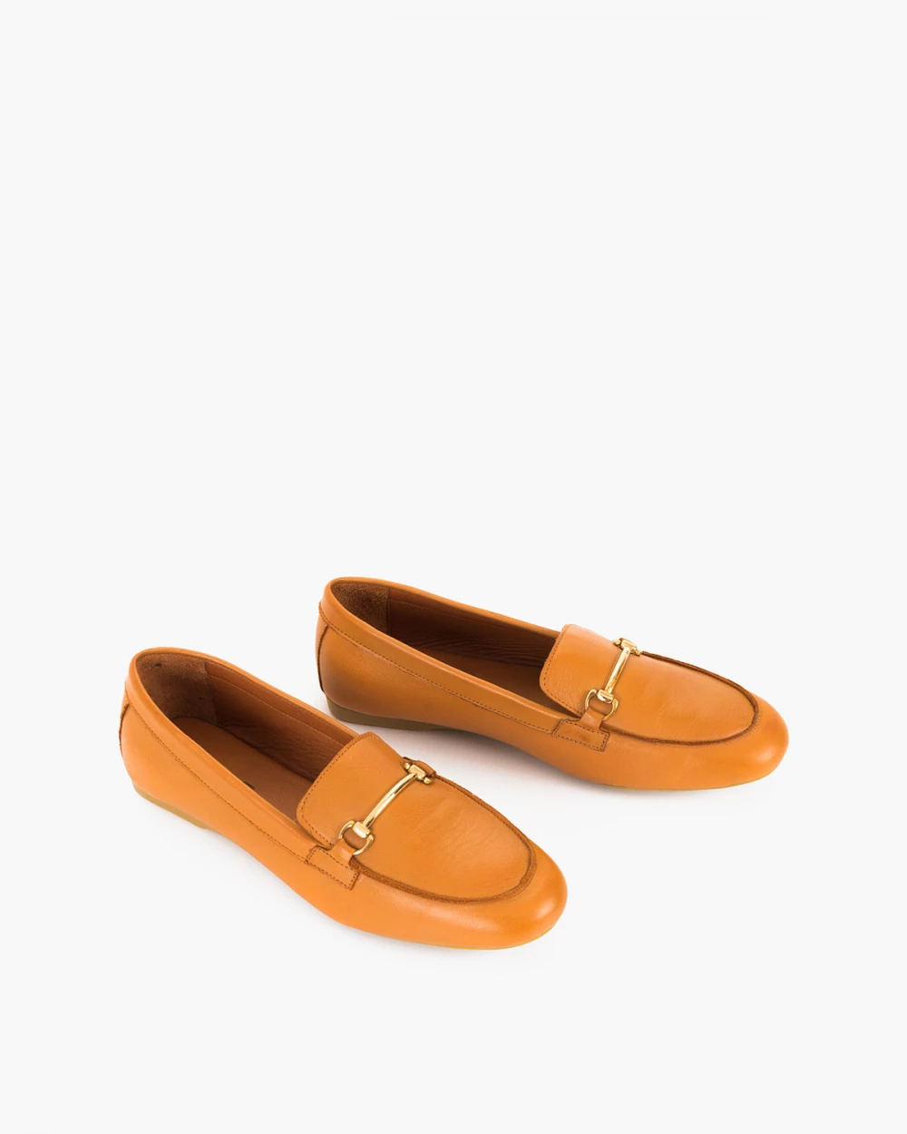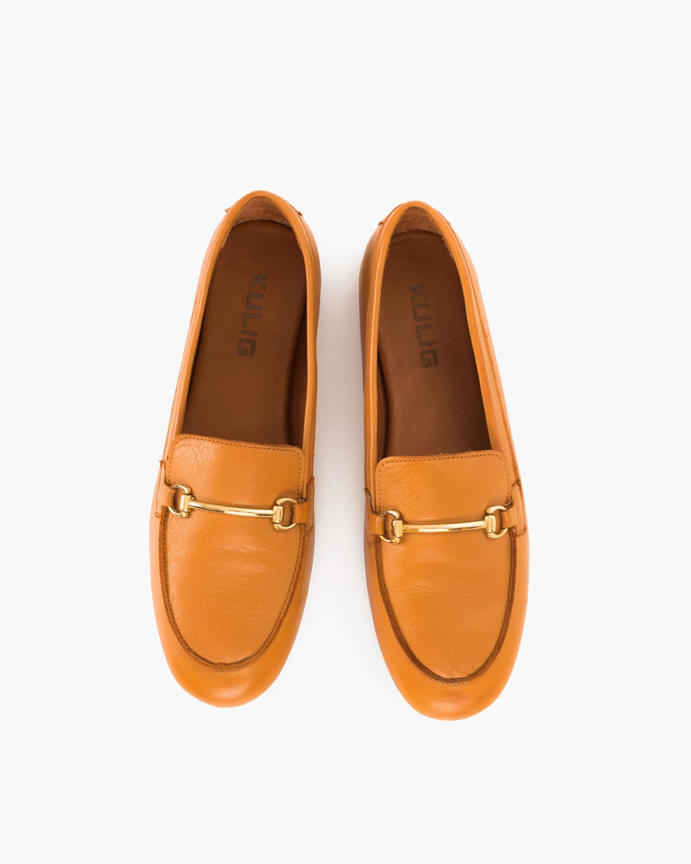 Rude mokasyny damskie ze skóry naturalnej z klamrą