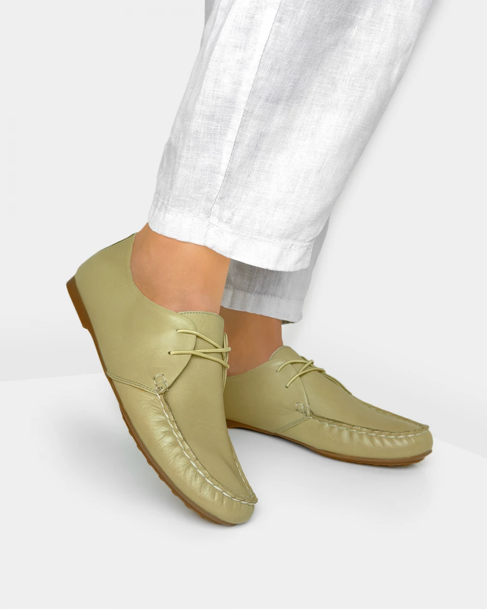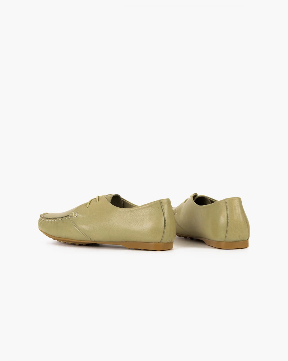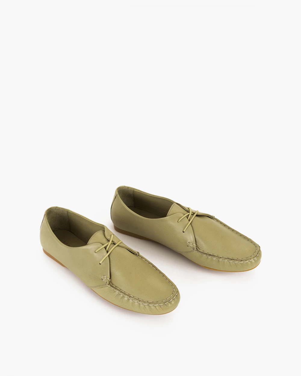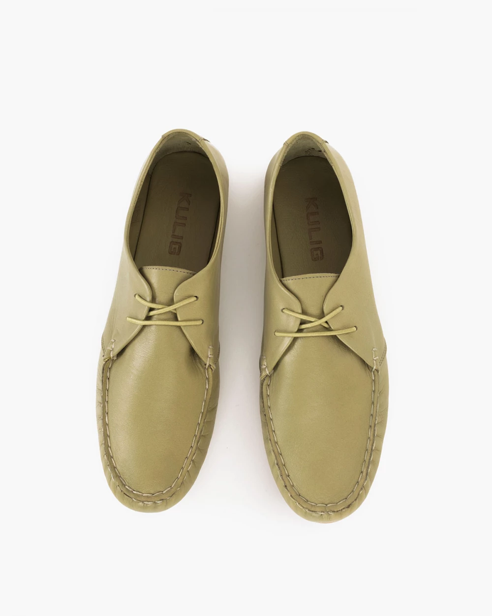 Oliwkowe mokasyny damskie sznurowane ze skóry licowej