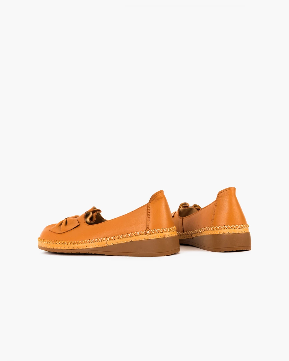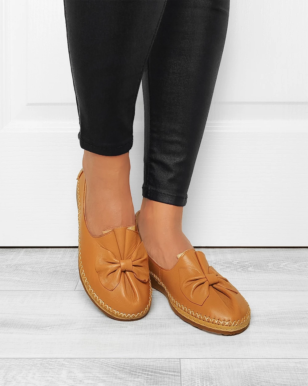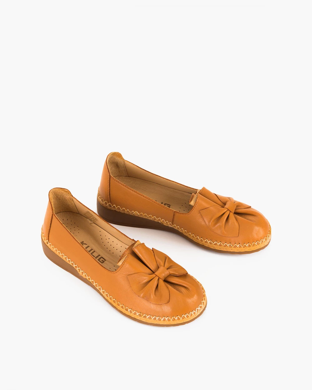 Rude półbuty damskie ze skóry licowej z kokardą na koturnie