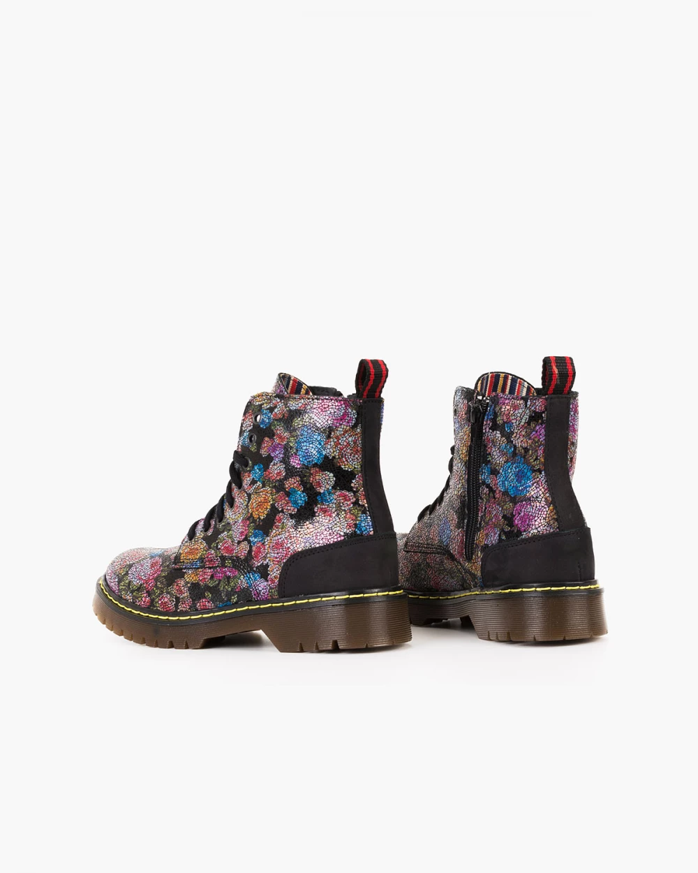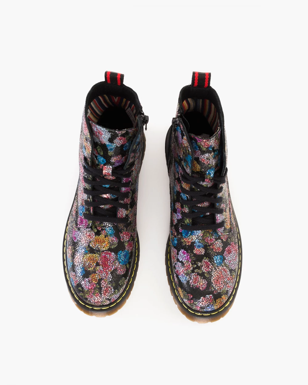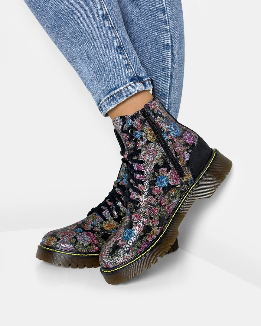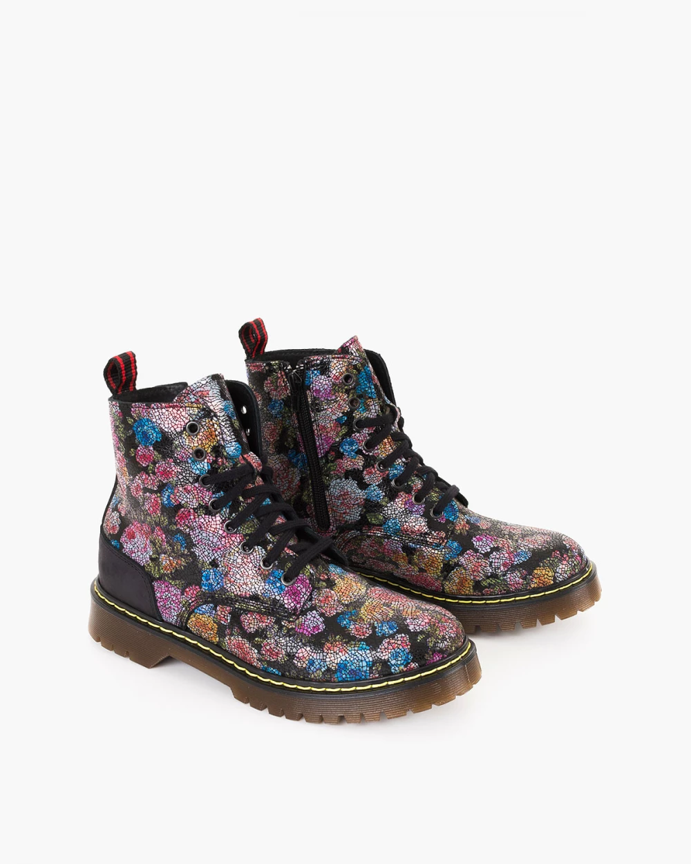 Czarne trzewiki damskie skórzane martensy w kwiatki