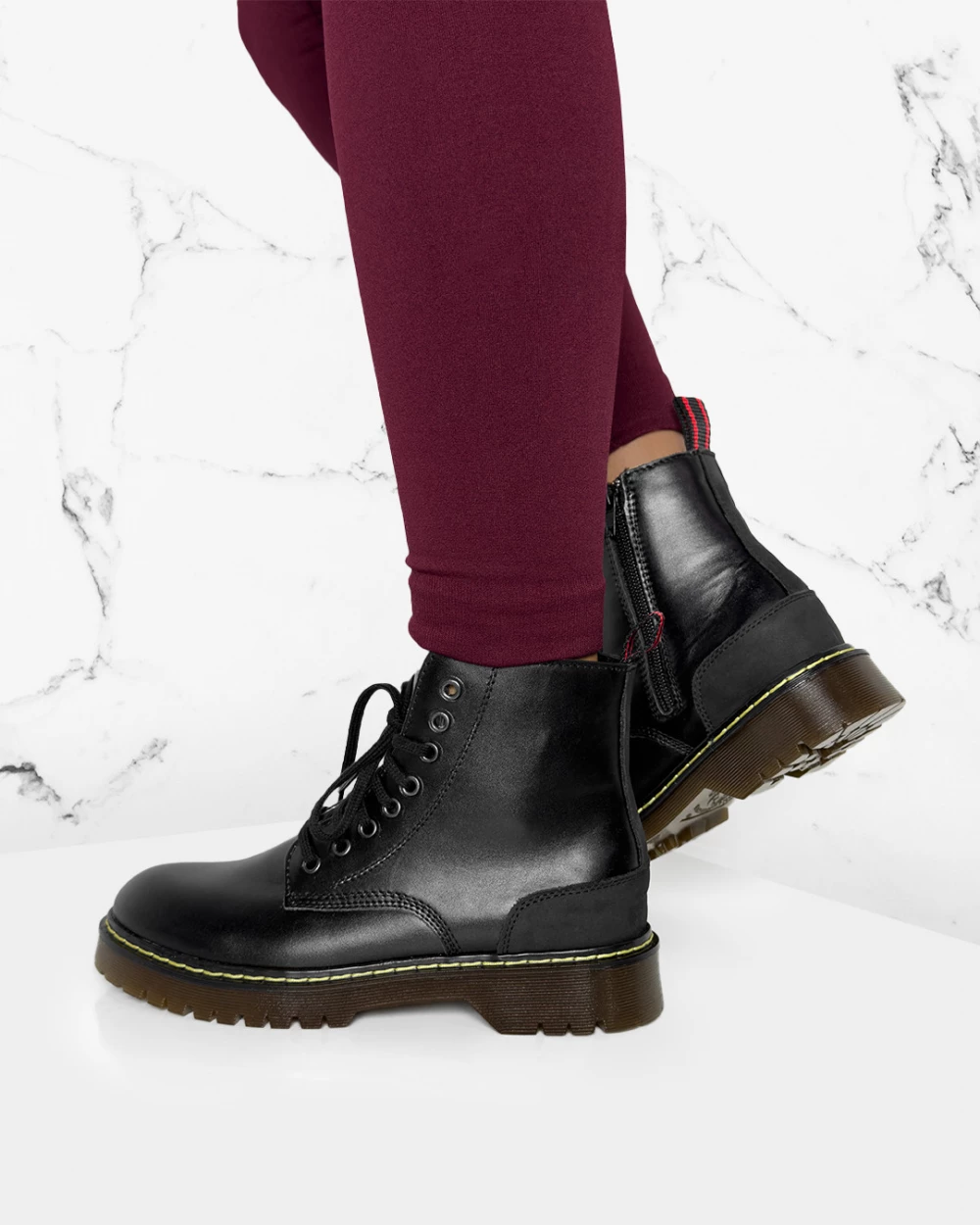 Czarne trzewiki damskie martensy z naturalnej skóry licowej