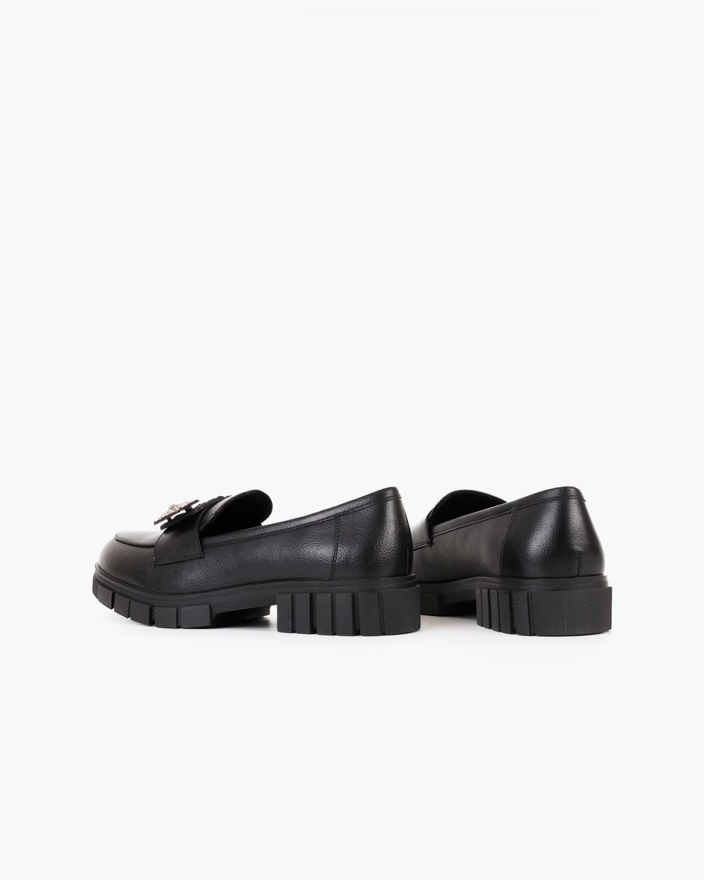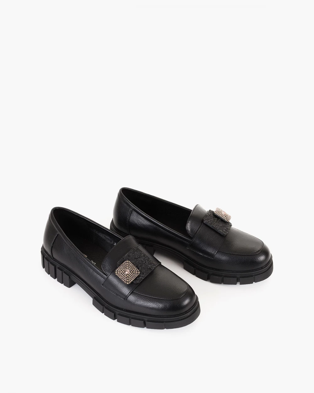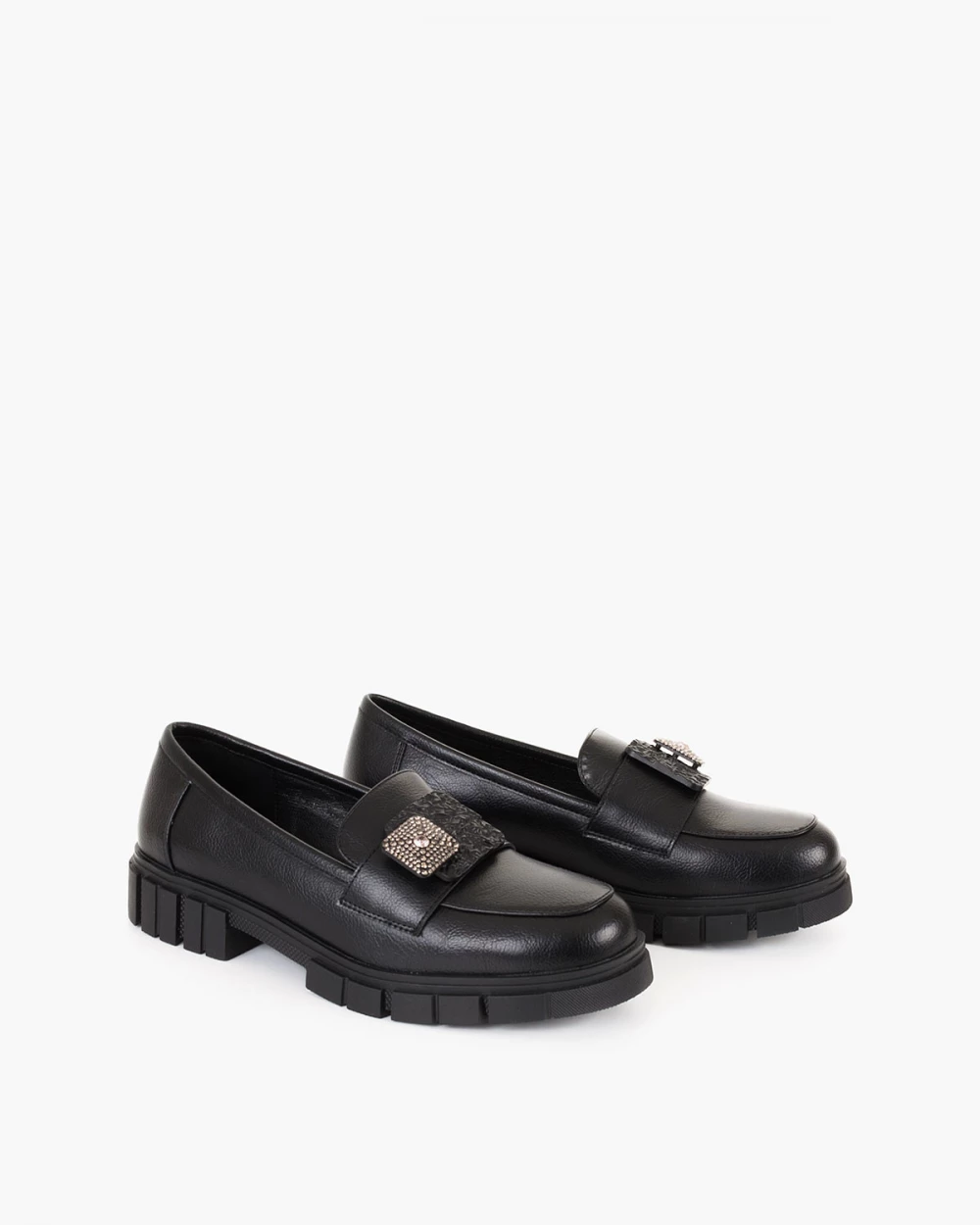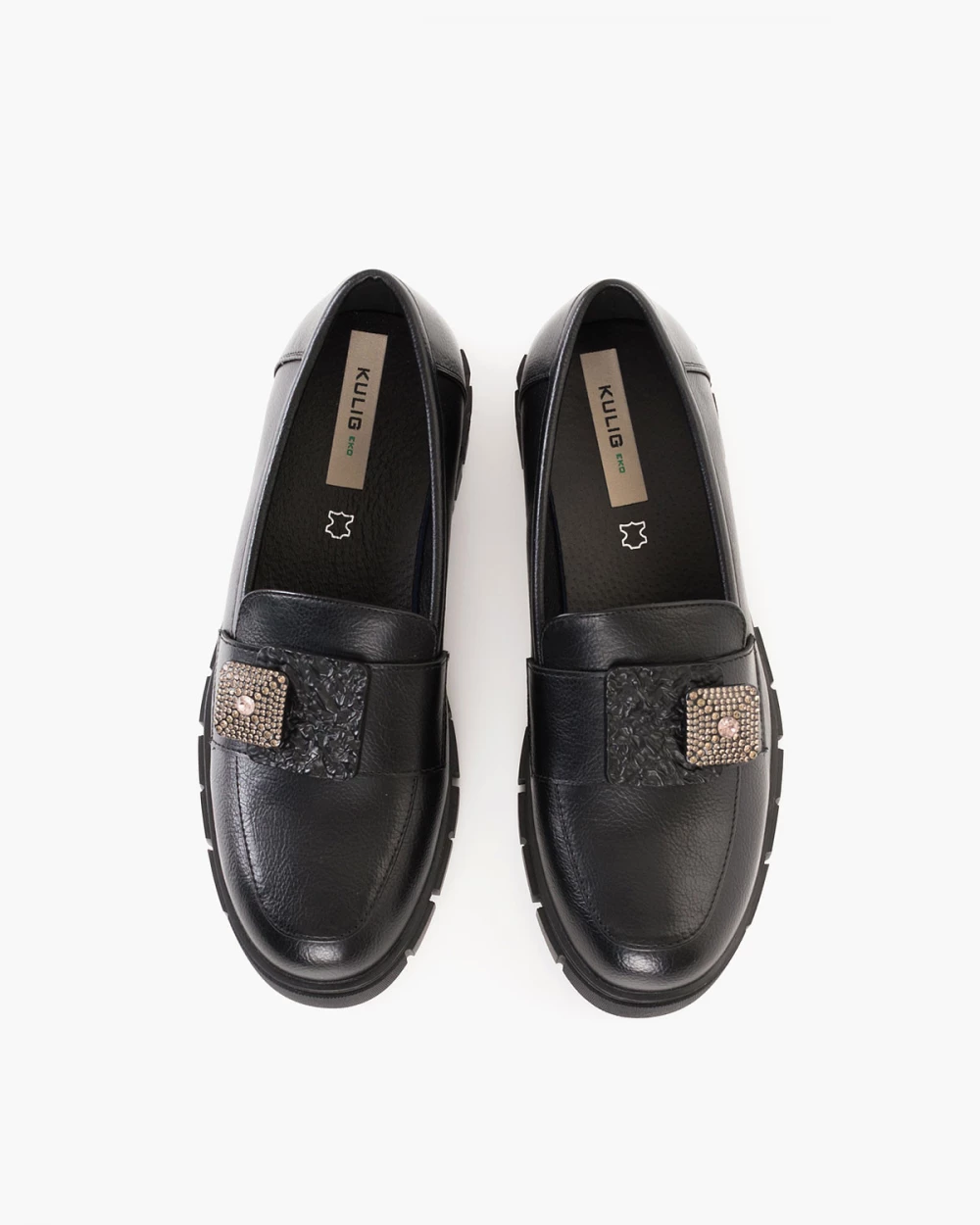 Czarne mokasyny damskie ze skóry ekologicznej z cyrkoniami