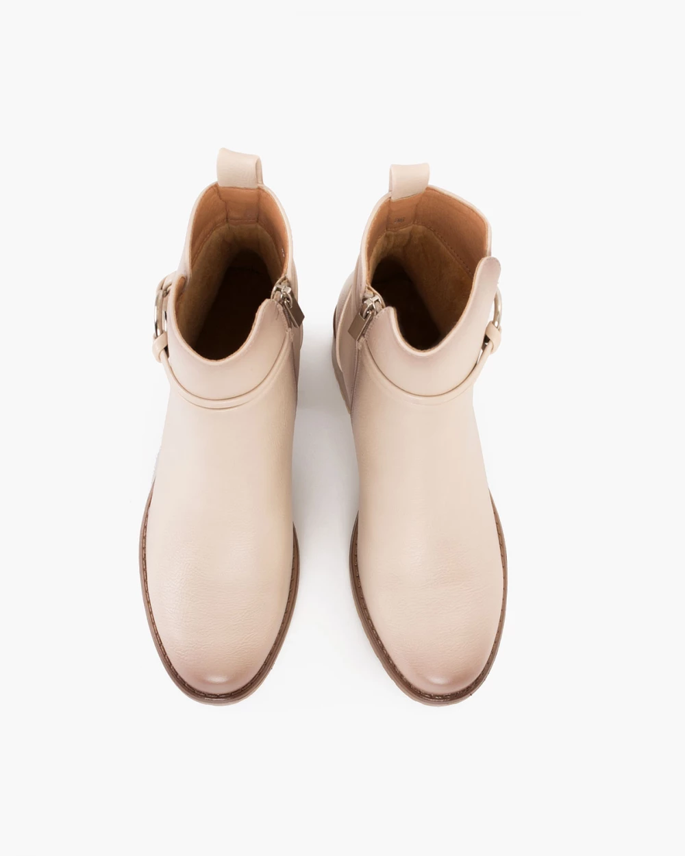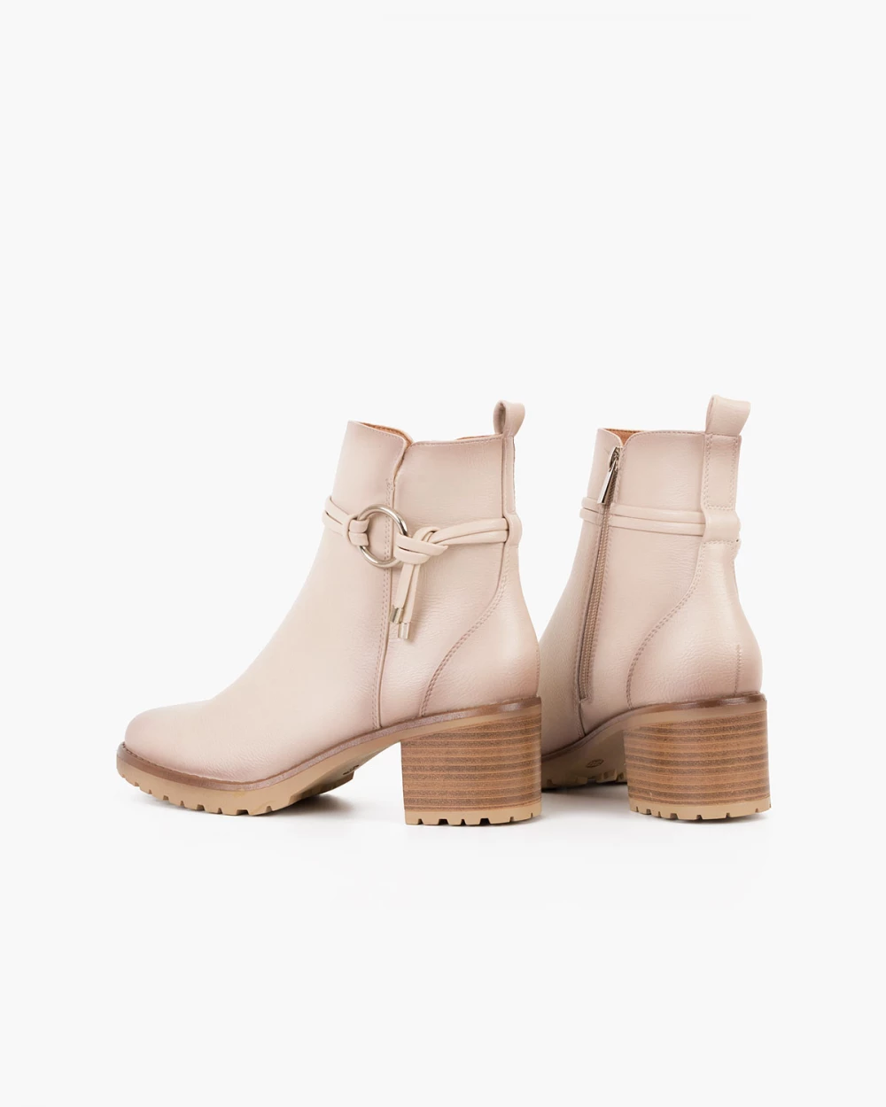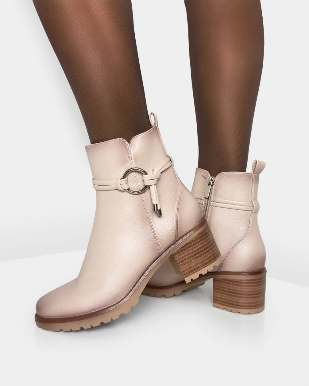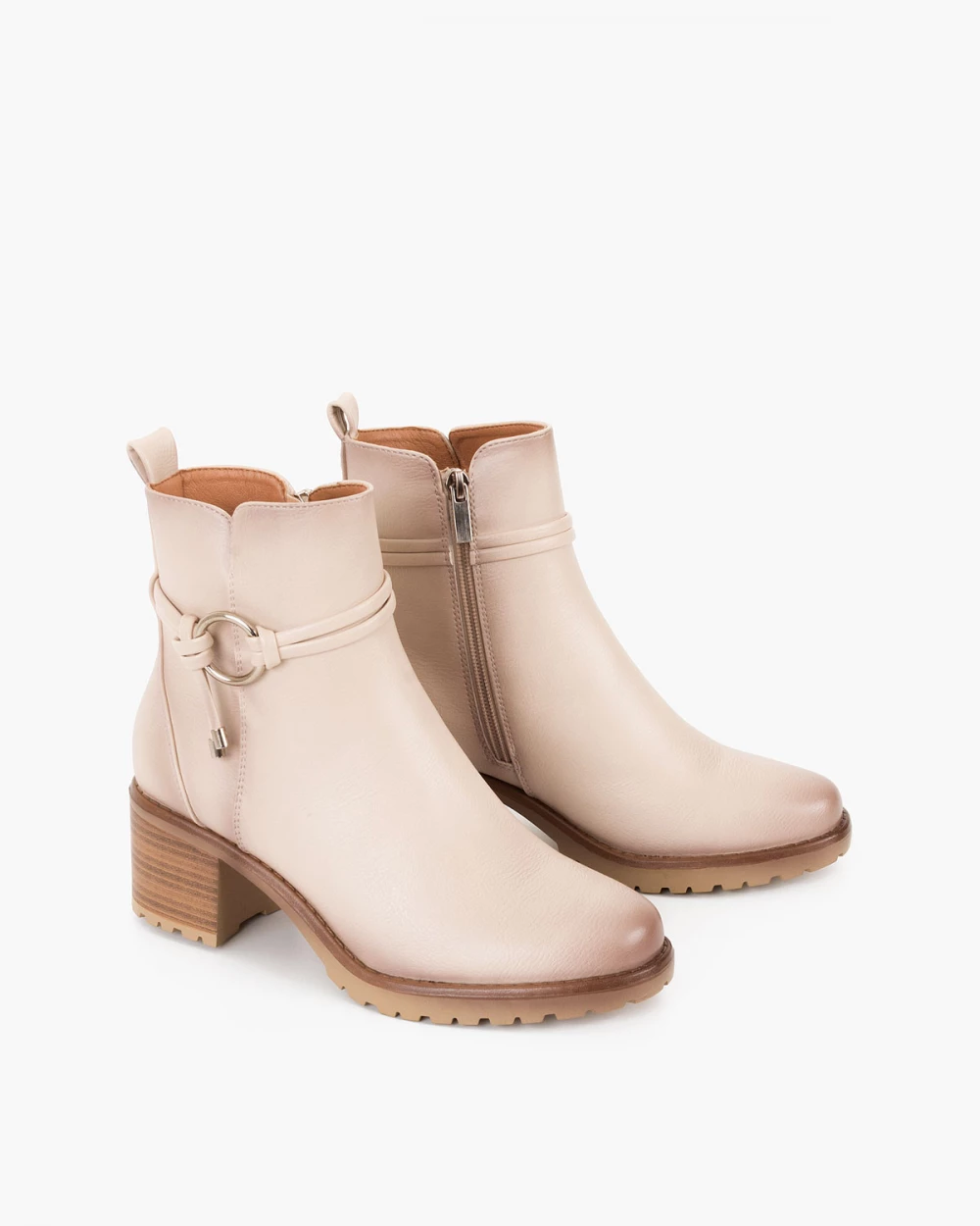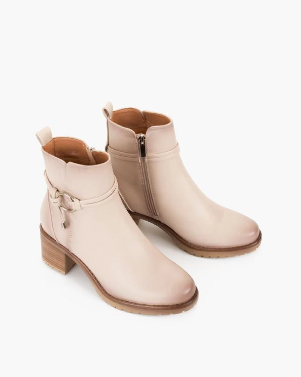 Beżowe botki damskie ze skóry ekologicznej na słupku