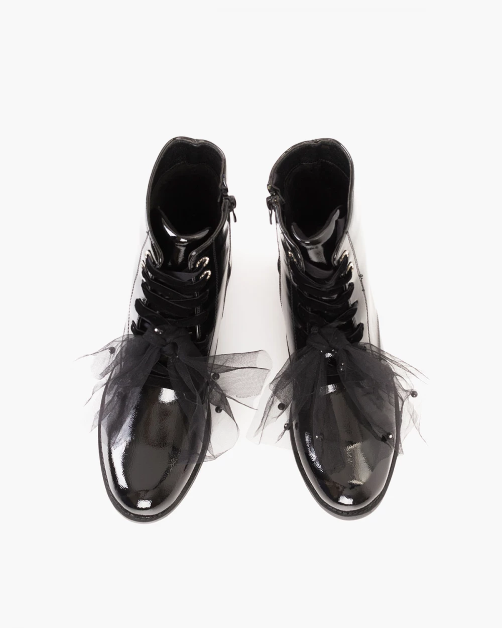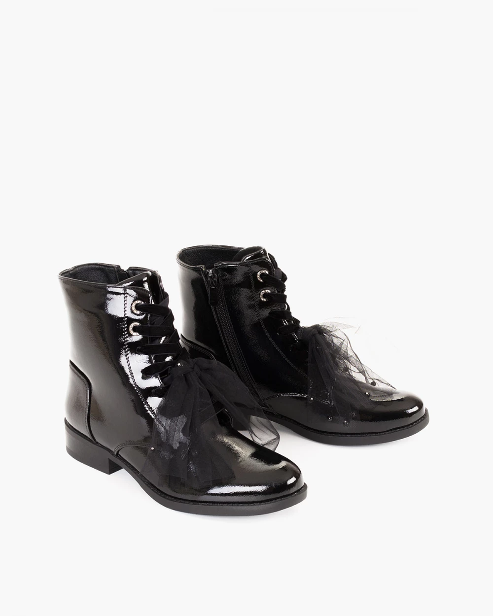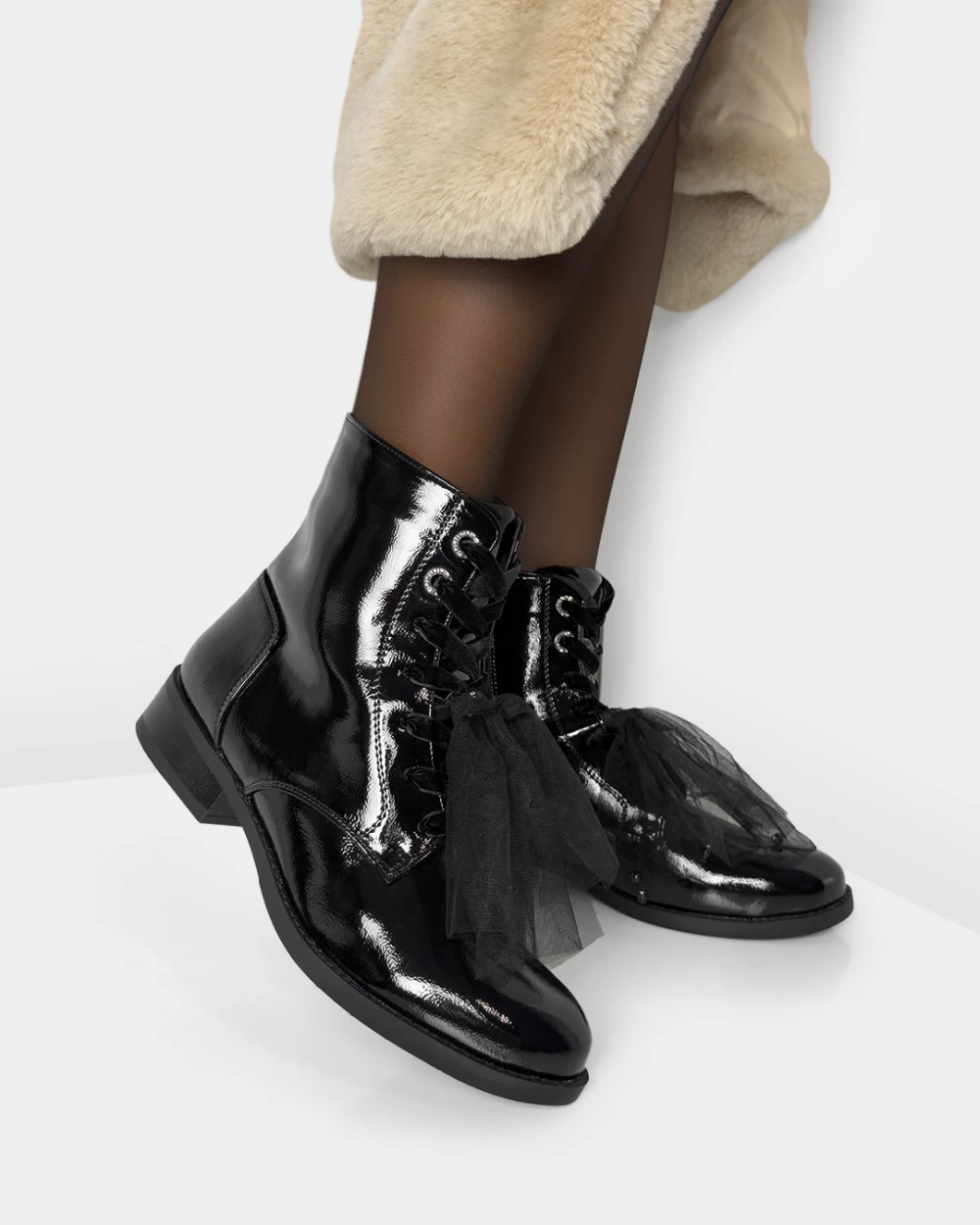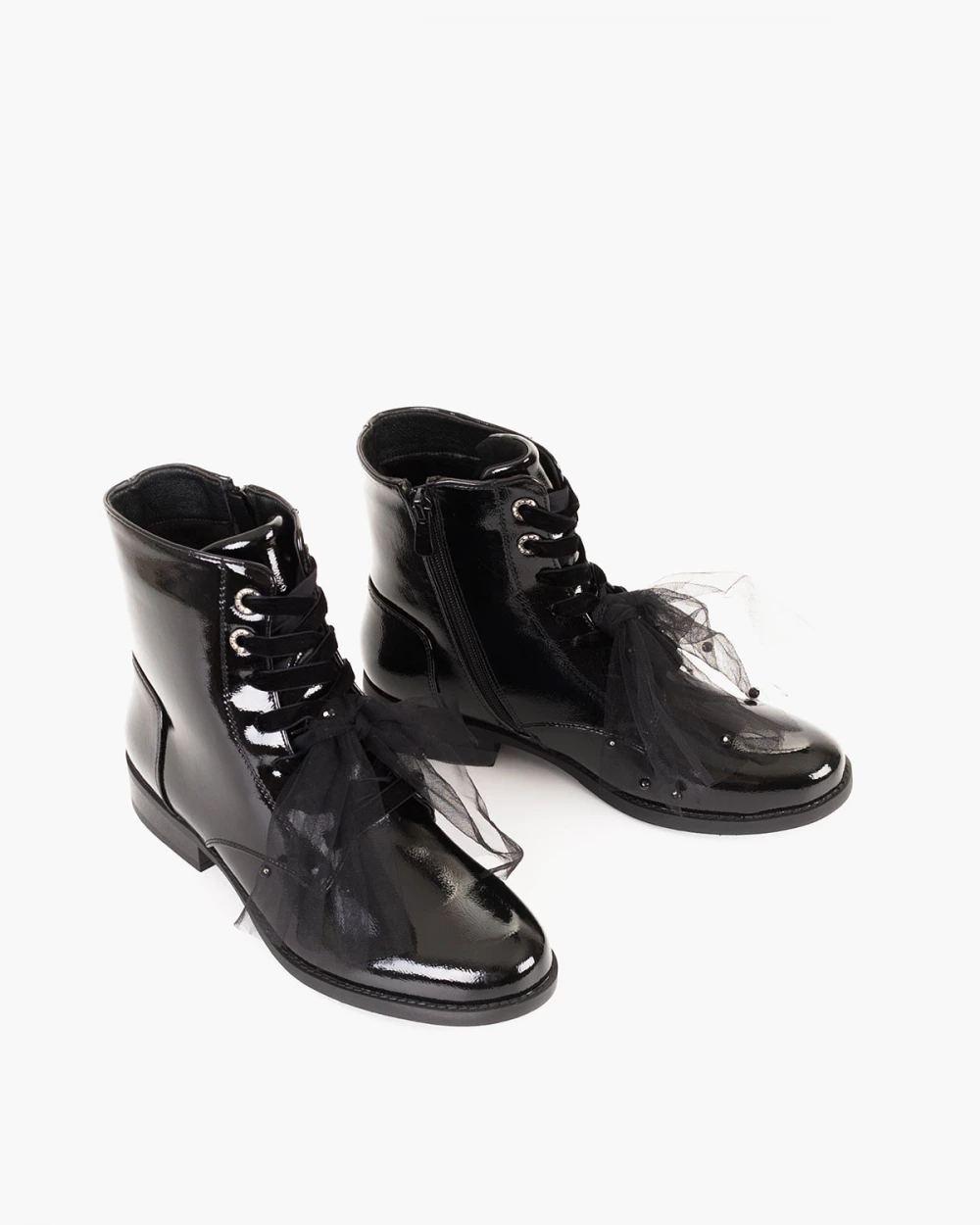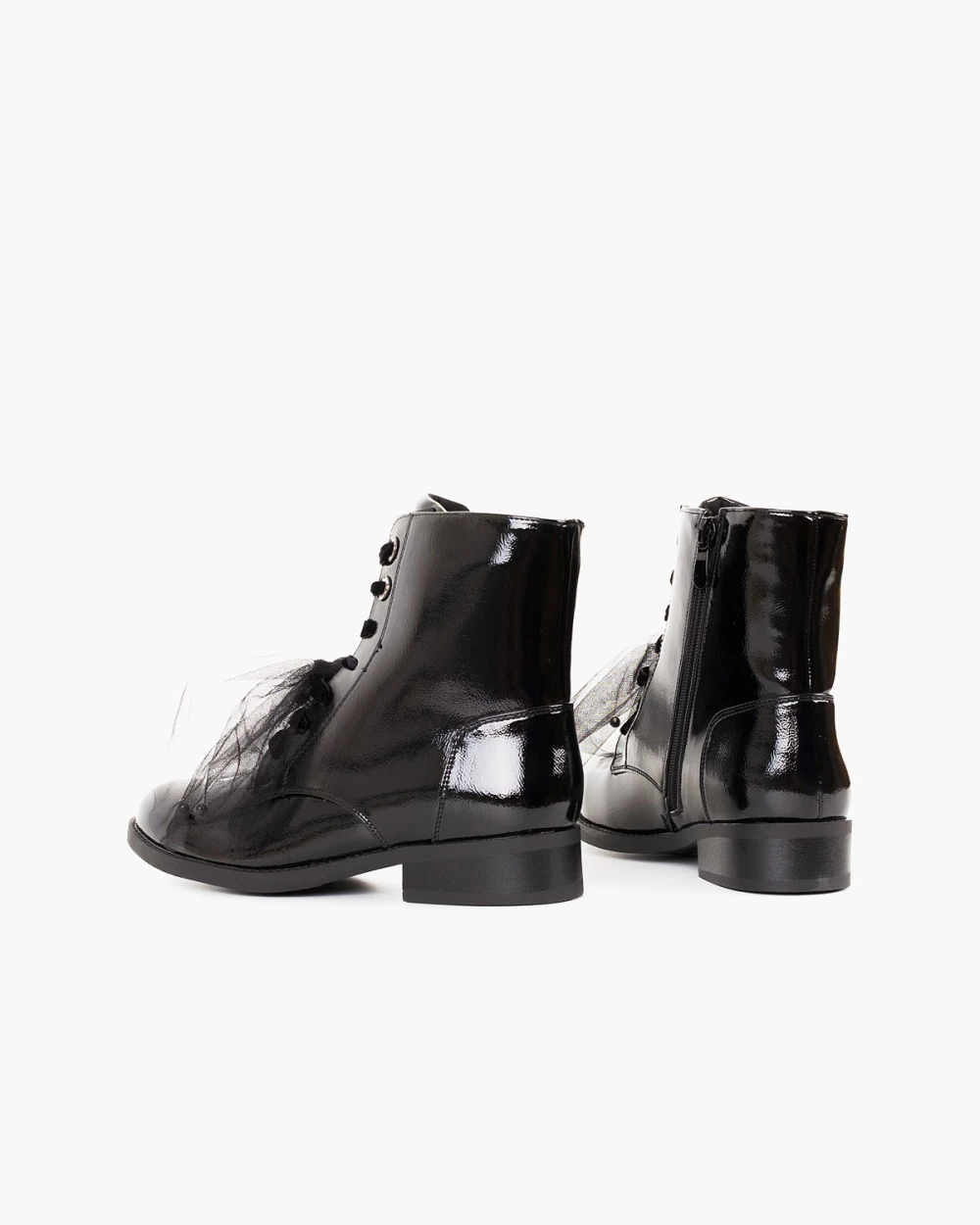 Czarne trzewiki damskie ze skóry ekologicznej na obcasie