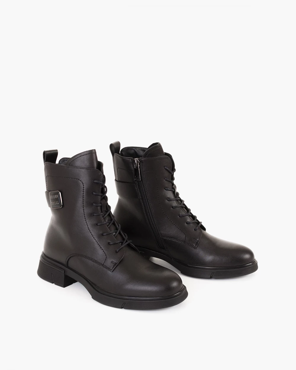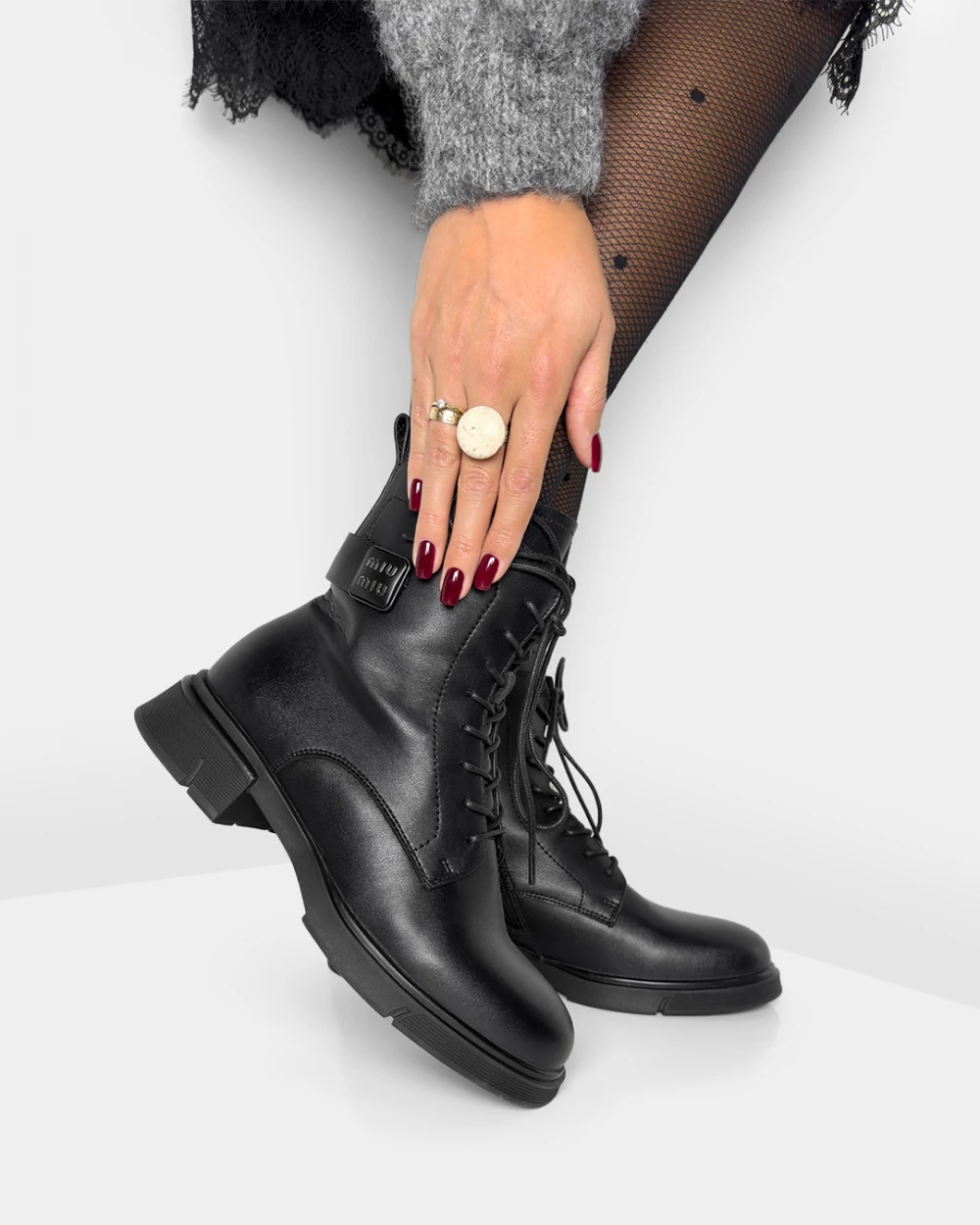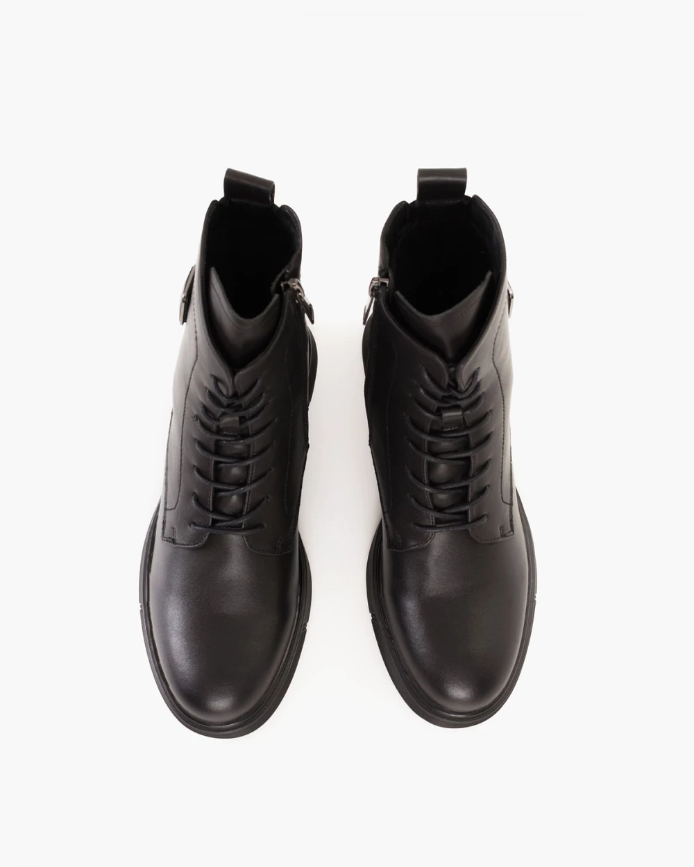 Czarne trzewiki damskie z naturalnej skóry licowej