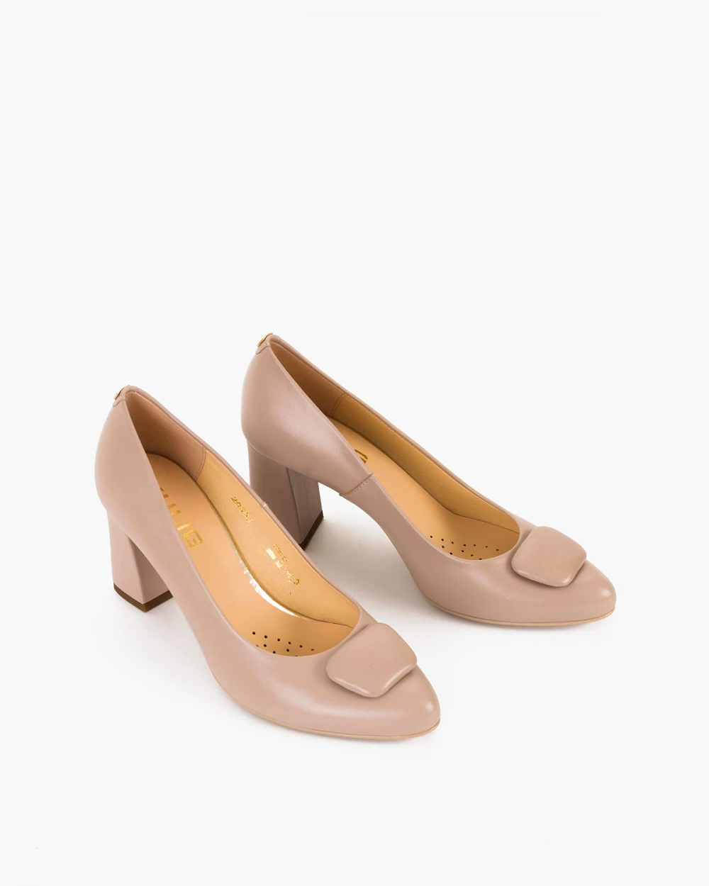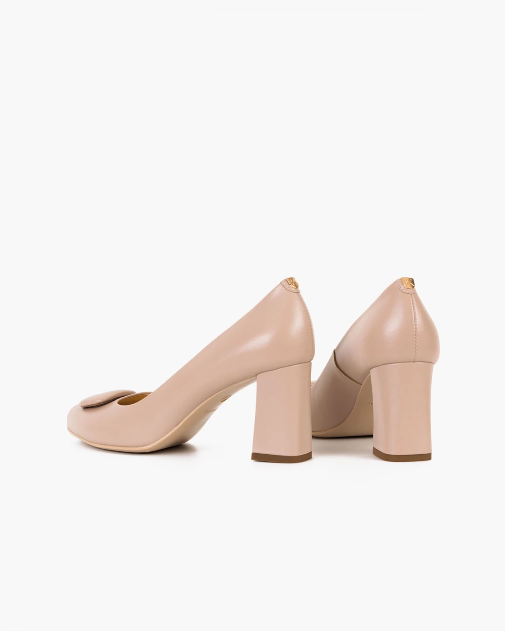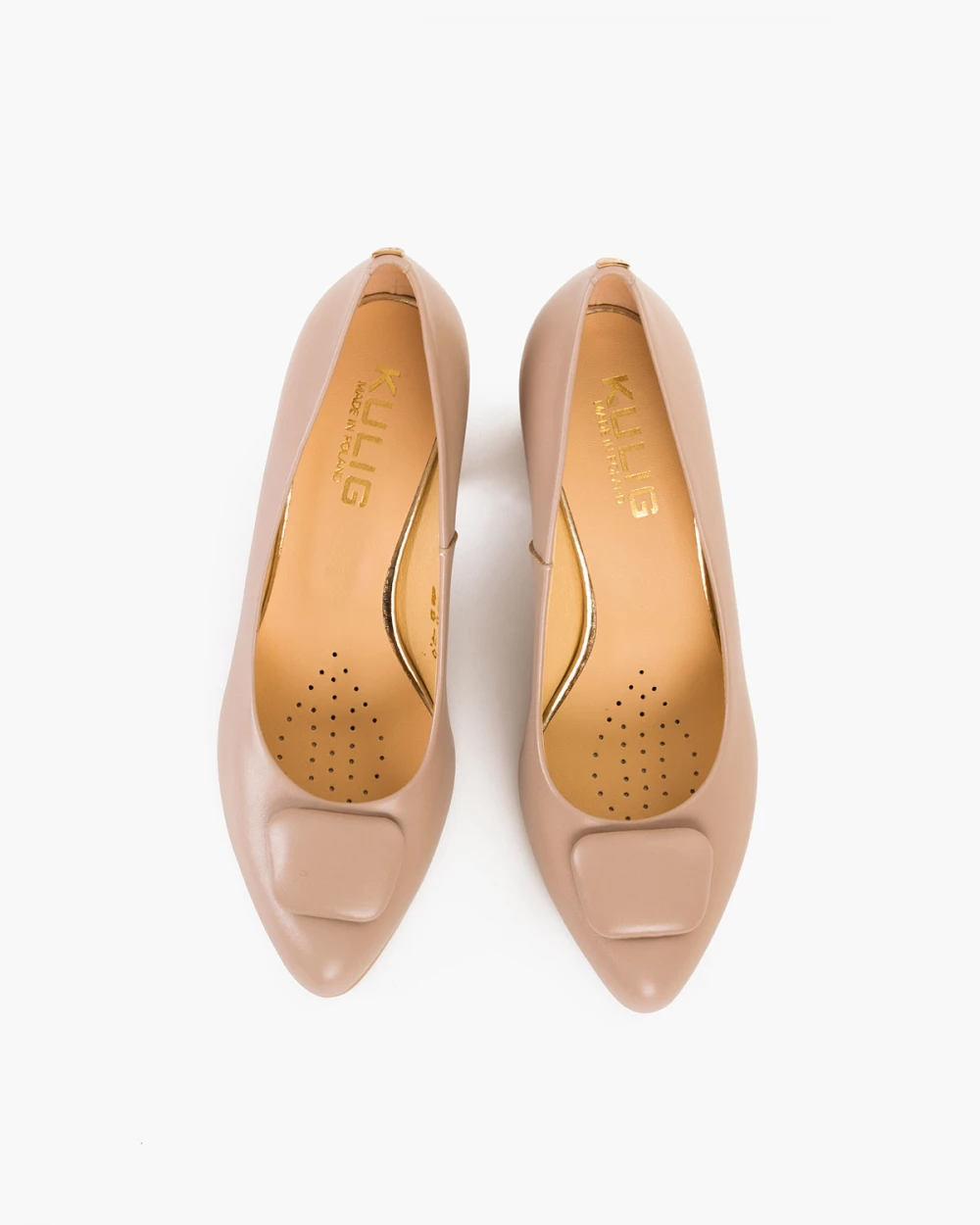 Beżowe czółenka damskie skórzane na słupku
