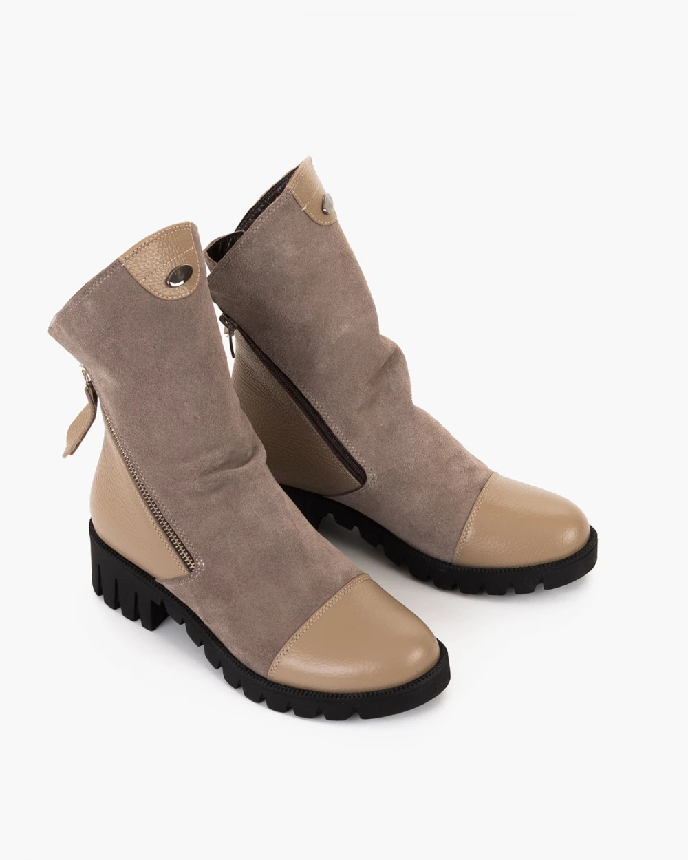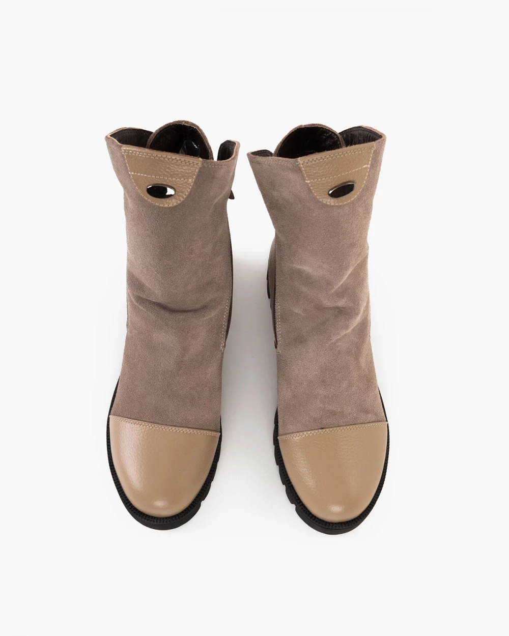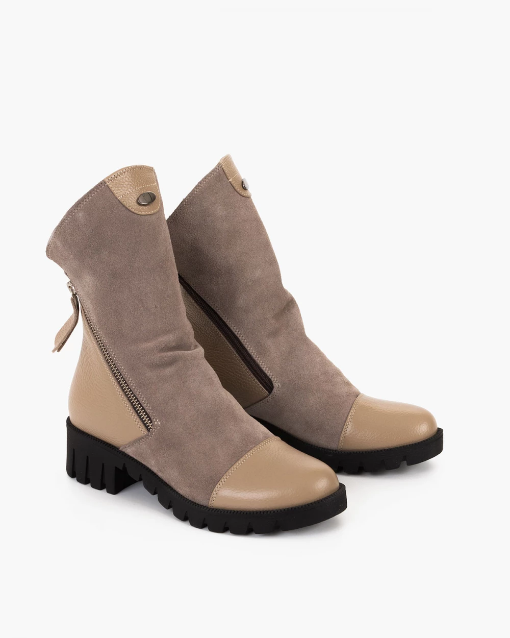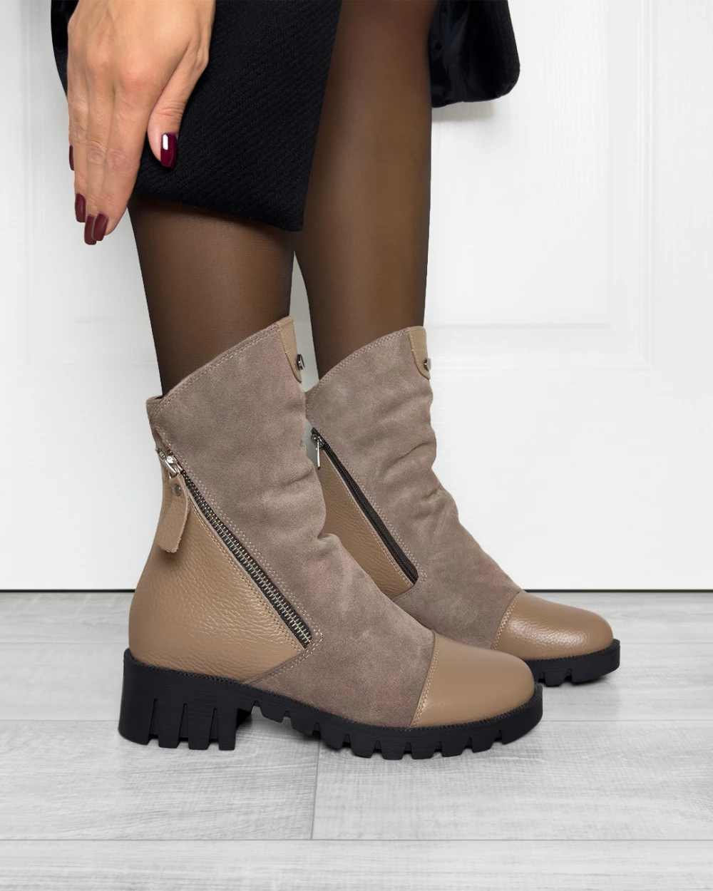 Ciemnobeżowe botki damskie ze skóry naturalnej