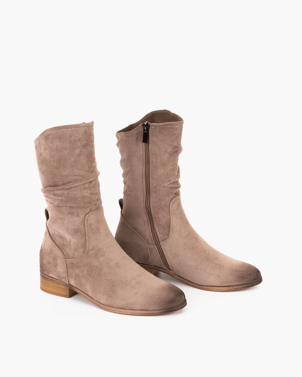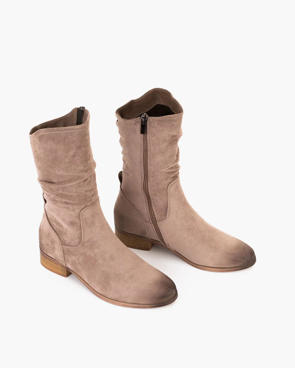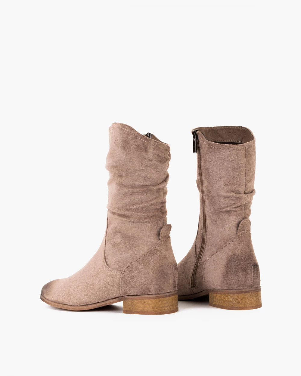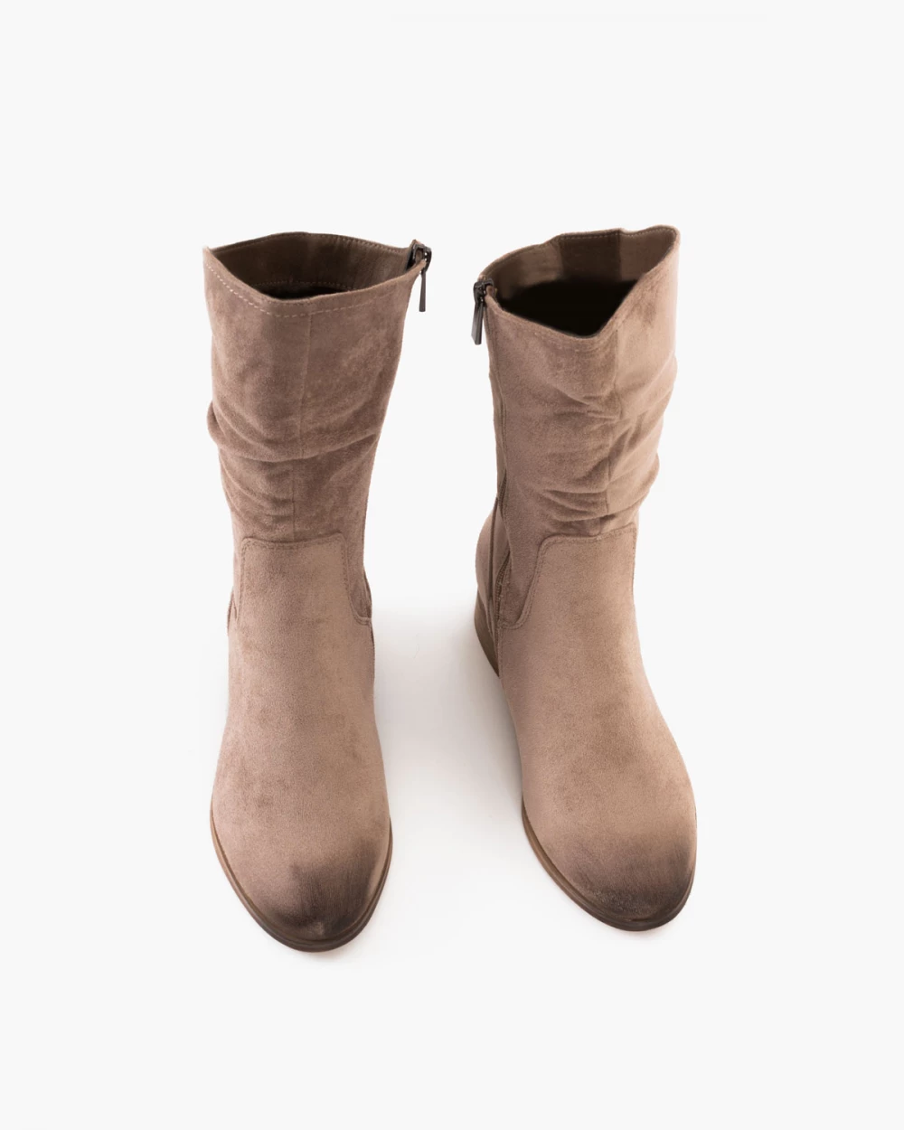 Beżowe botki damskie z eko-zamszu z wysoką cholewką