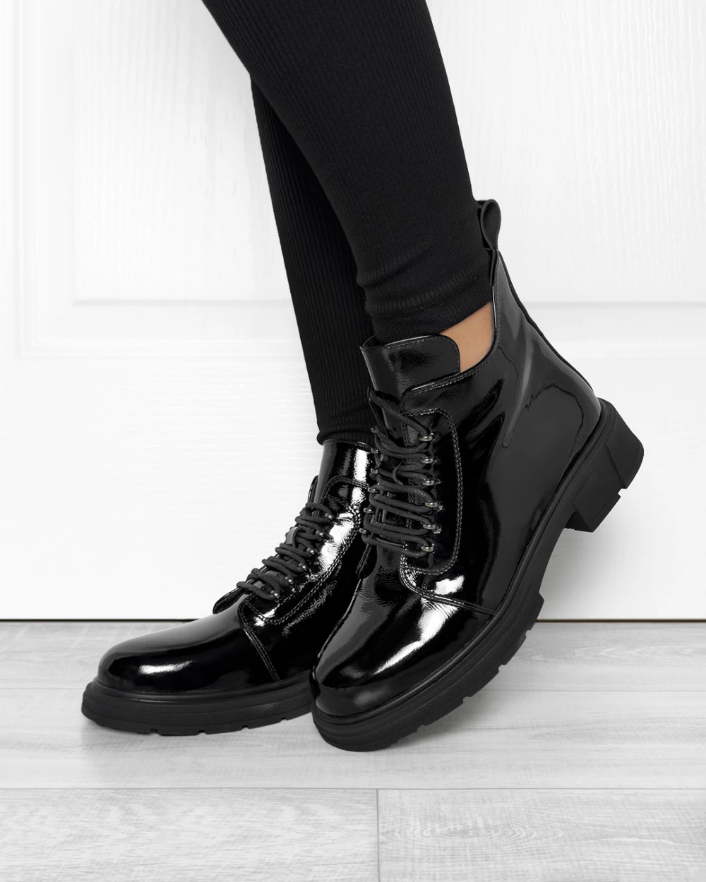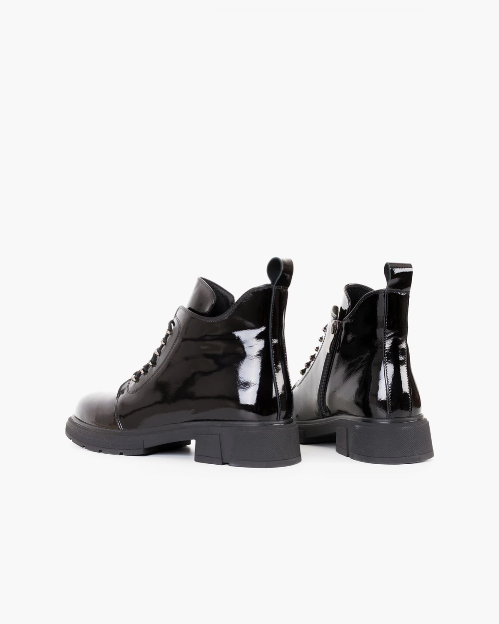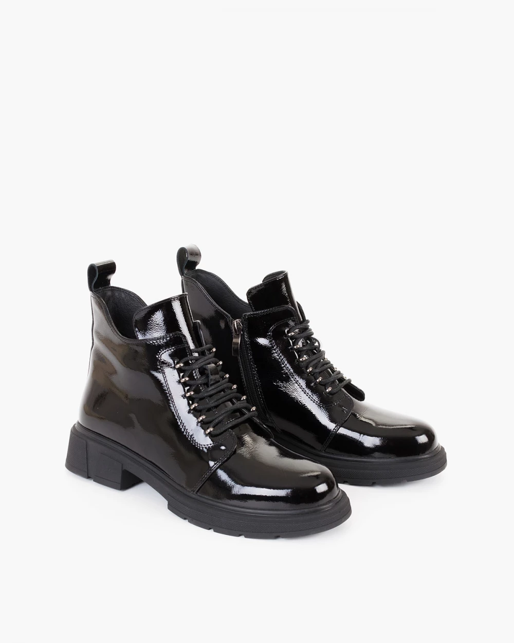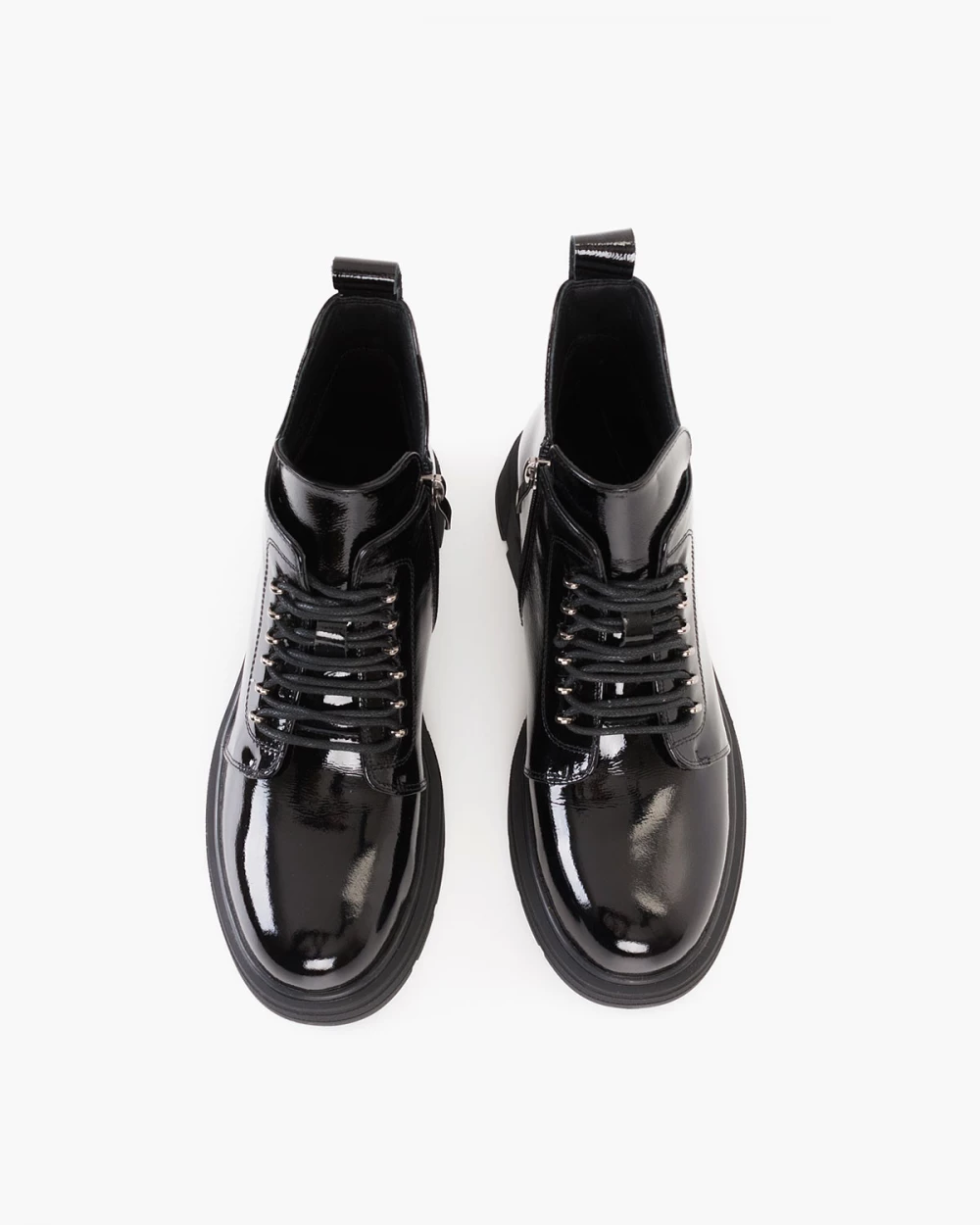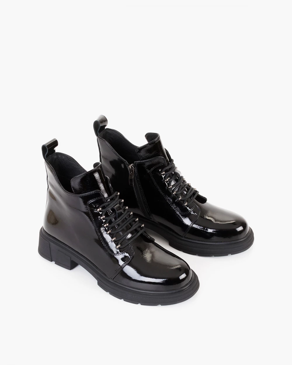 Czarne trzewiki damskie z naturalnej skóry lakierowanej