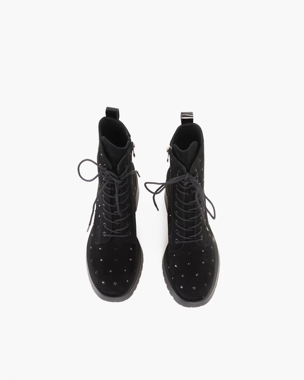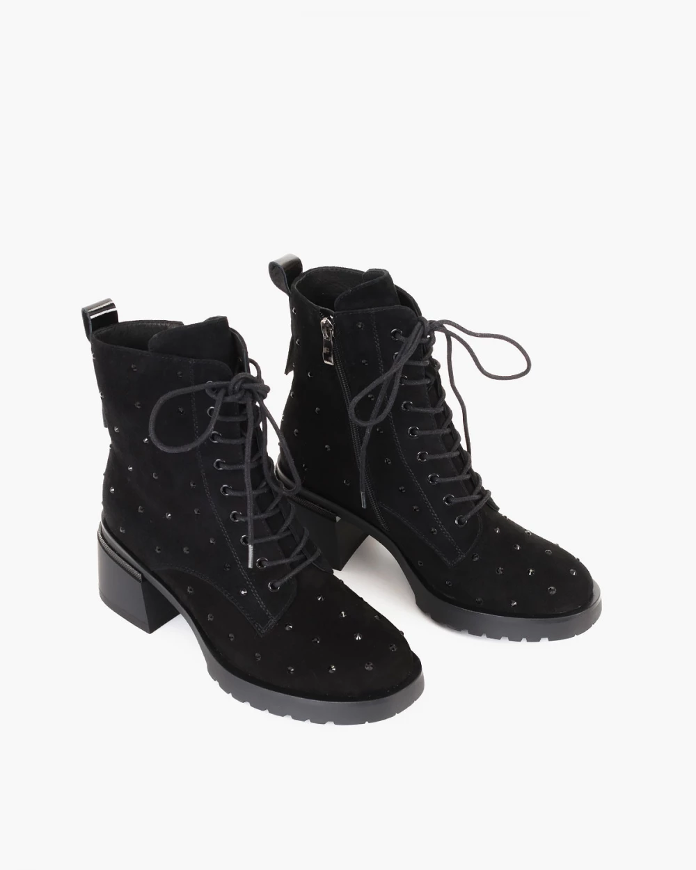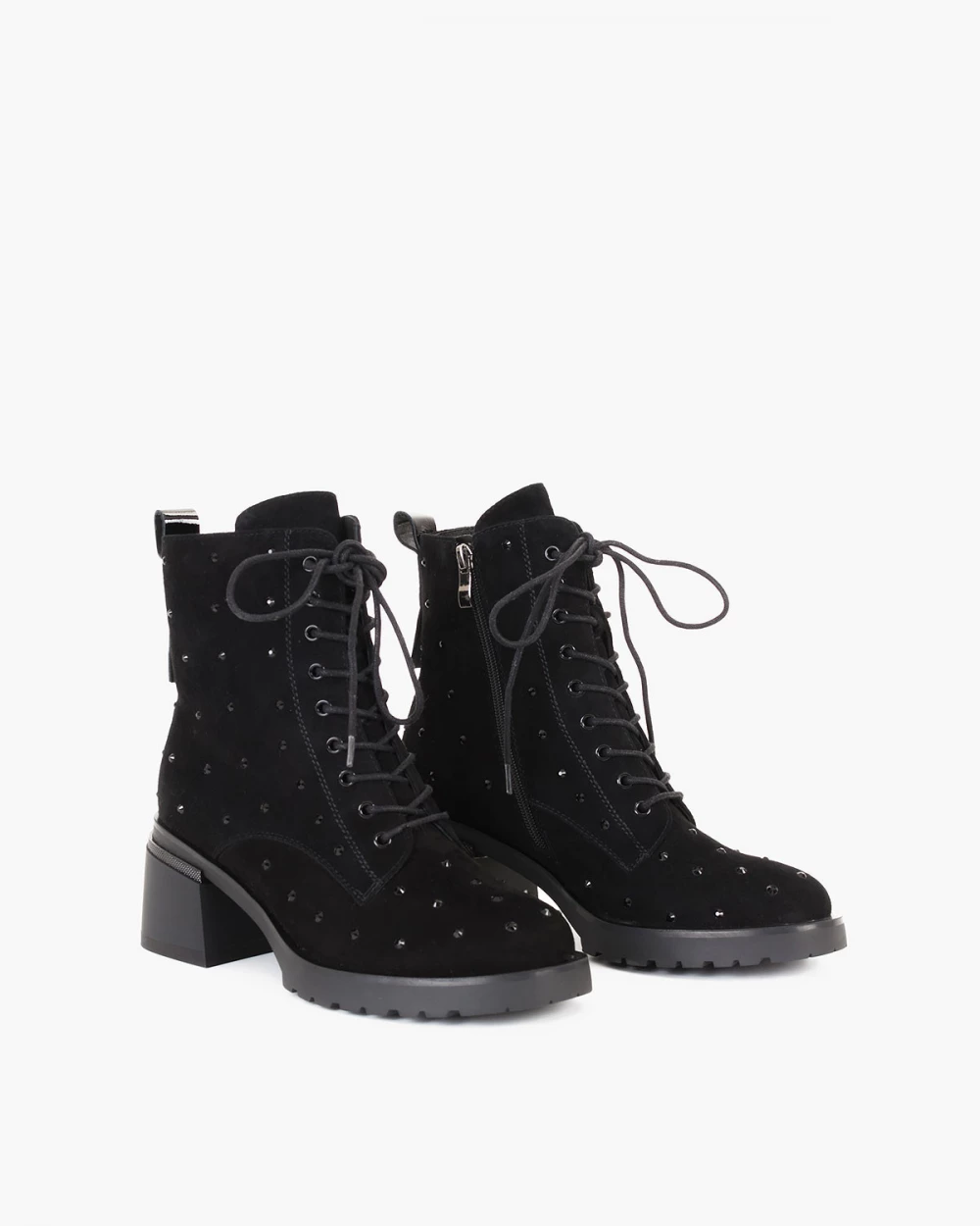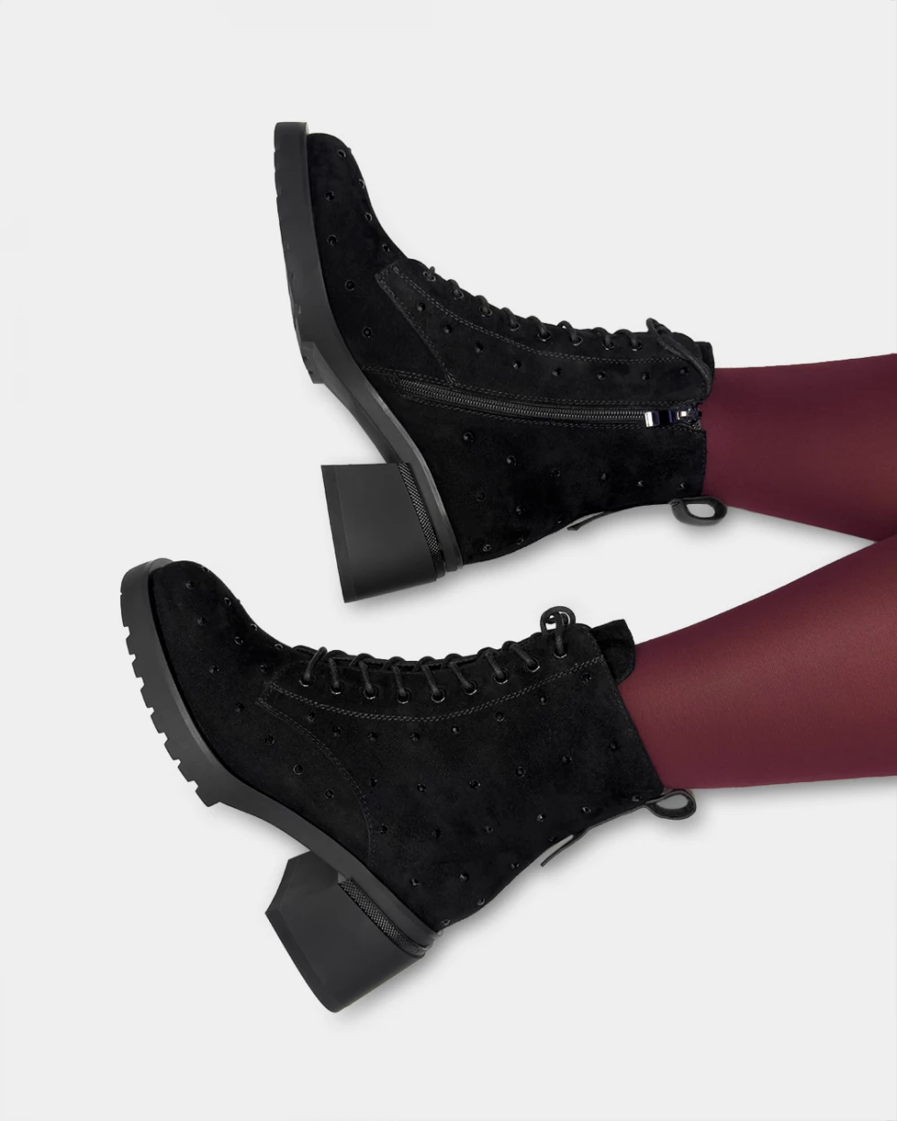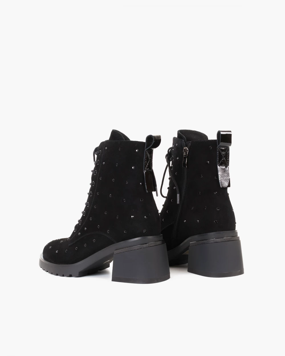 Czarne trzewiki damskie ze skóry naturalnej z kamieniami