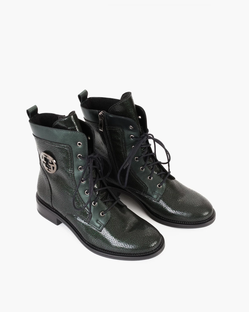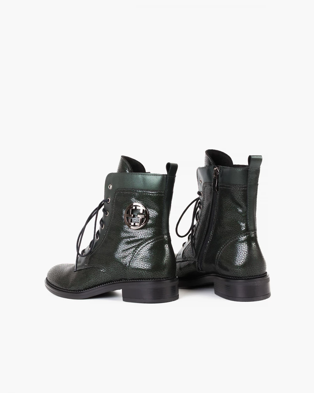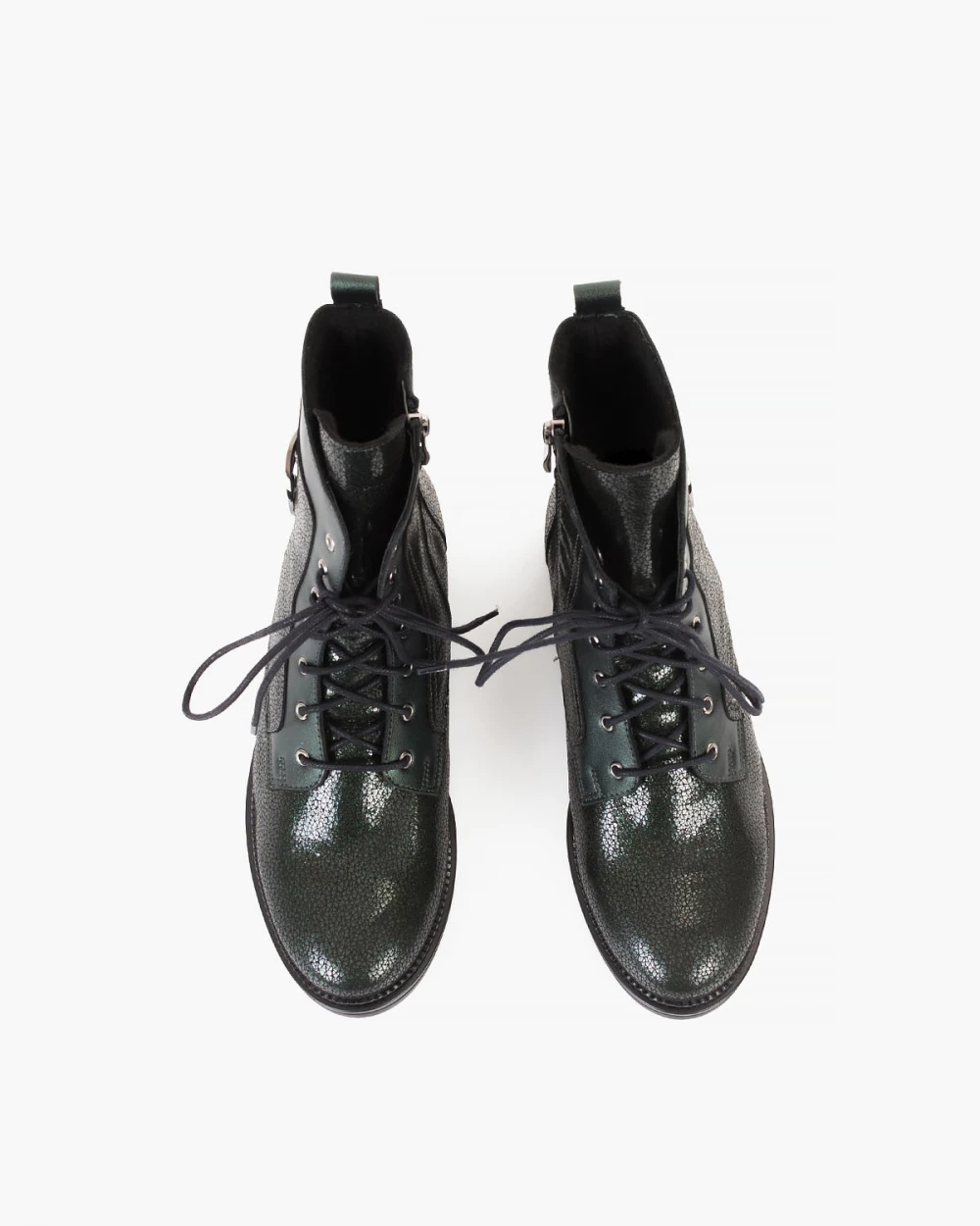 Ciemnozielone trzewiki damskie z naturalnej skóry nubukowej