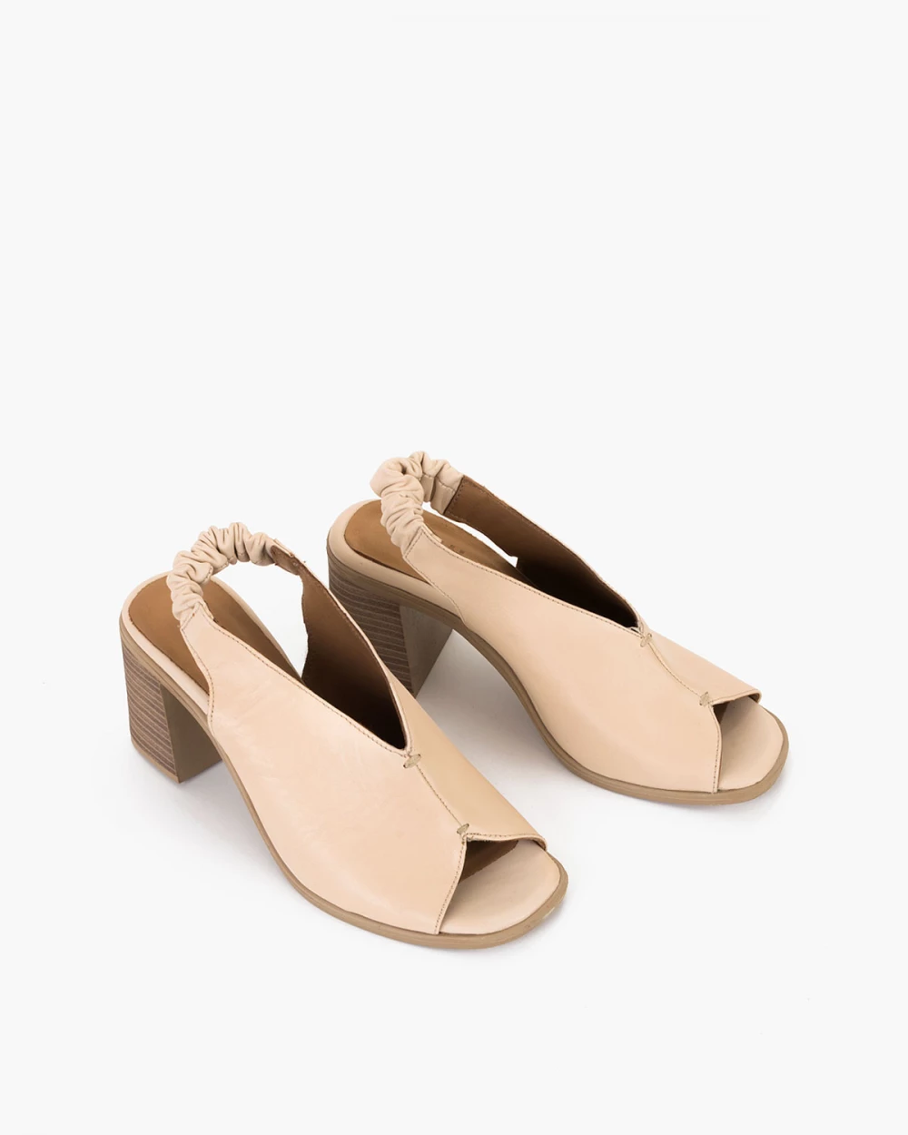 Beżowe sandały damskie ze skóry licowej na słupku