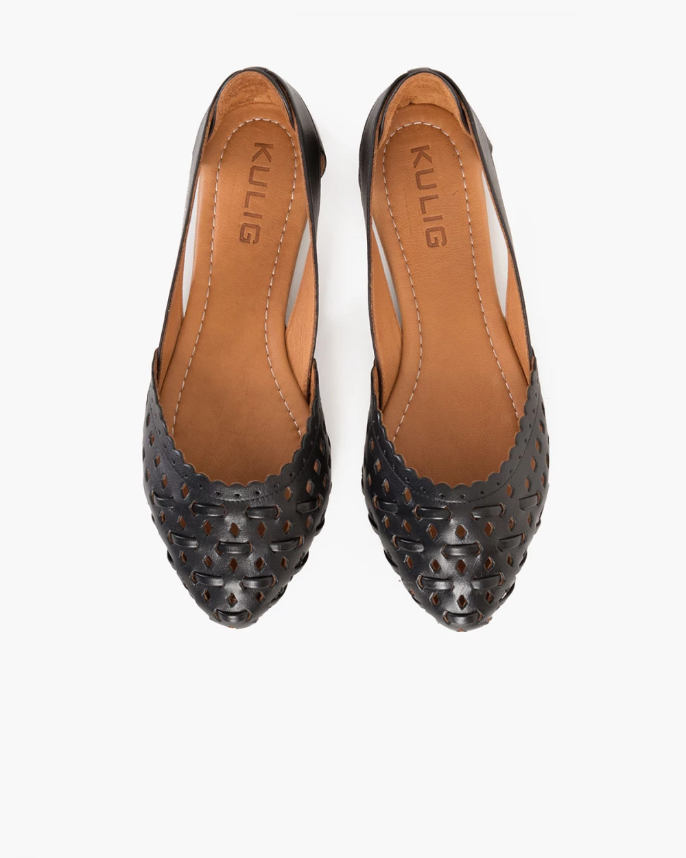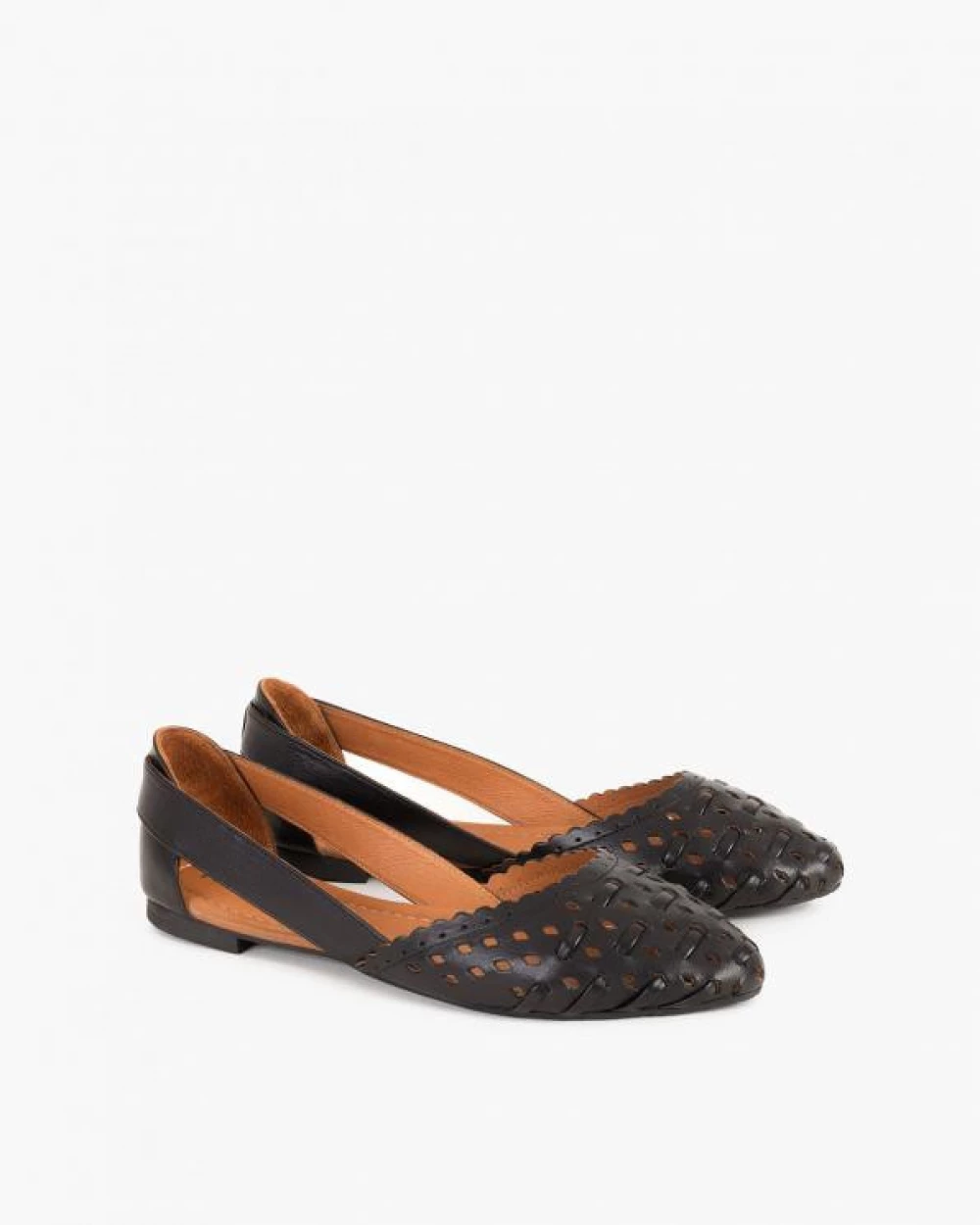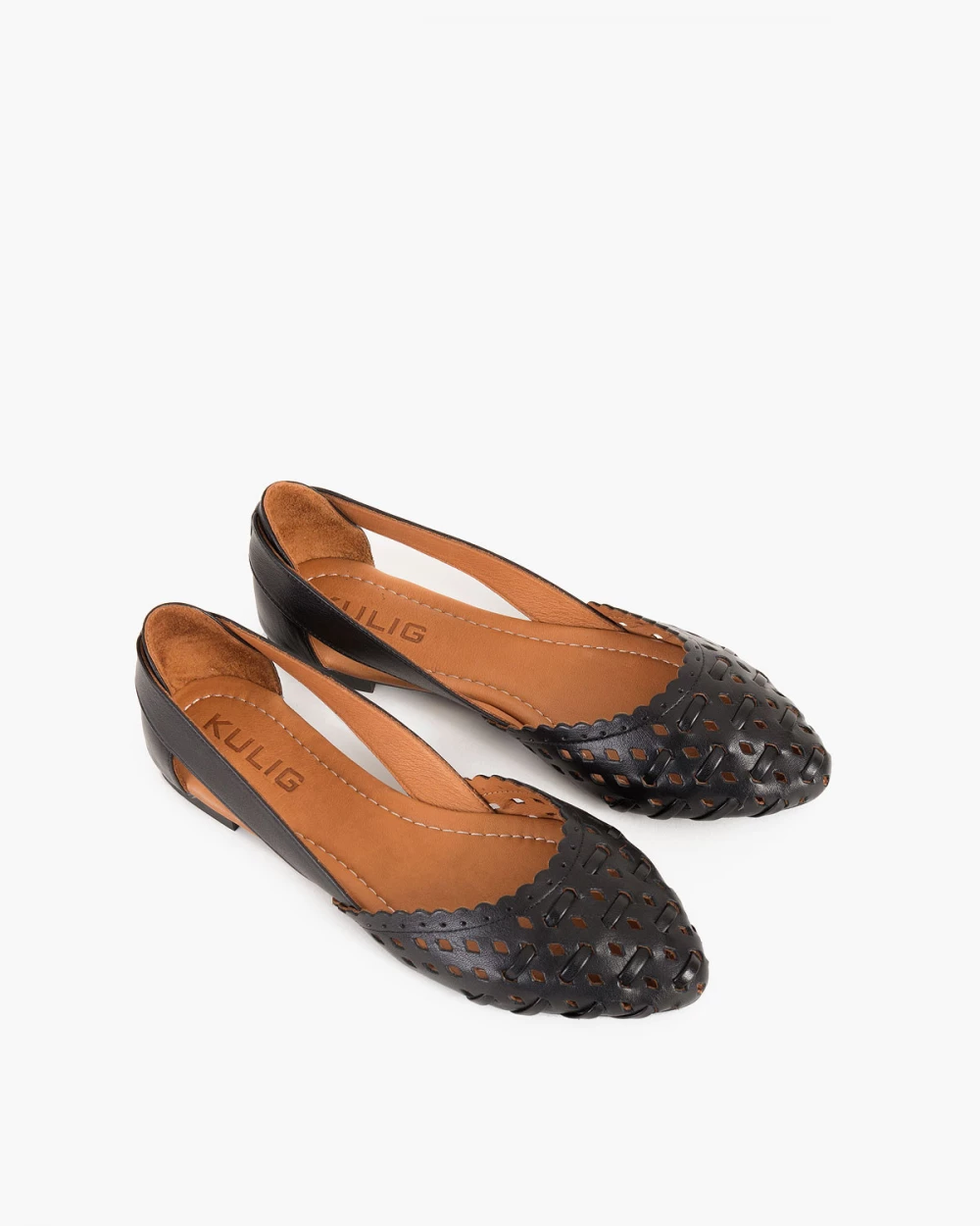 Czarne baleriny ażurowe z naturalnej skóry licowej