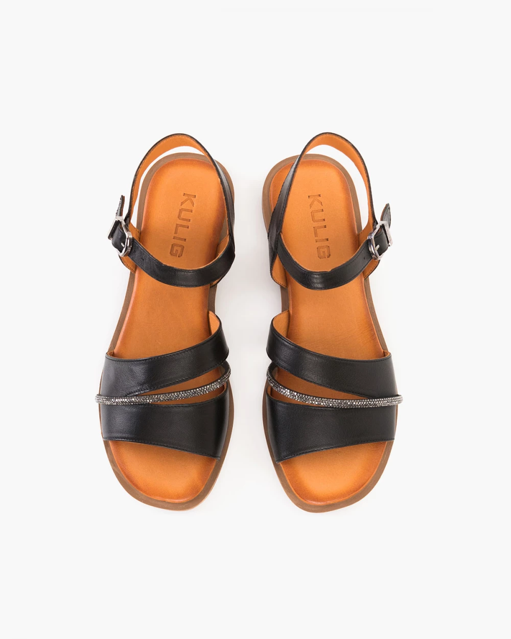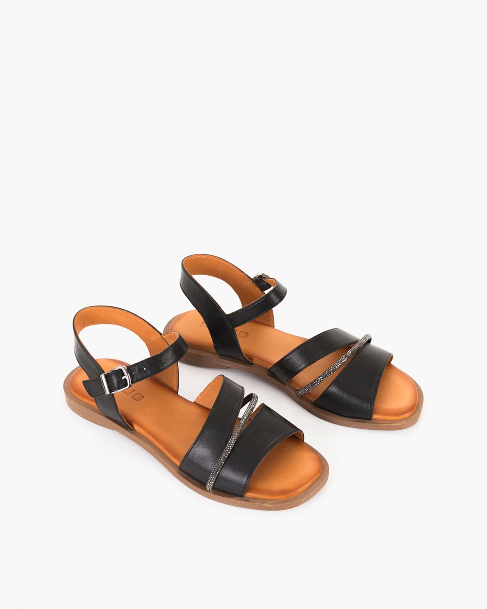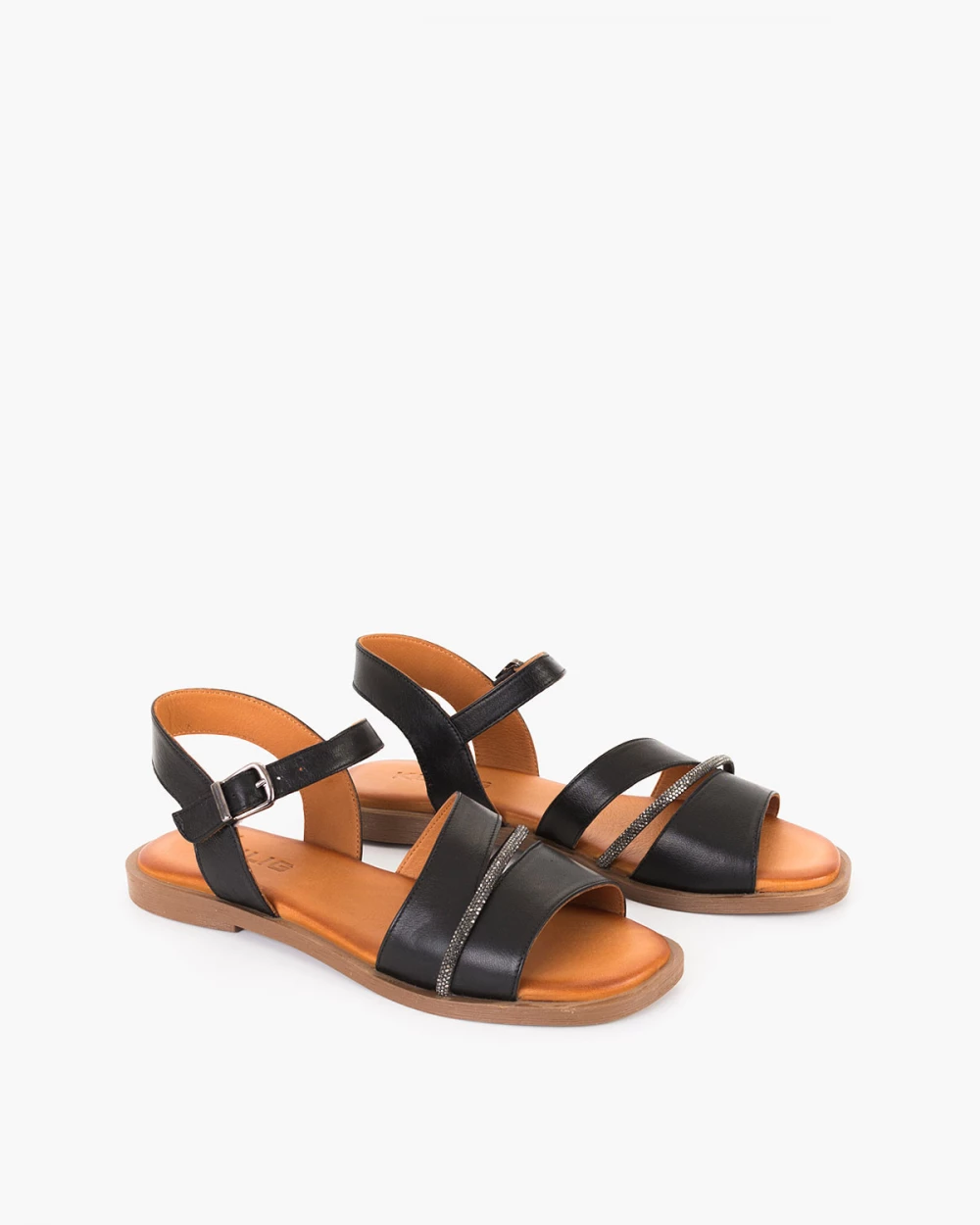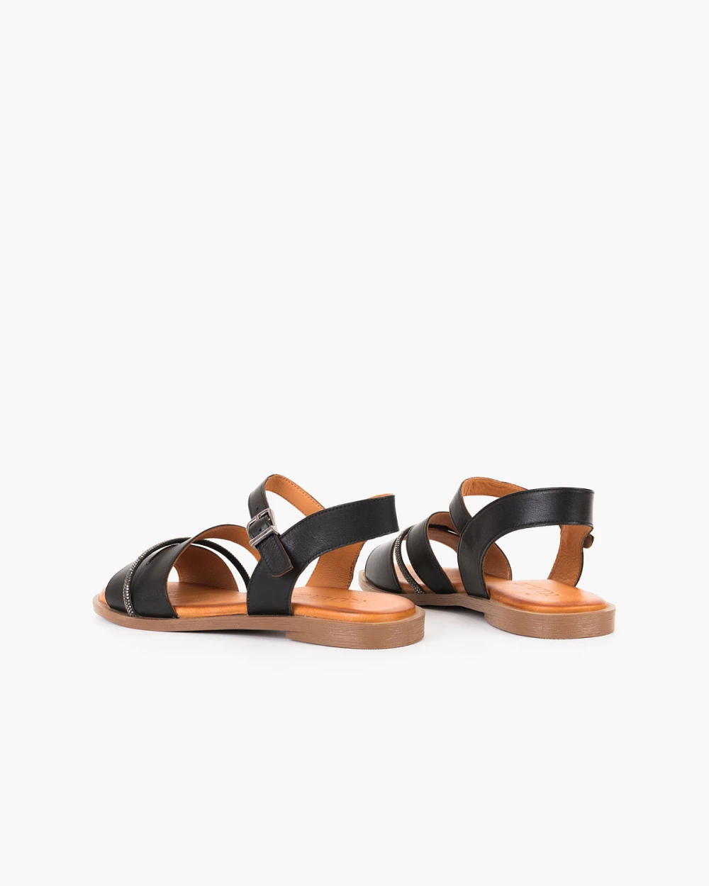 Czarne sandały z naturalnej skóry licowej z cyrkoniami