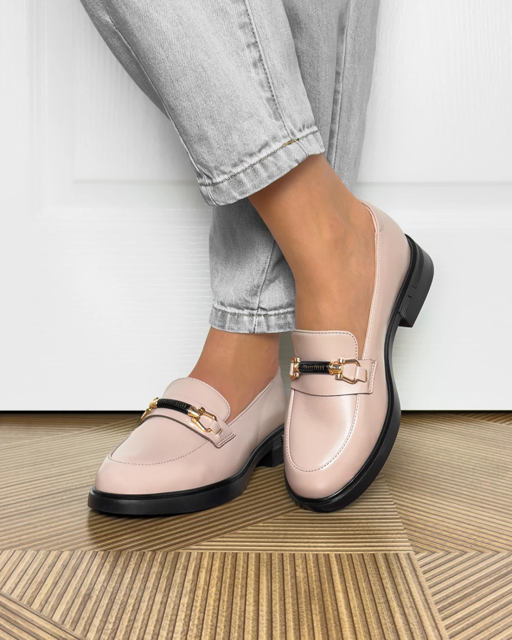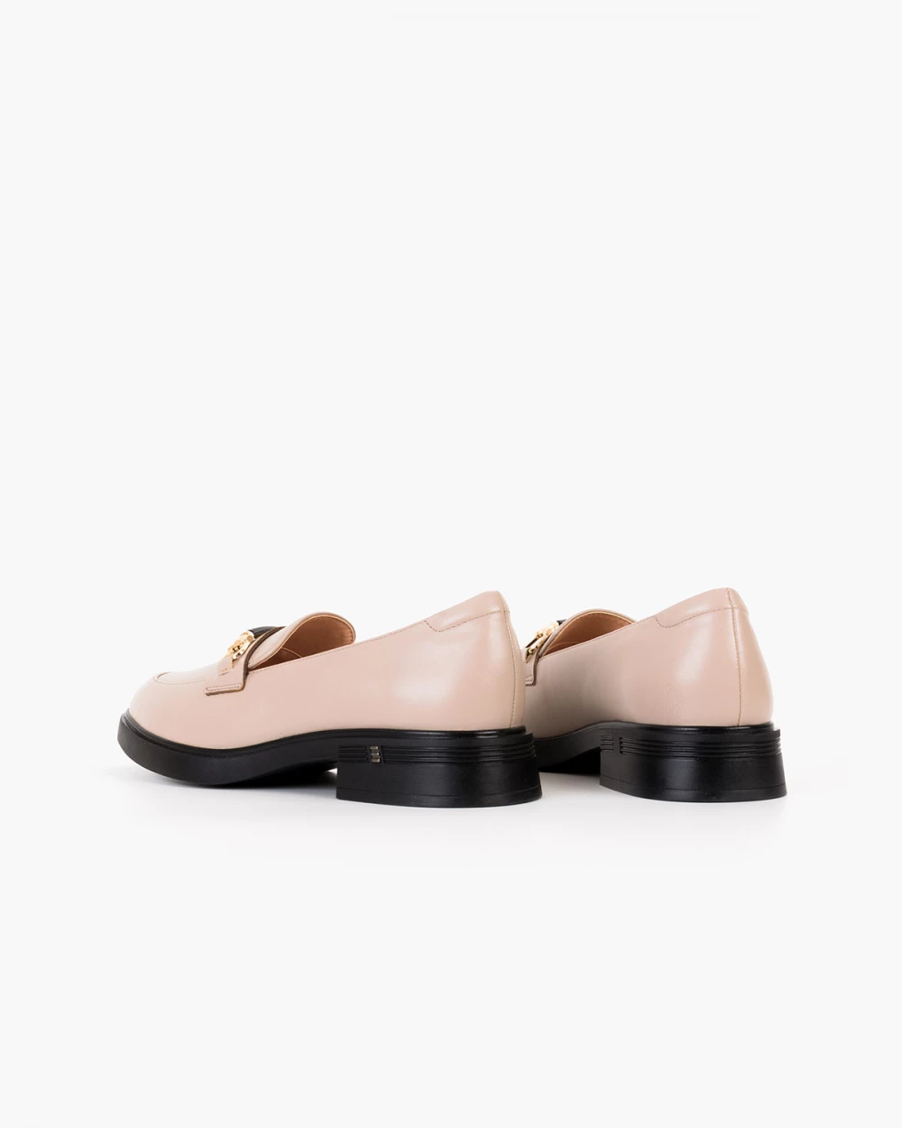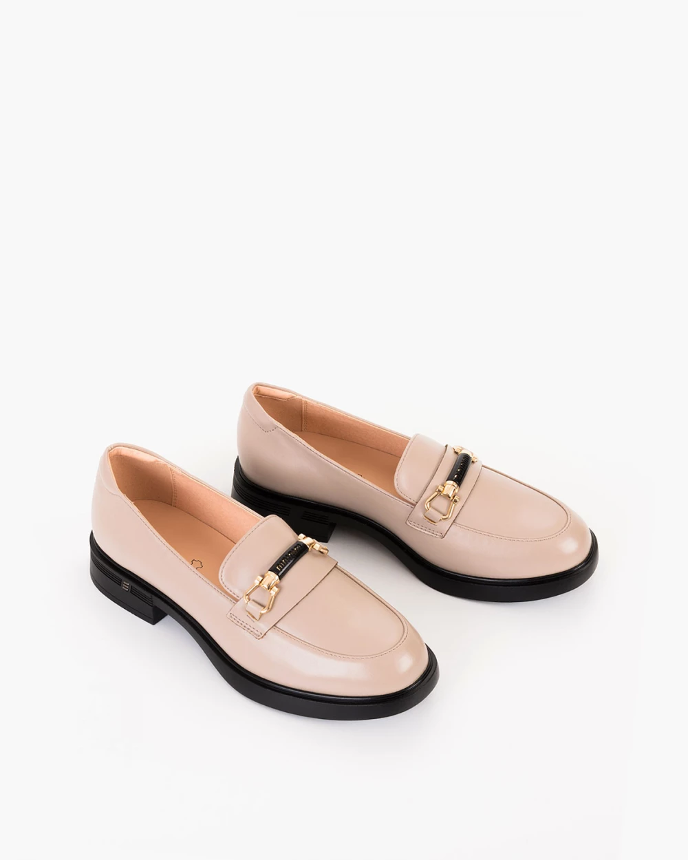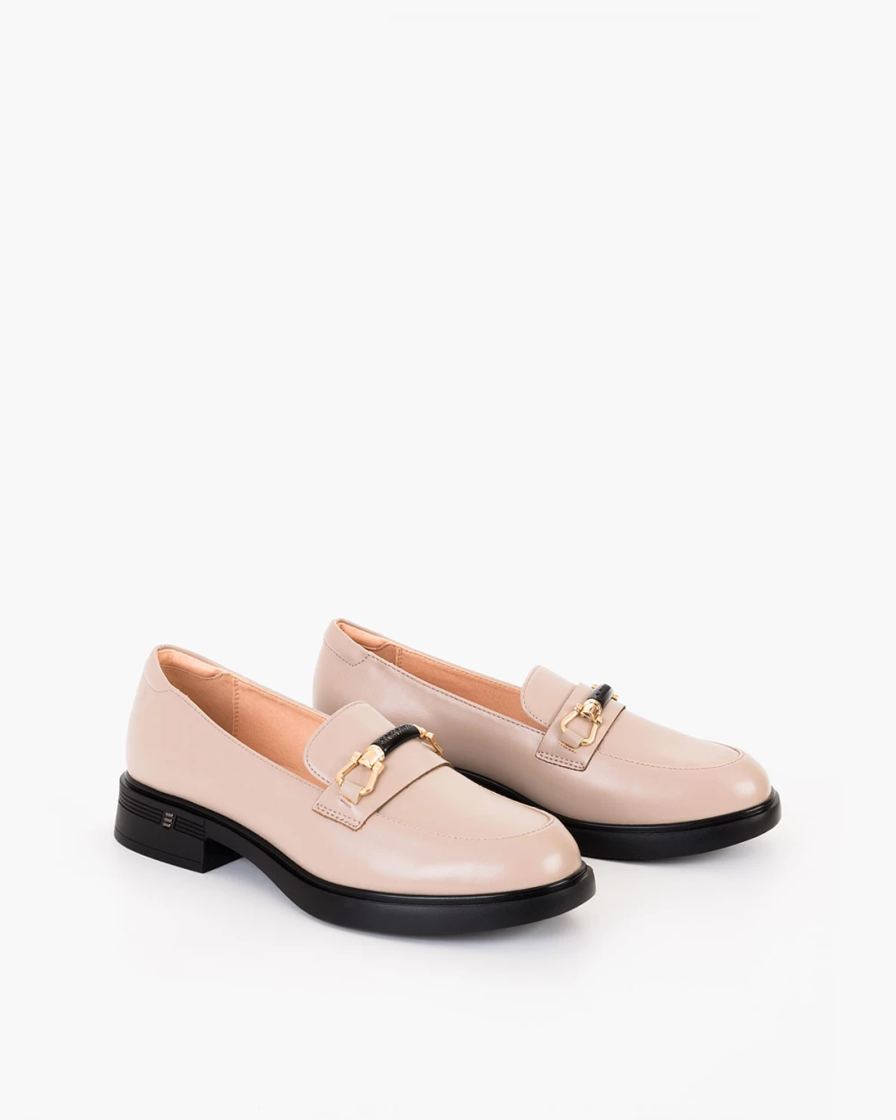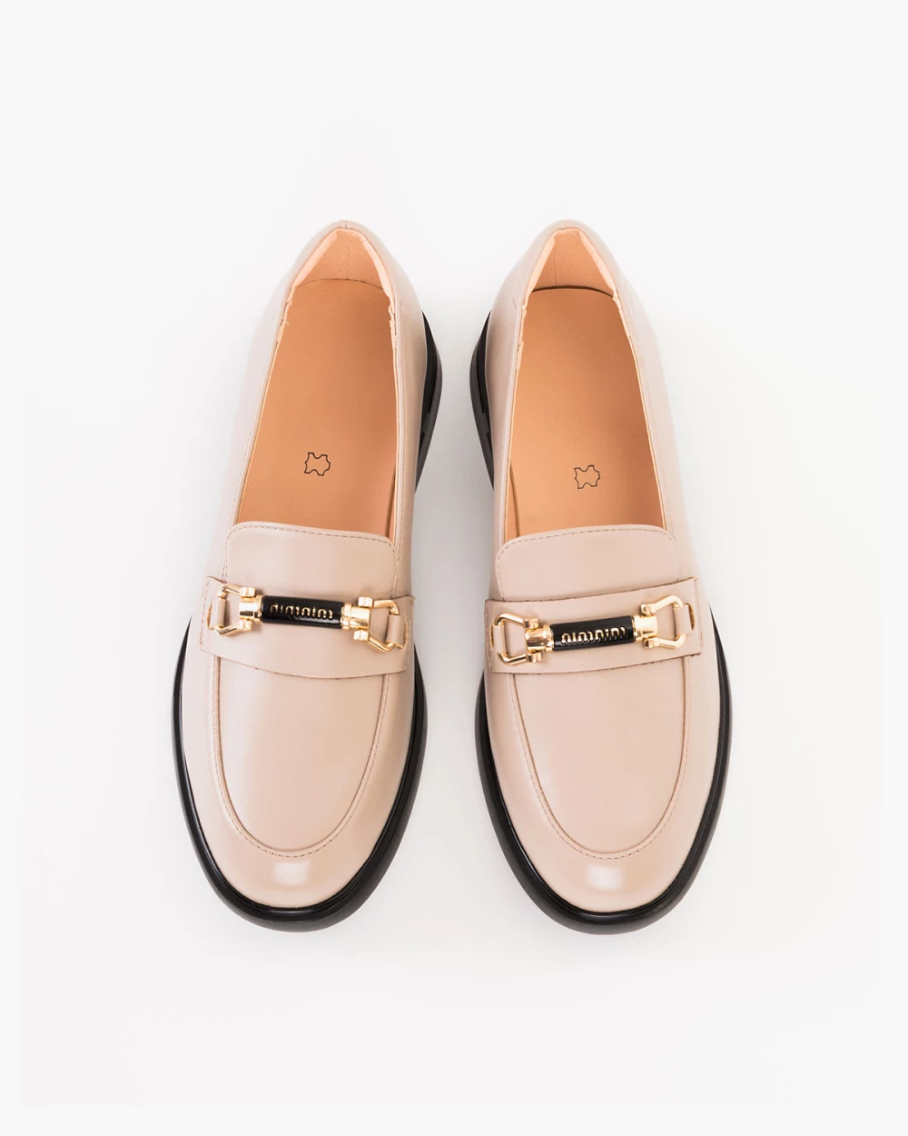 Beżowe mokasyny damskie skórzane z klamrą na obcasie