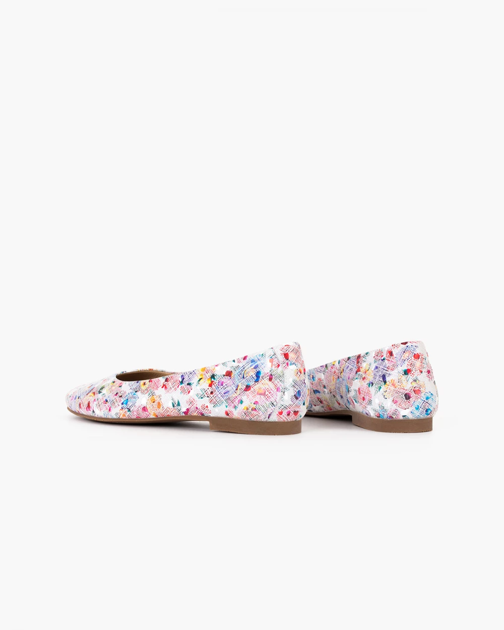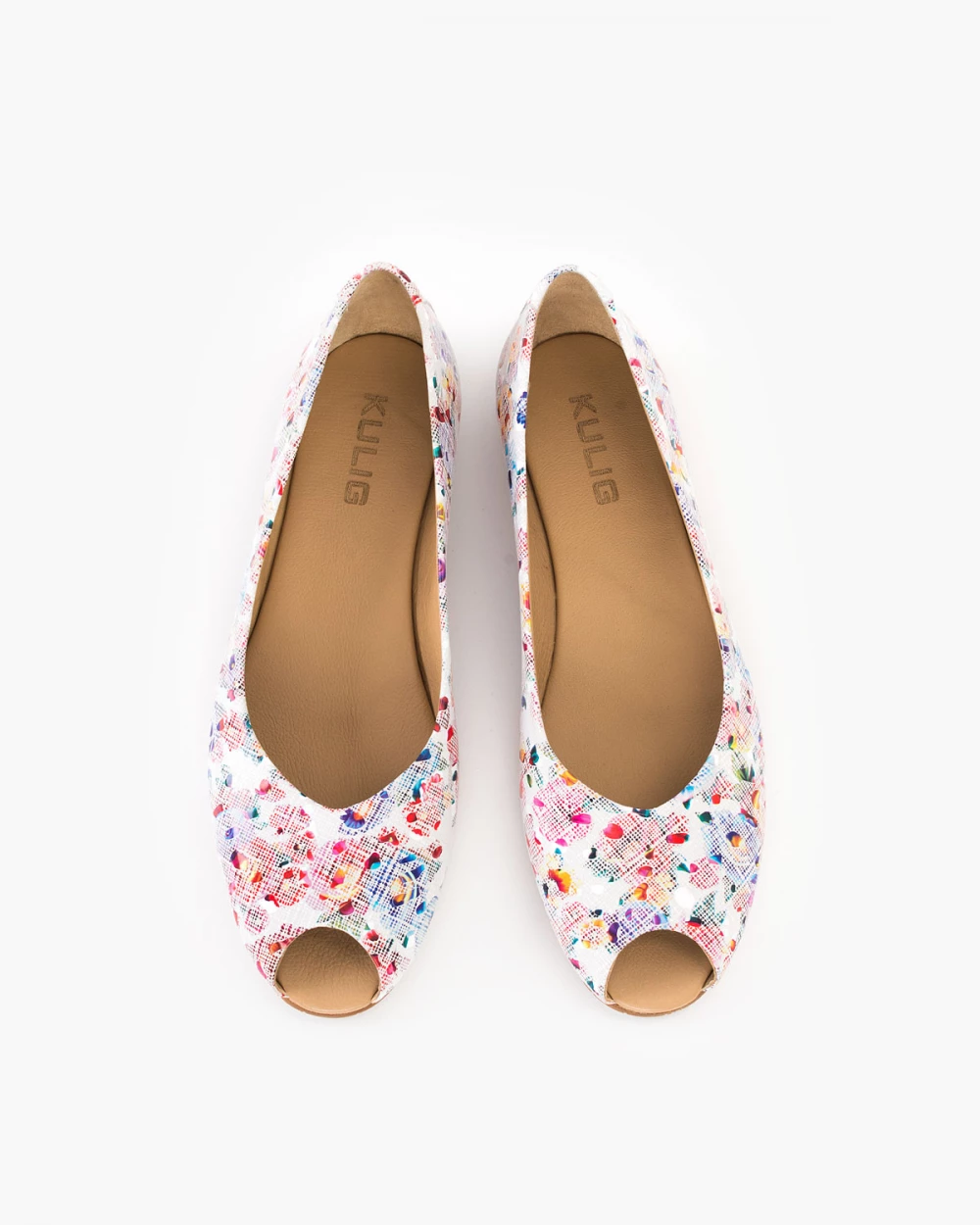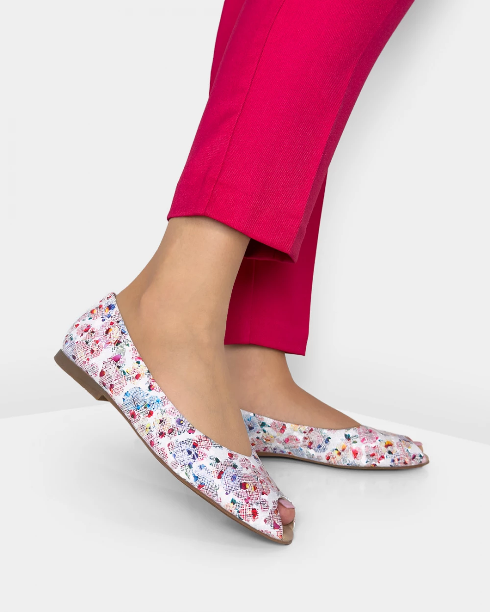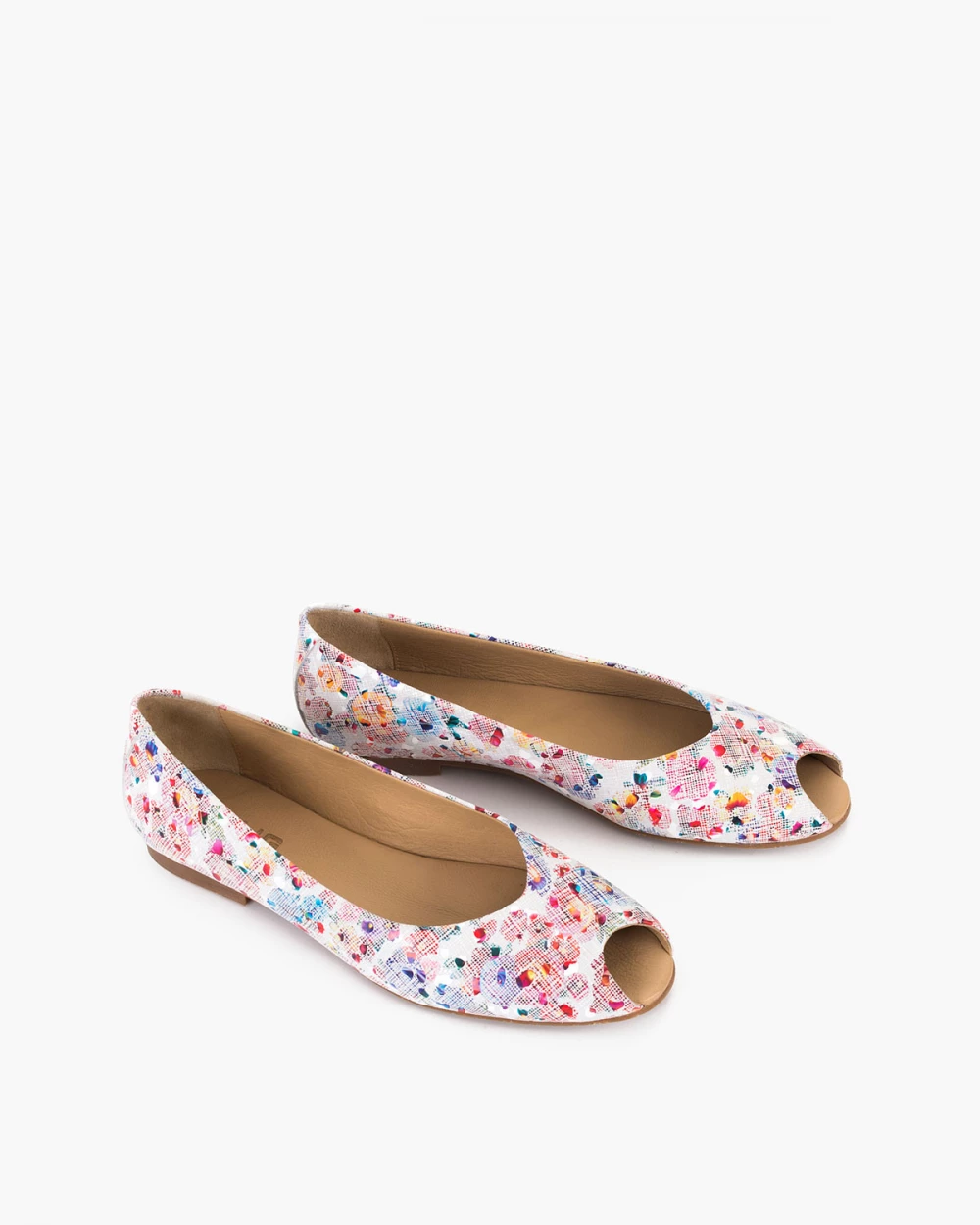 Wielokolorowe baleriny ażurowe ze skóry naturalnej peep toe
