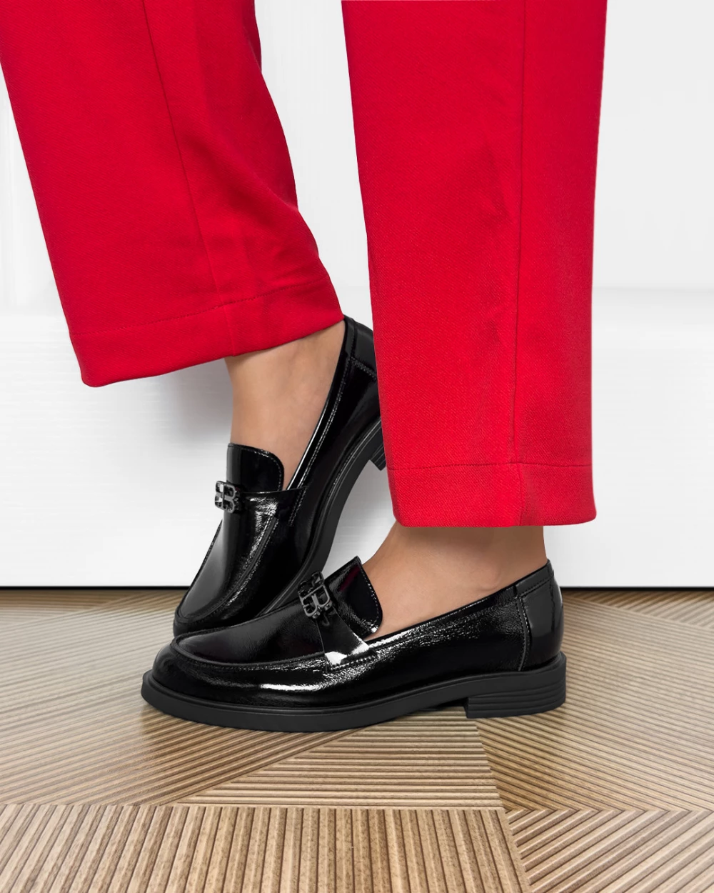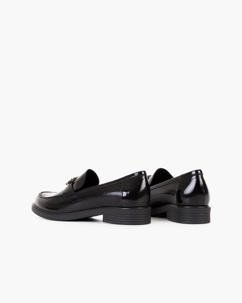 Czarne mokasyny damskie ze skóry naturalnej z klamrą