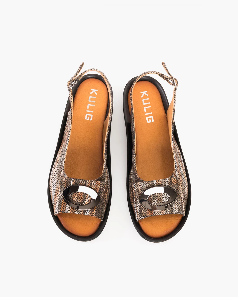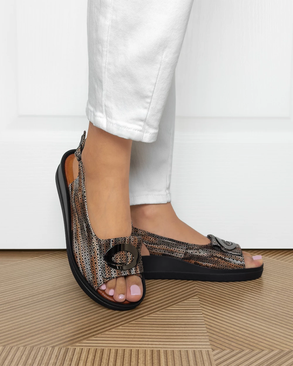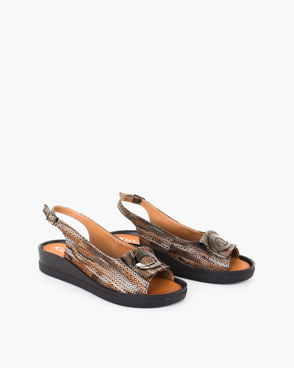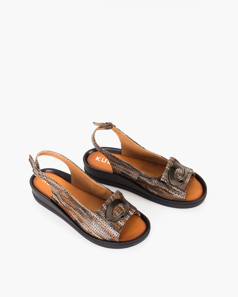 Wielokolorowe sandały damskie ze skóry naturalnej z motywem