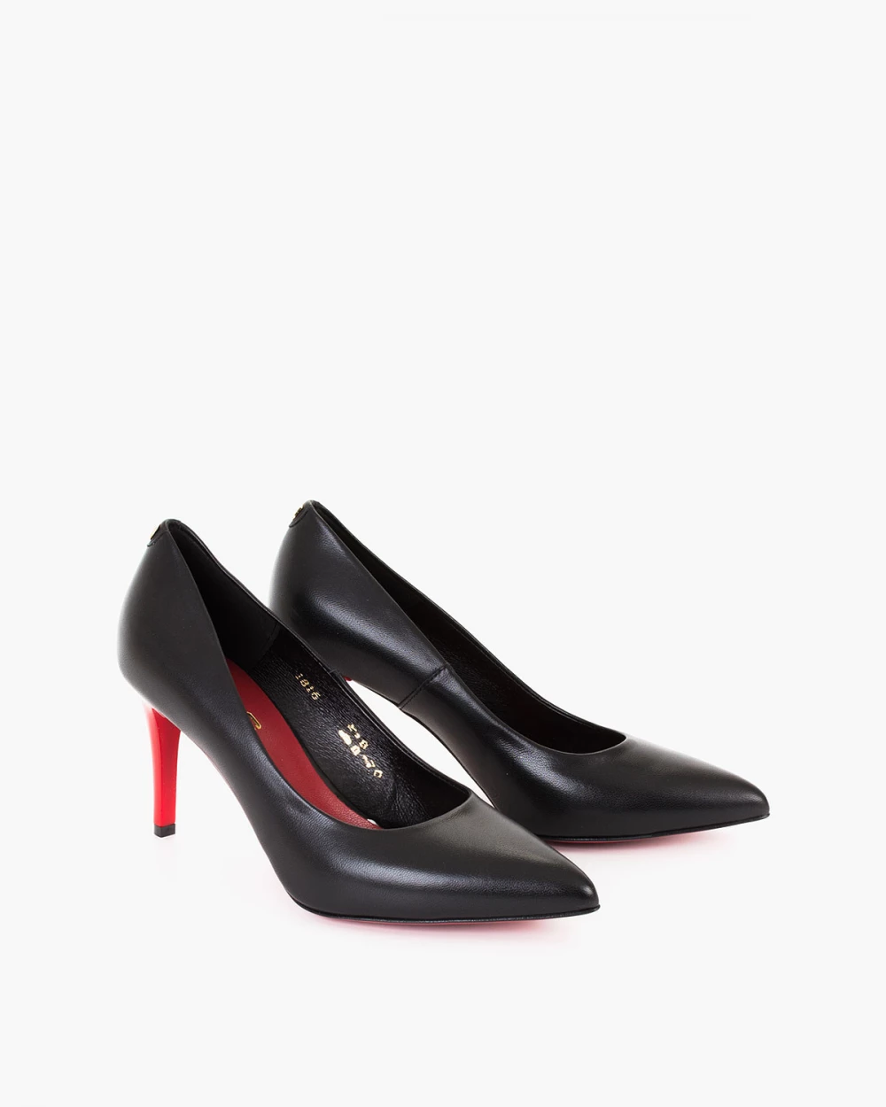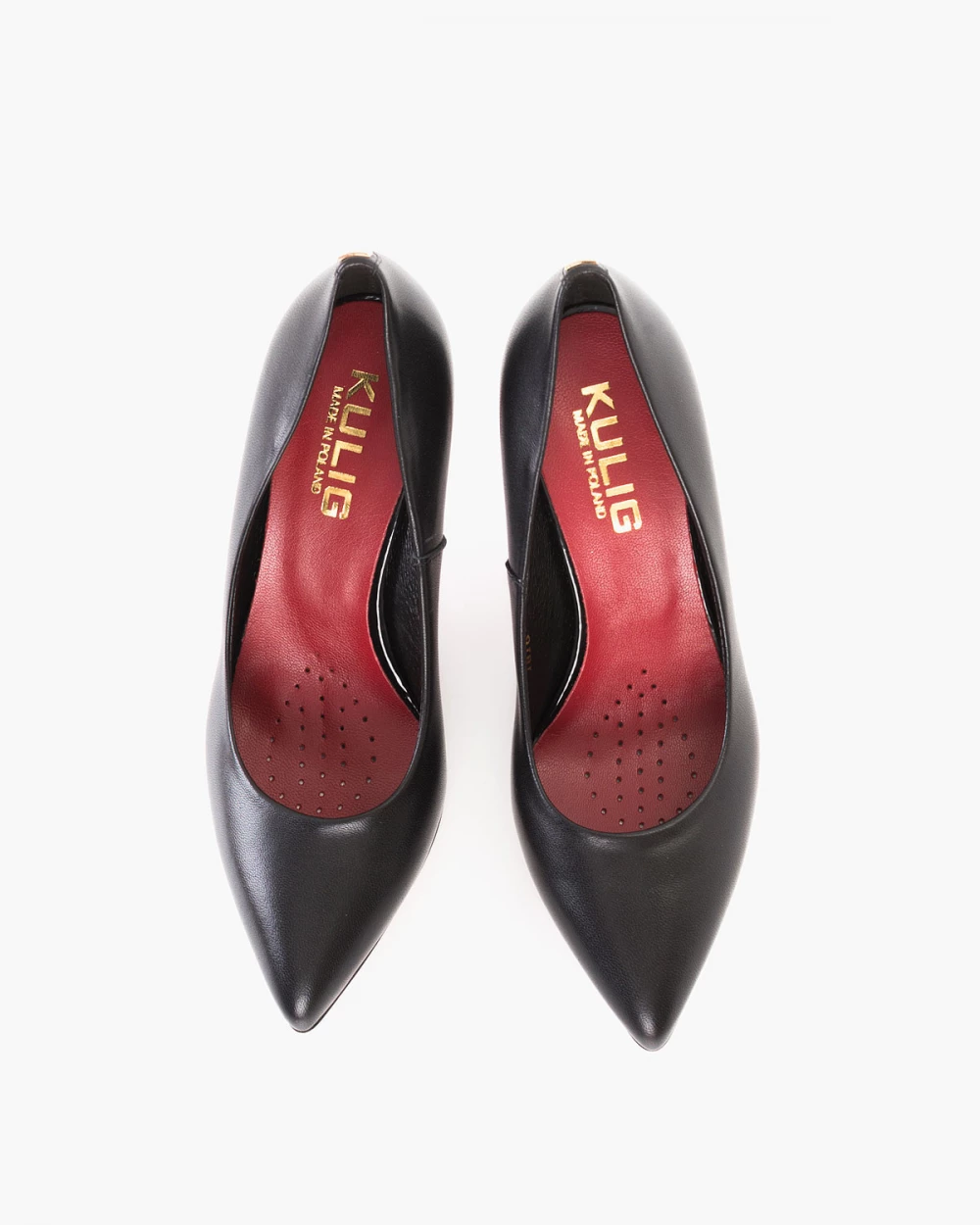 Czarne czółenka ze skóry licowej na wysokiej szpilce