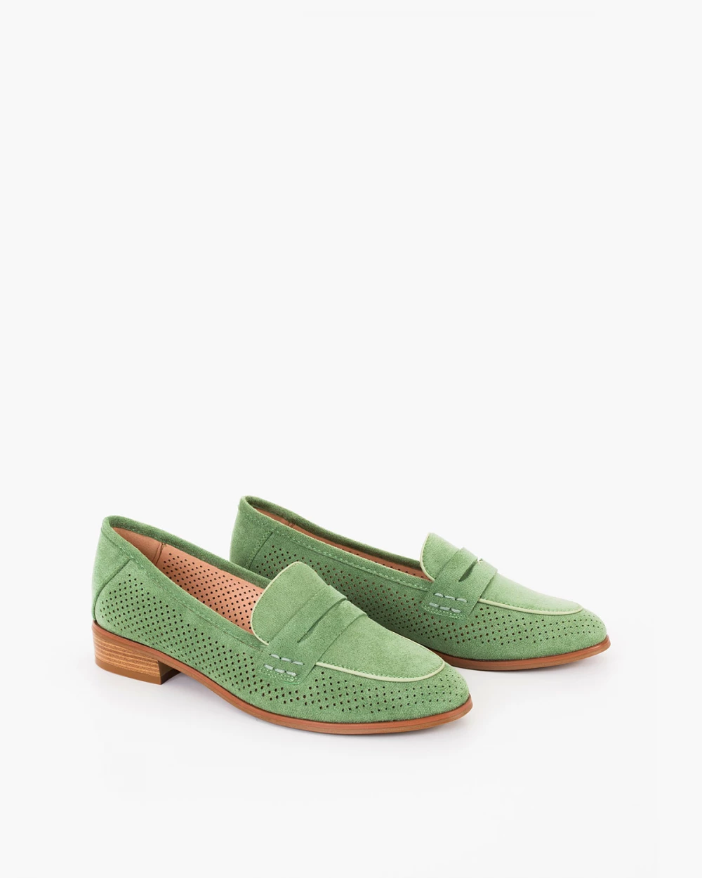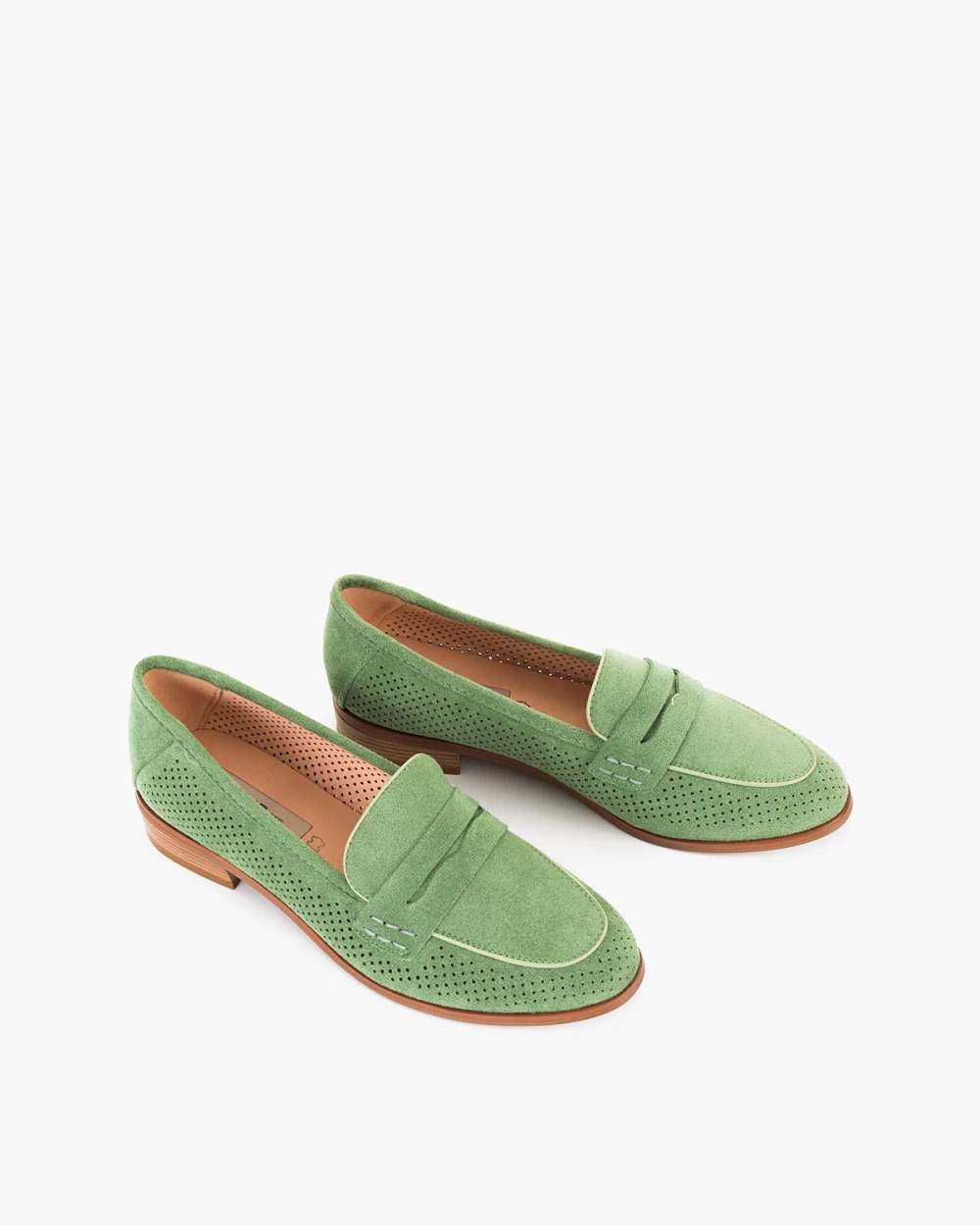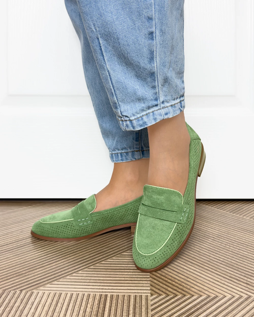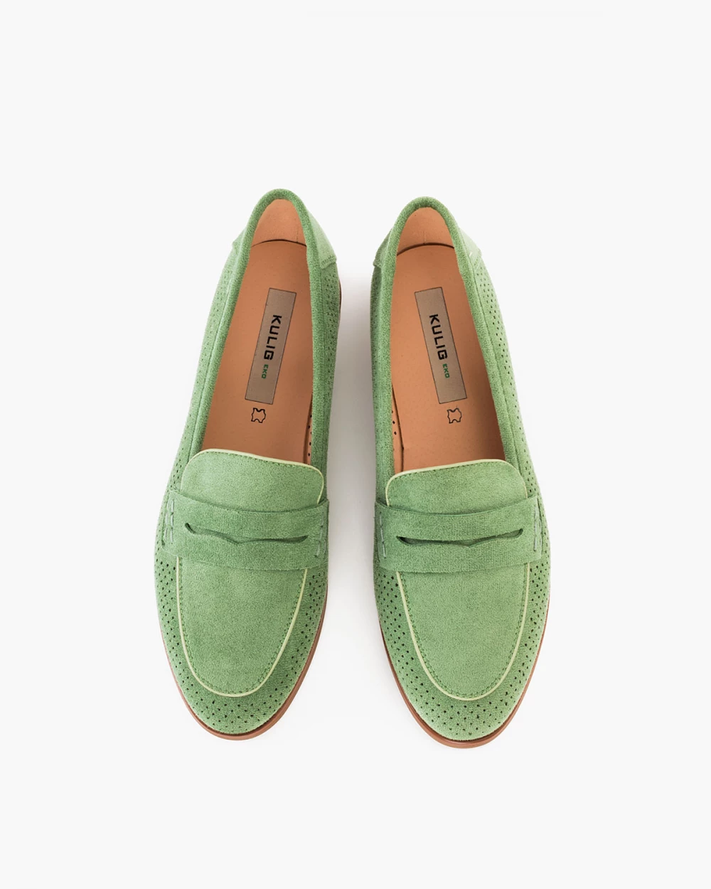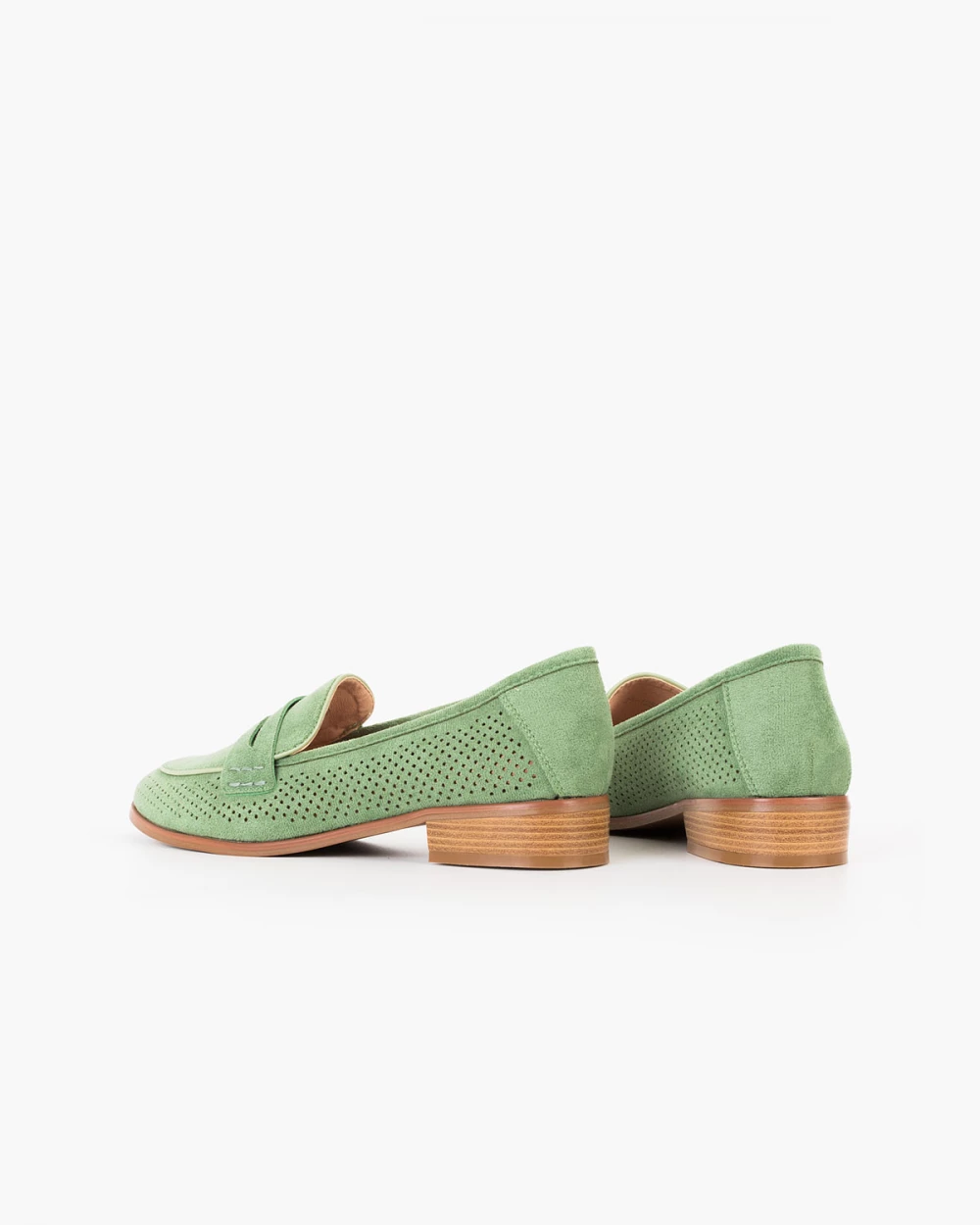Zielone mokasyny damskie ażurowe z eko-zamszu
