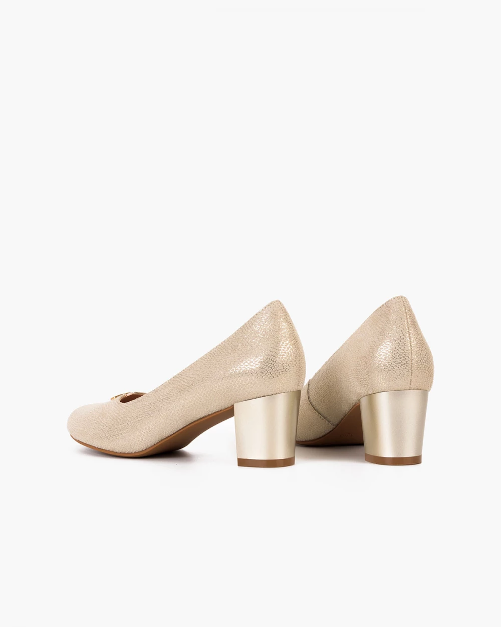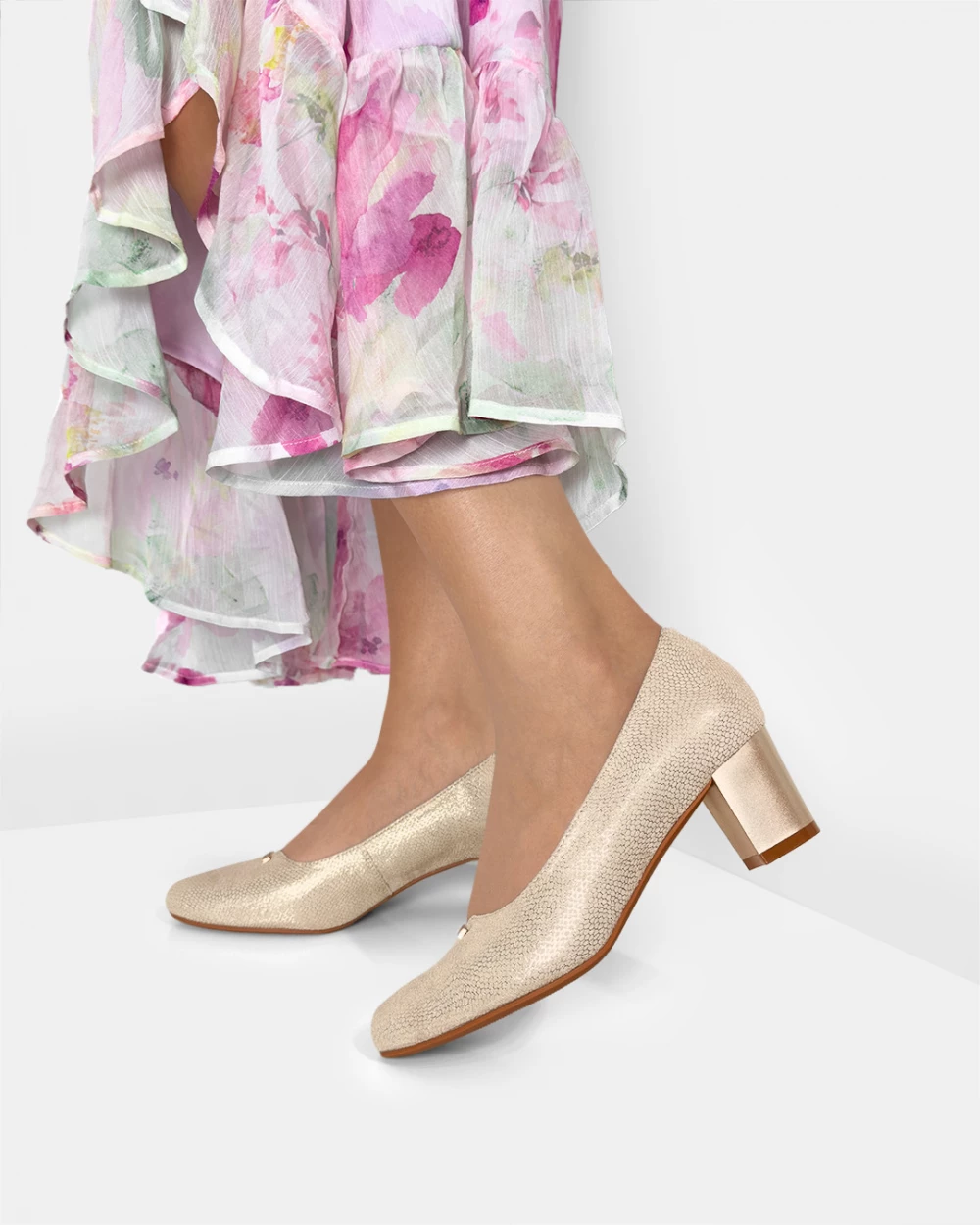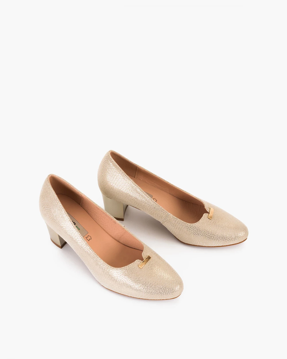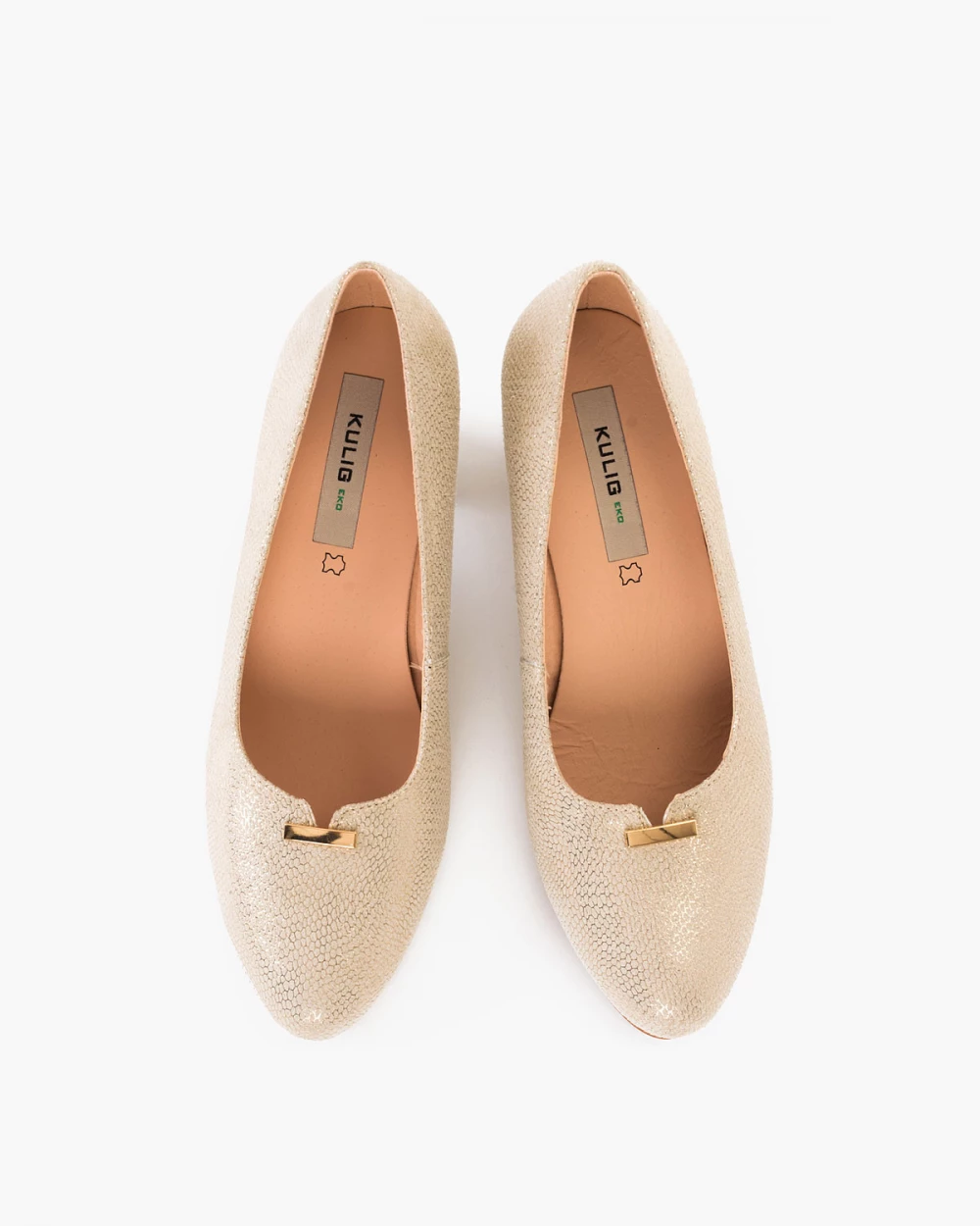 Złote czółenka damskie ze skóry ekologicznej na słupku