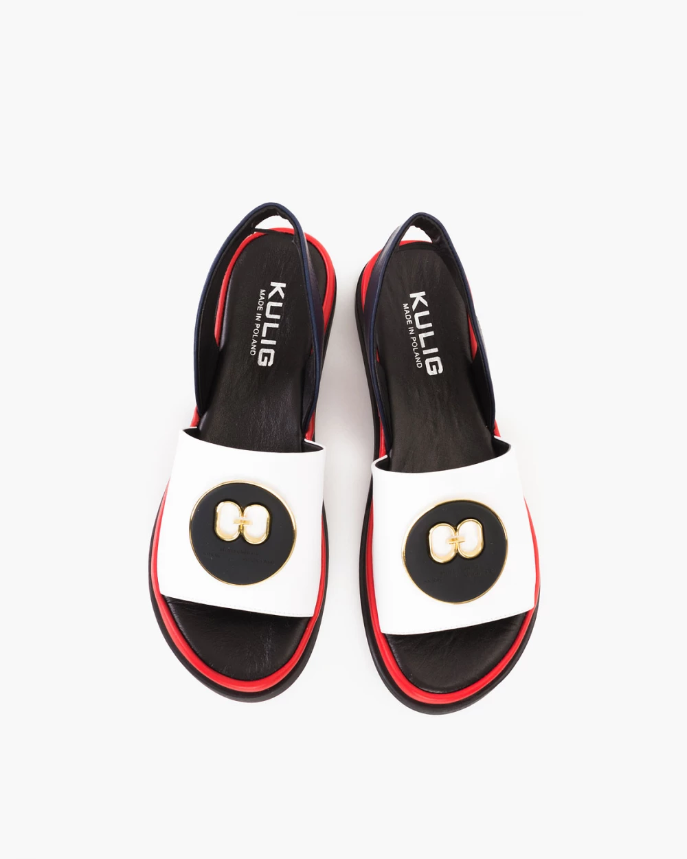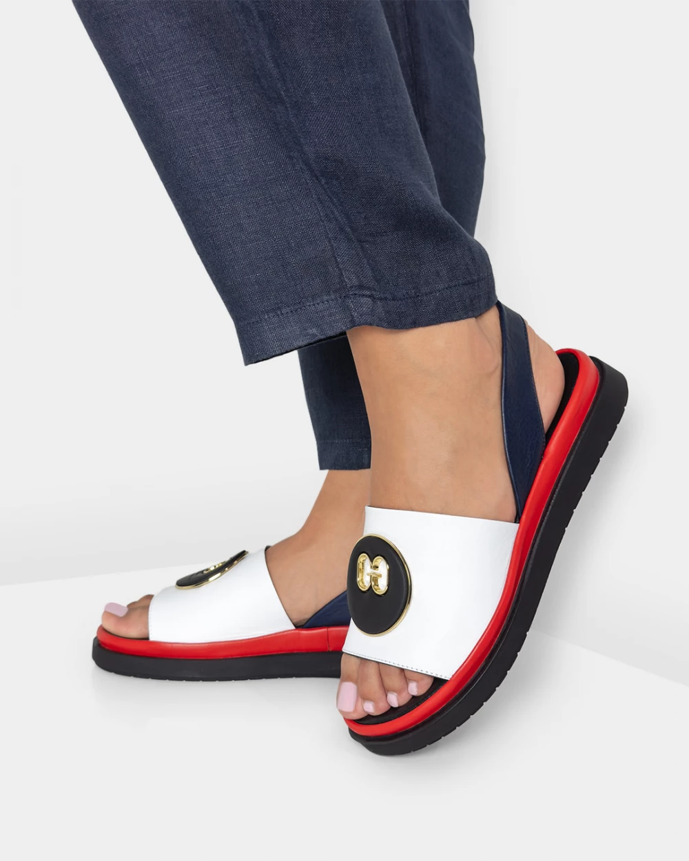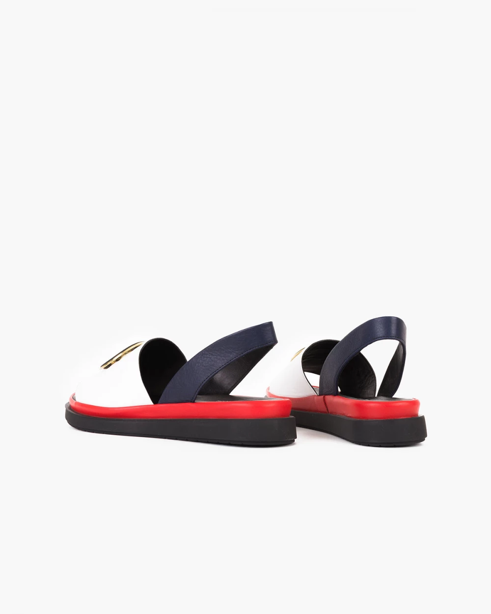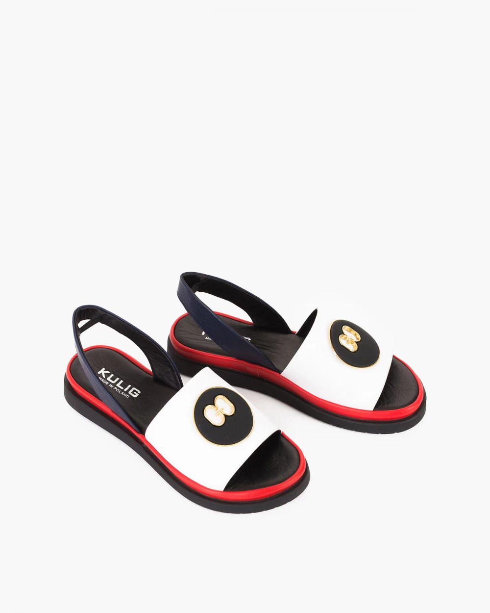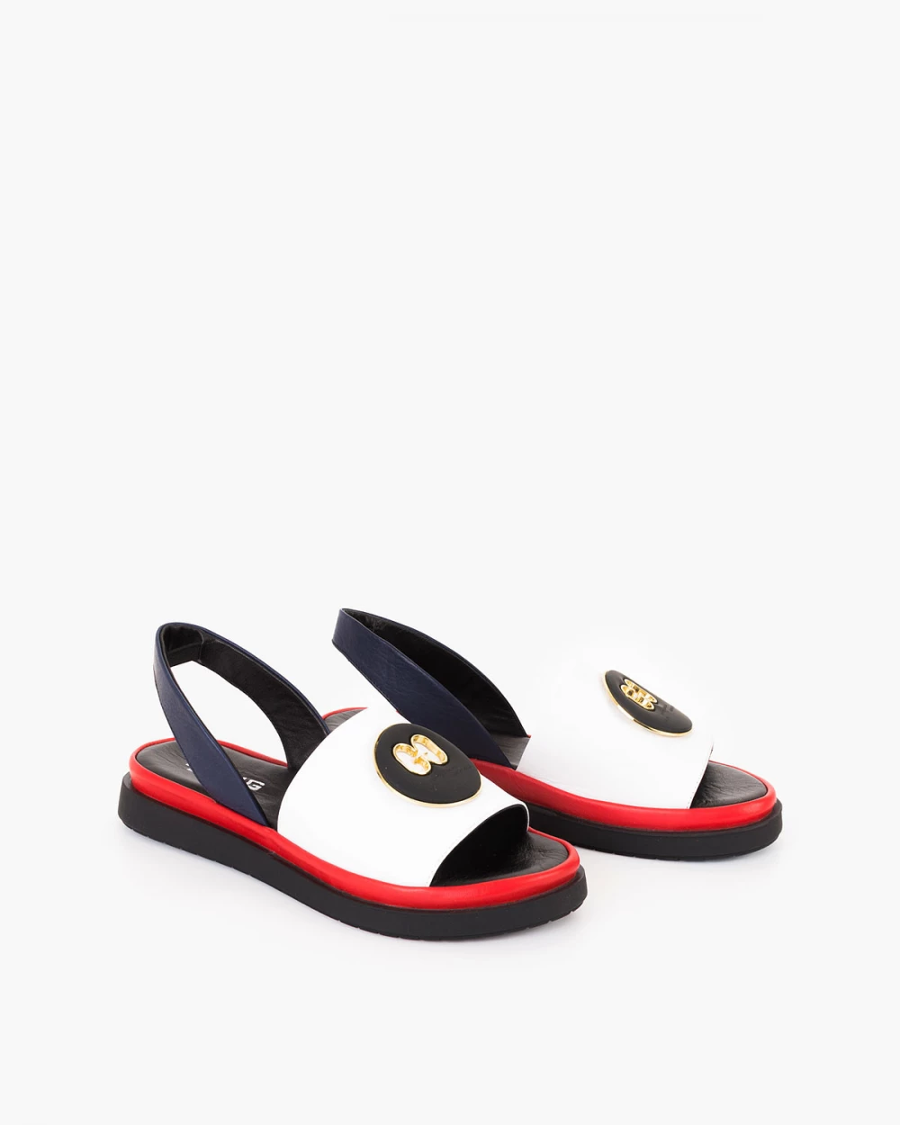 Biało-granatowe sandały damskie skórzane z ozdobą