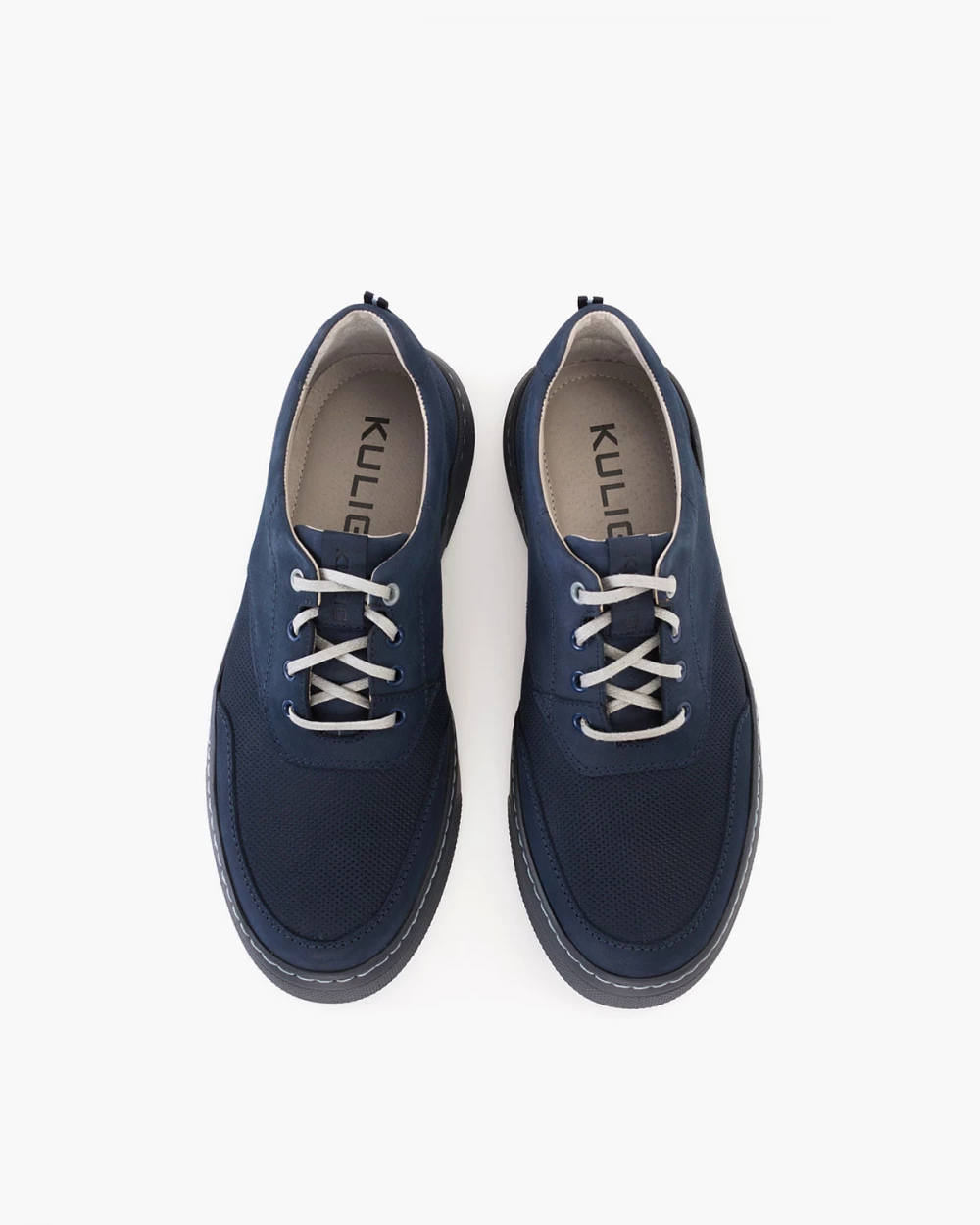Granatowe półbuty męskie z naturalnej skóry nubukowej