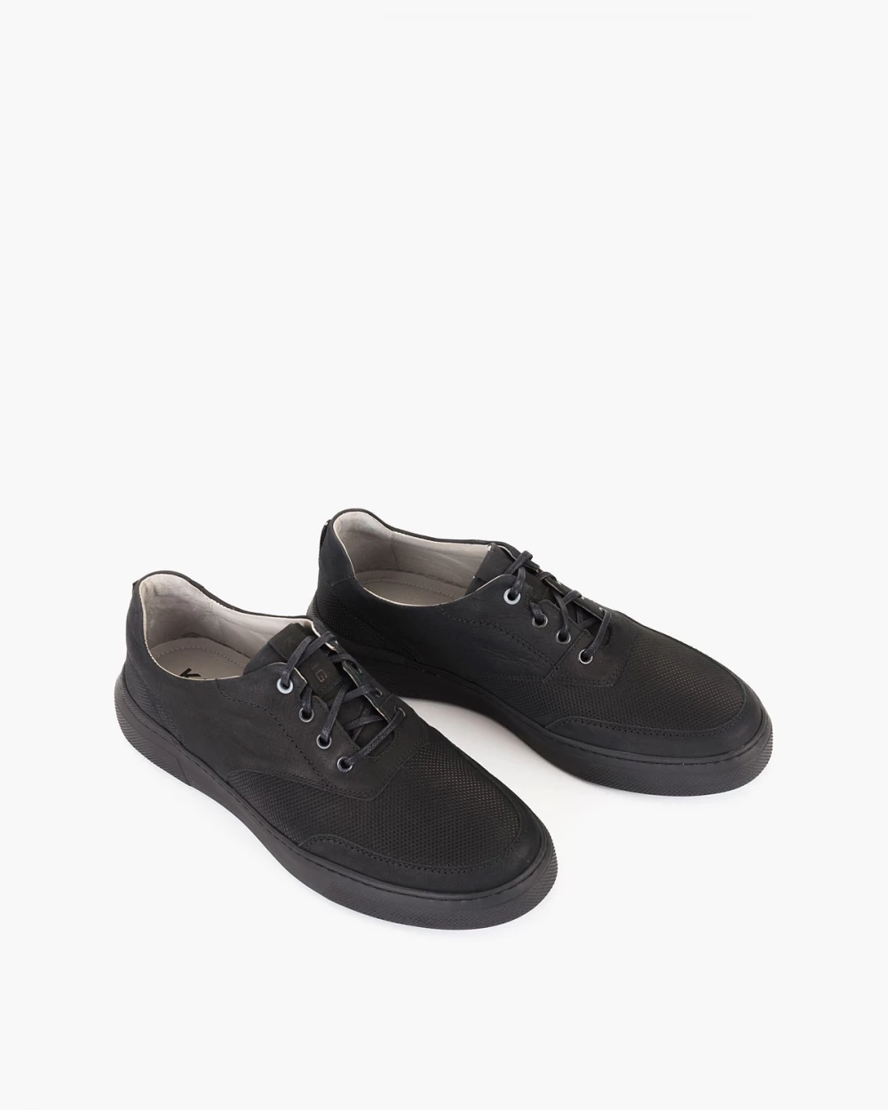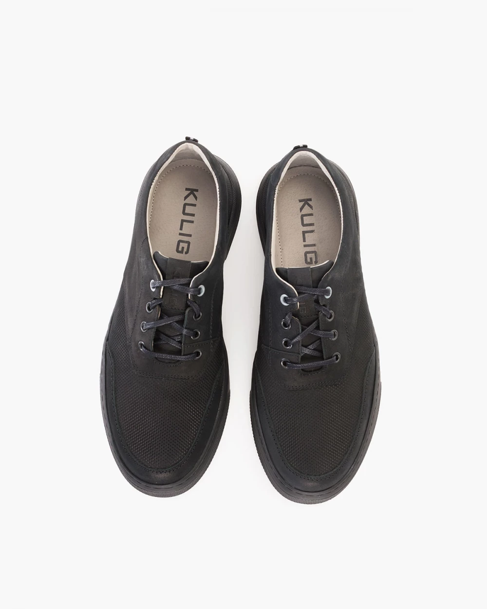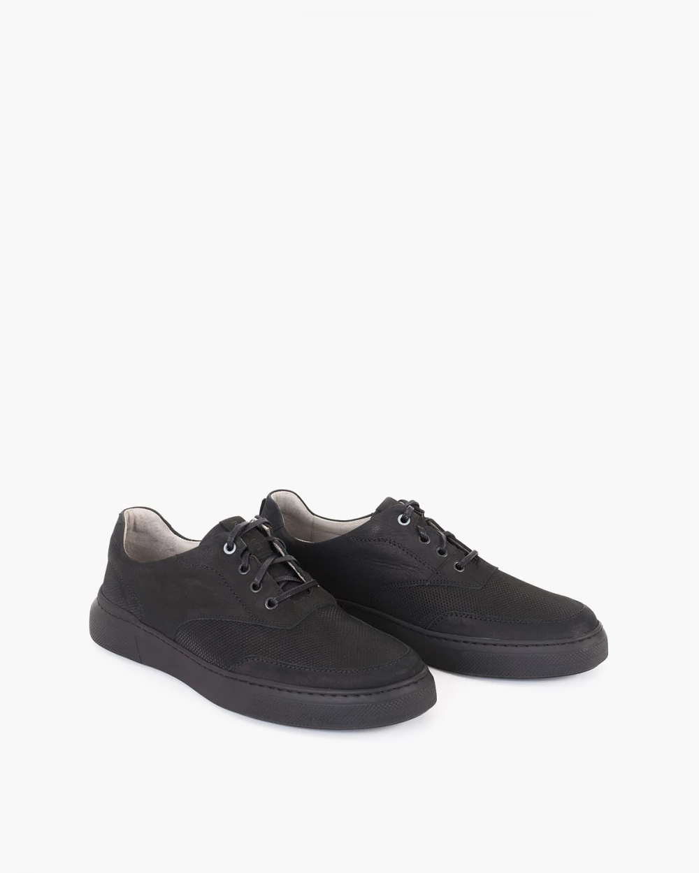 Czarne półbuty męskie sznurowane ze skóry nubukowej