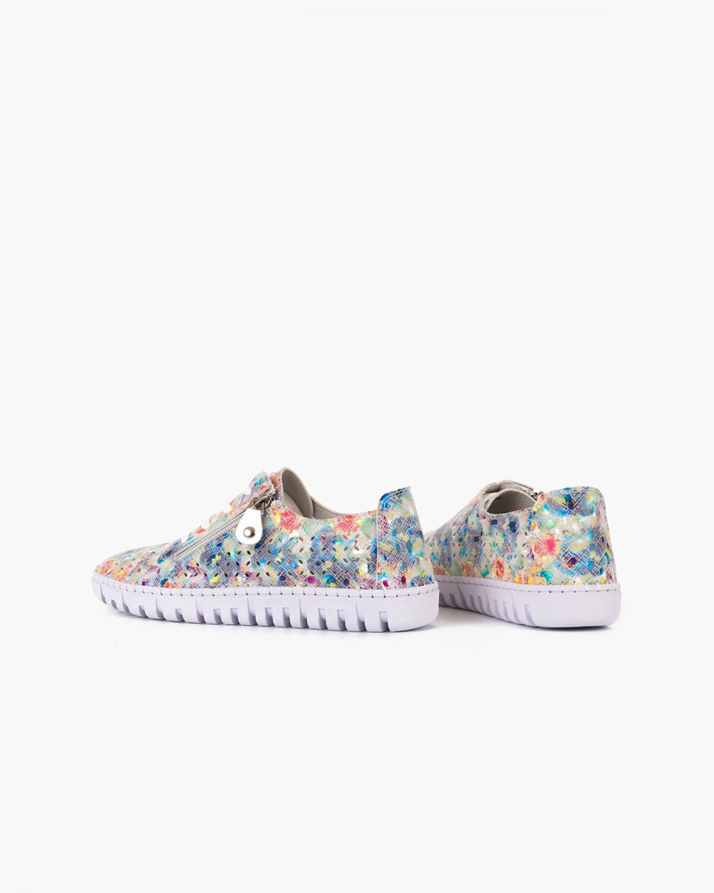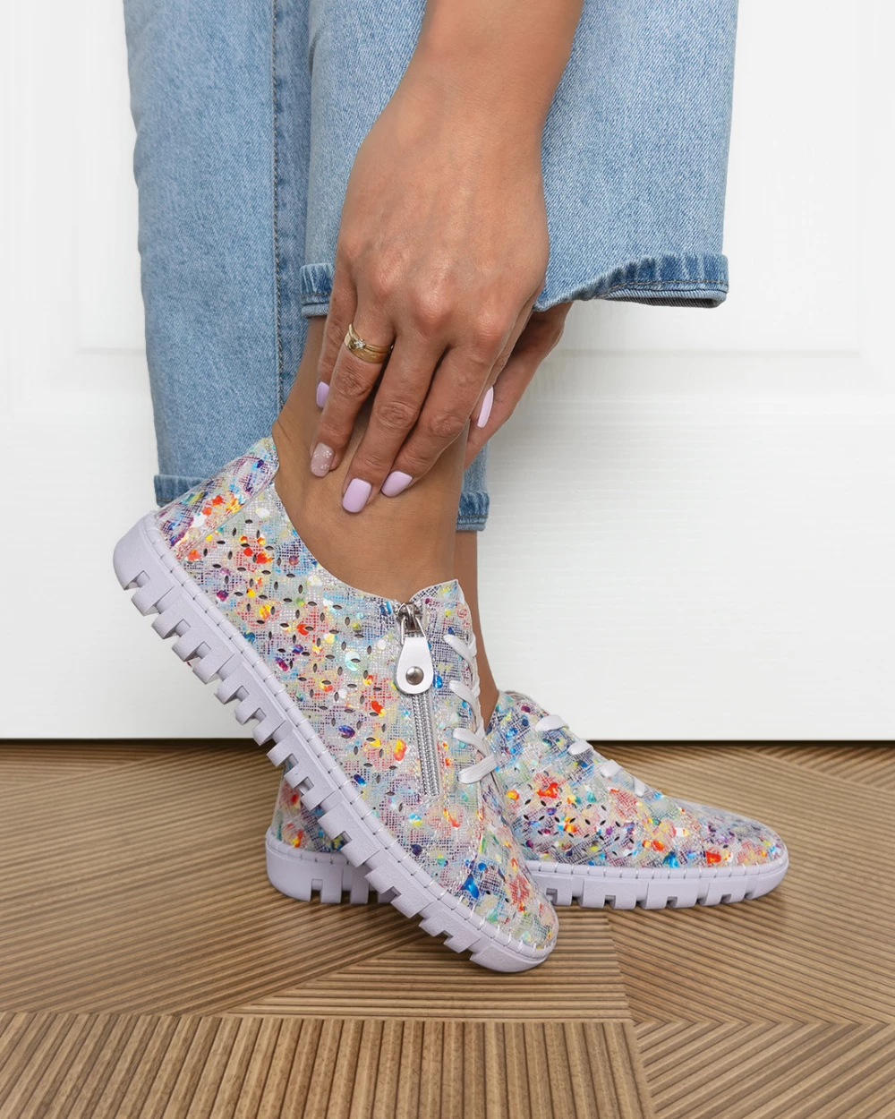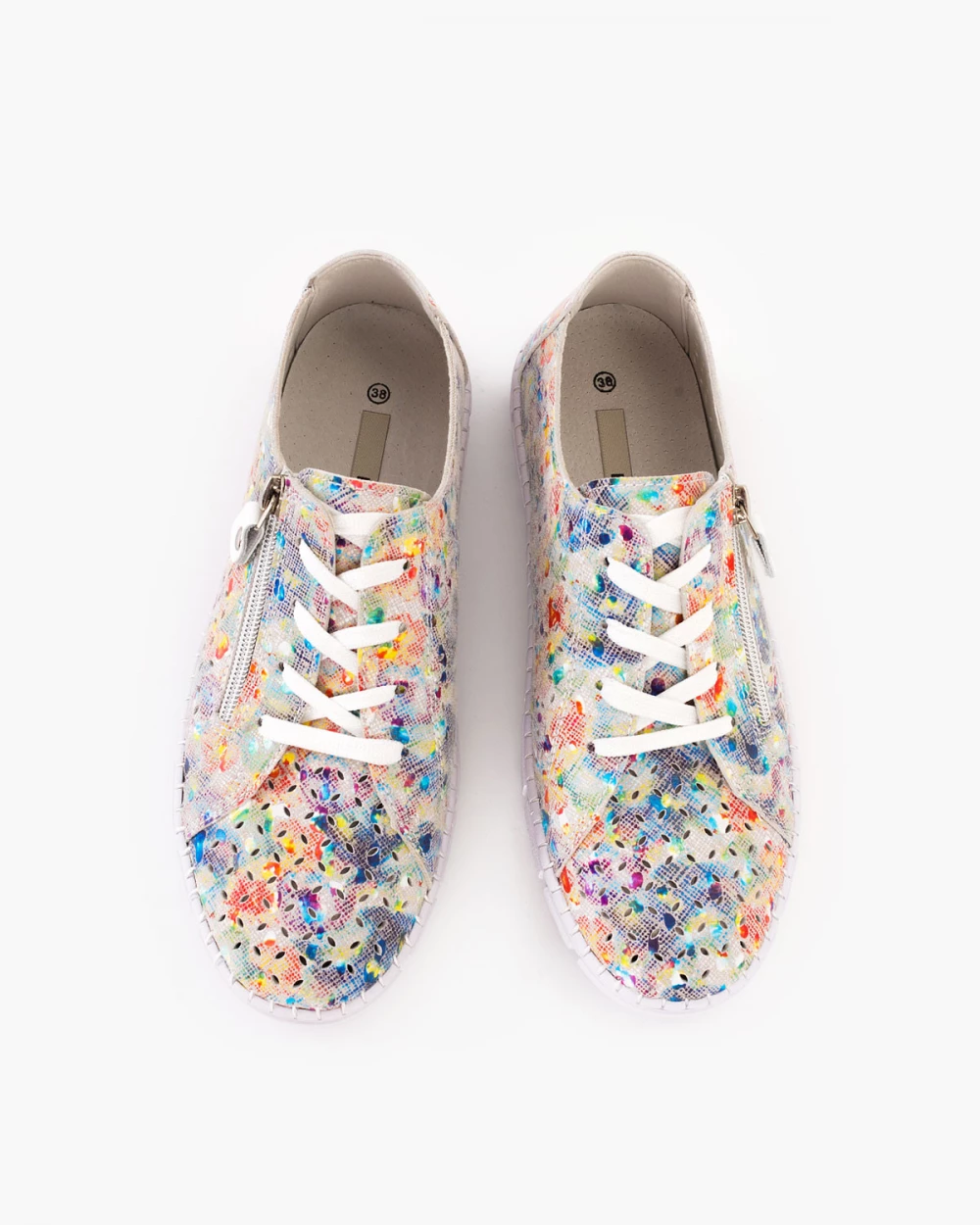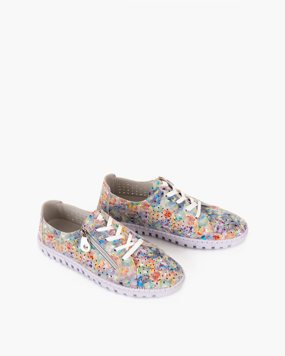 Kolorowe półbuty damskie ażurowe ze skóry nubukowej
