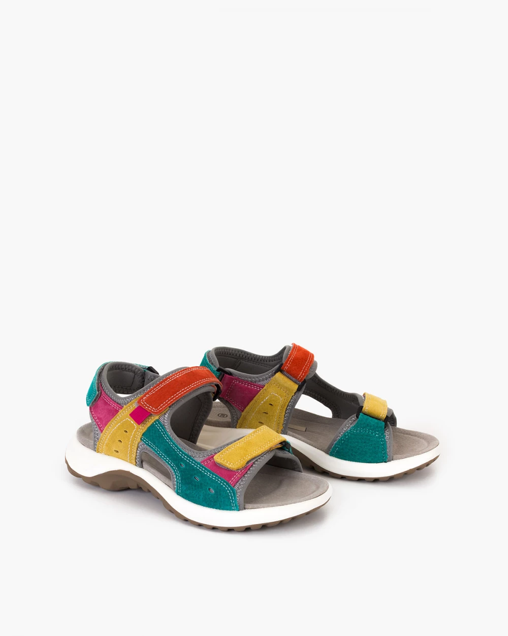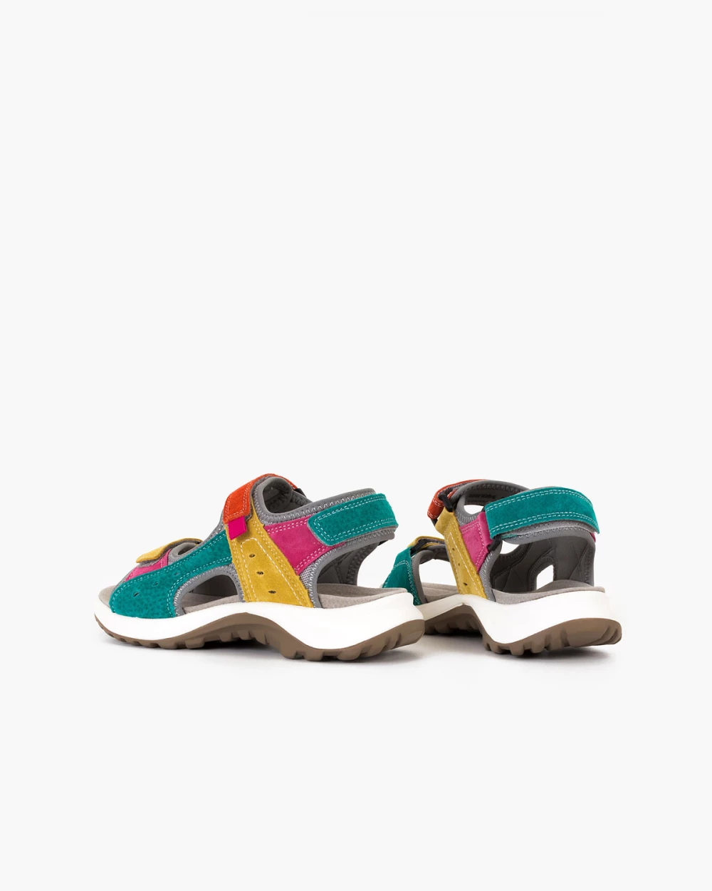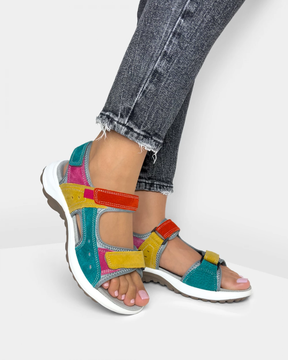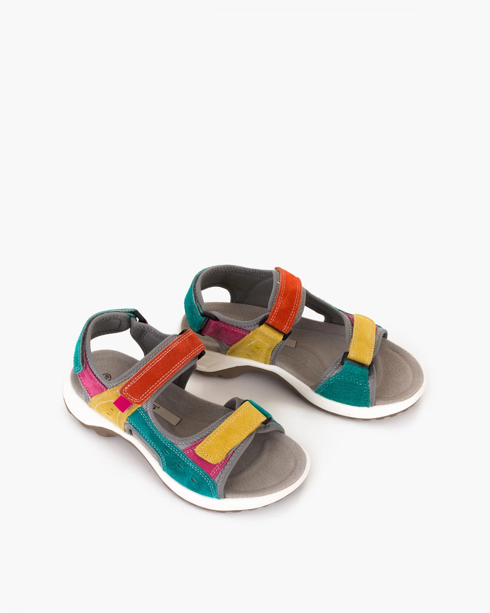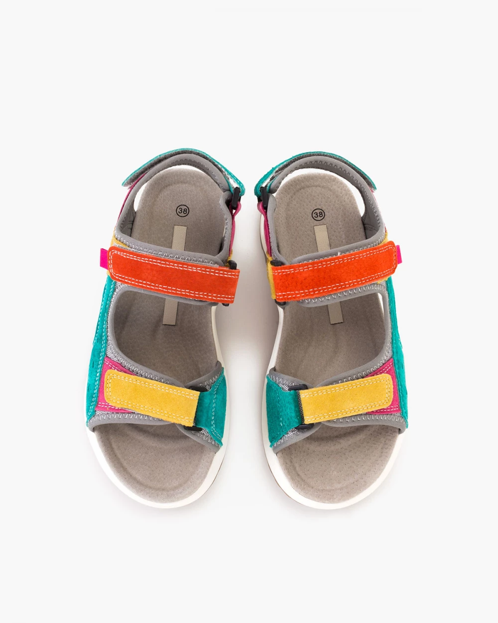 Wielokolorowe sandały damskie ze skóry welurowej na rzepy