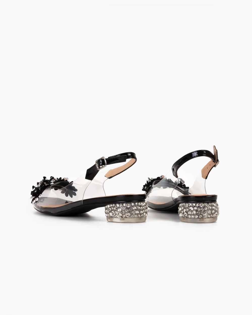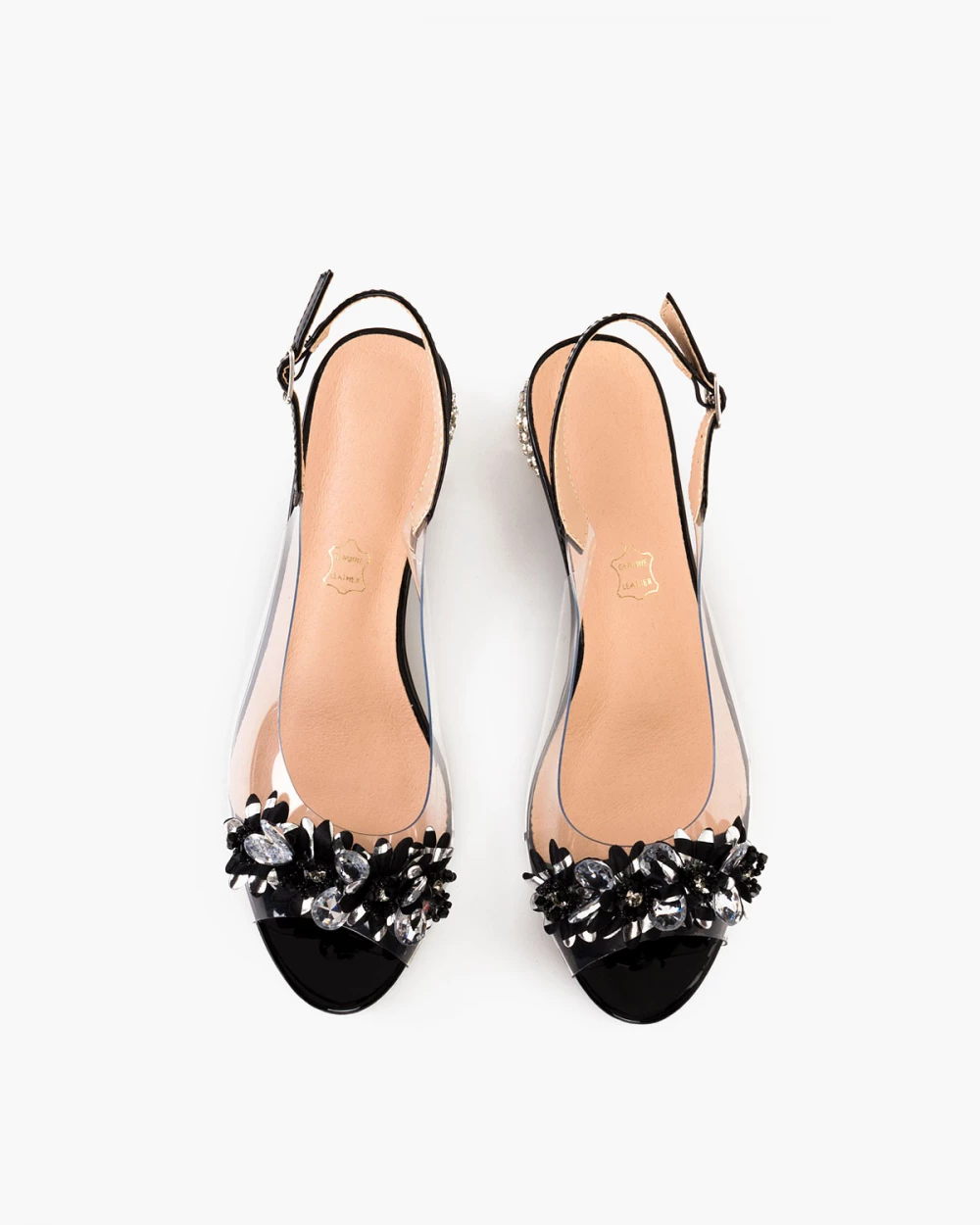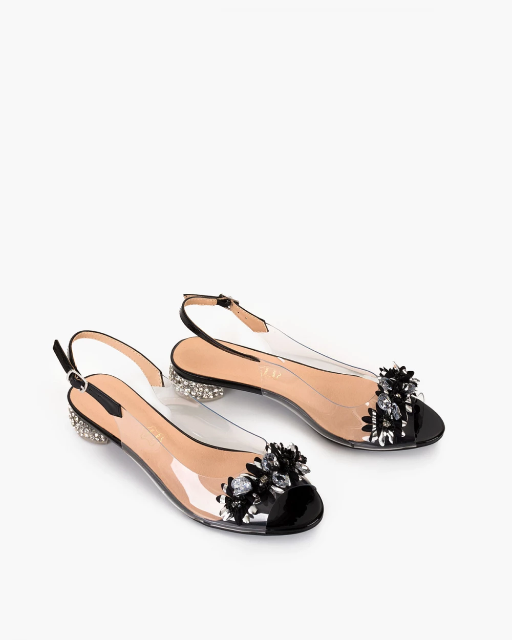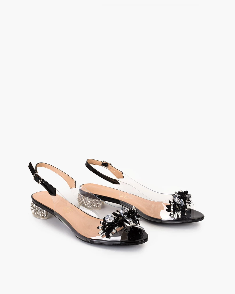 Czarne sandały żelowe z kamieniami na niskim obcasie