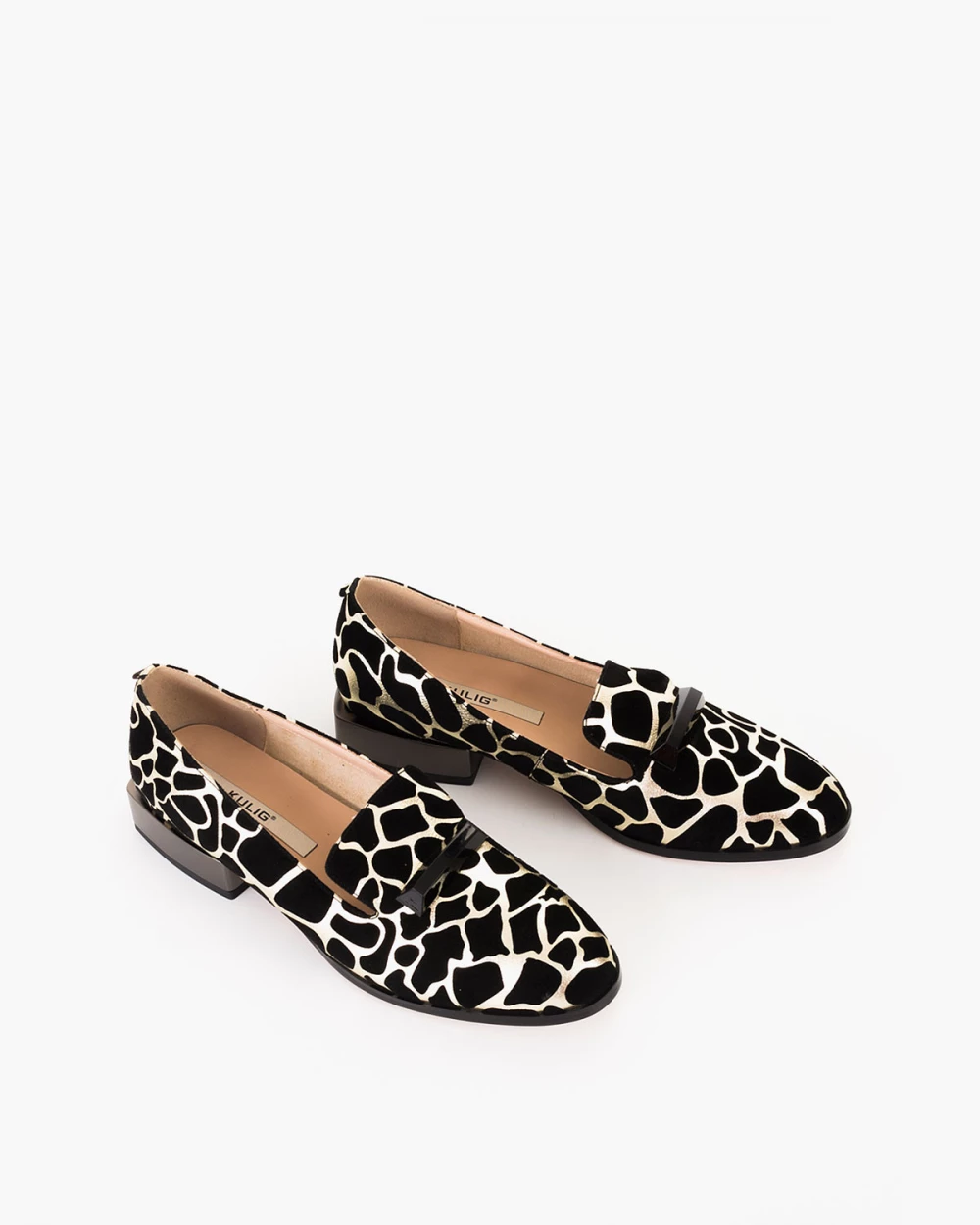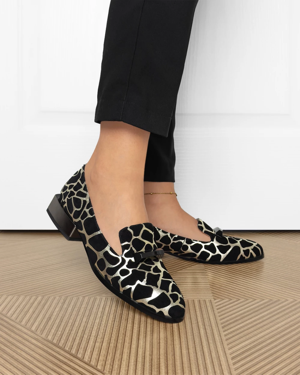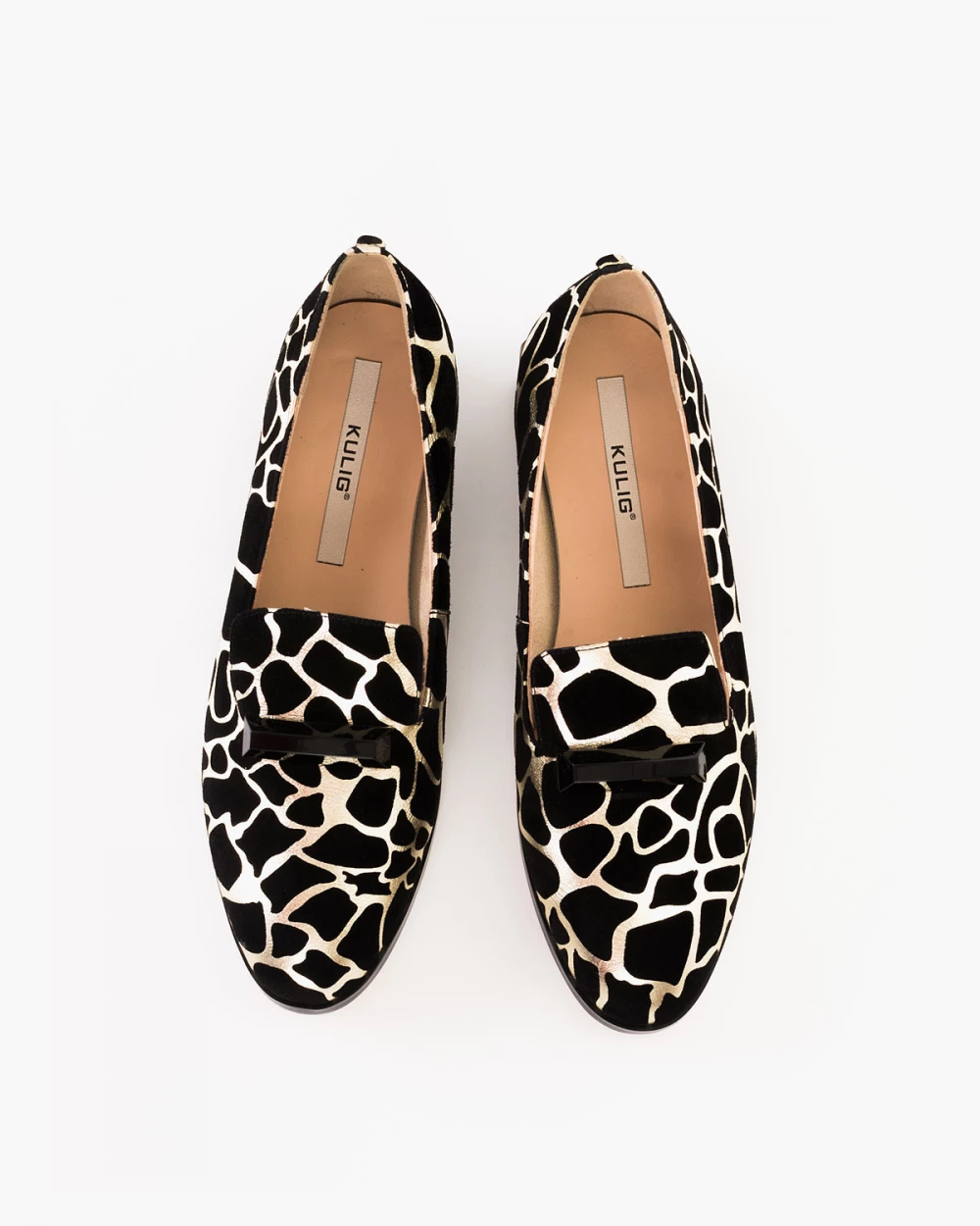 Czarno-złote mokasyny damskie zamszowe na klocku