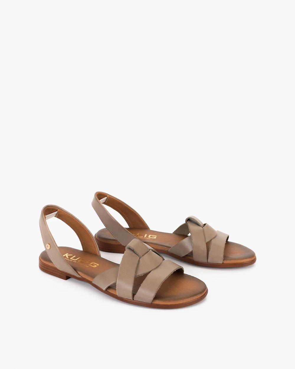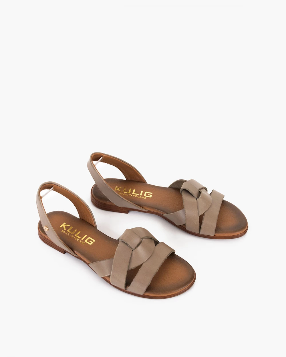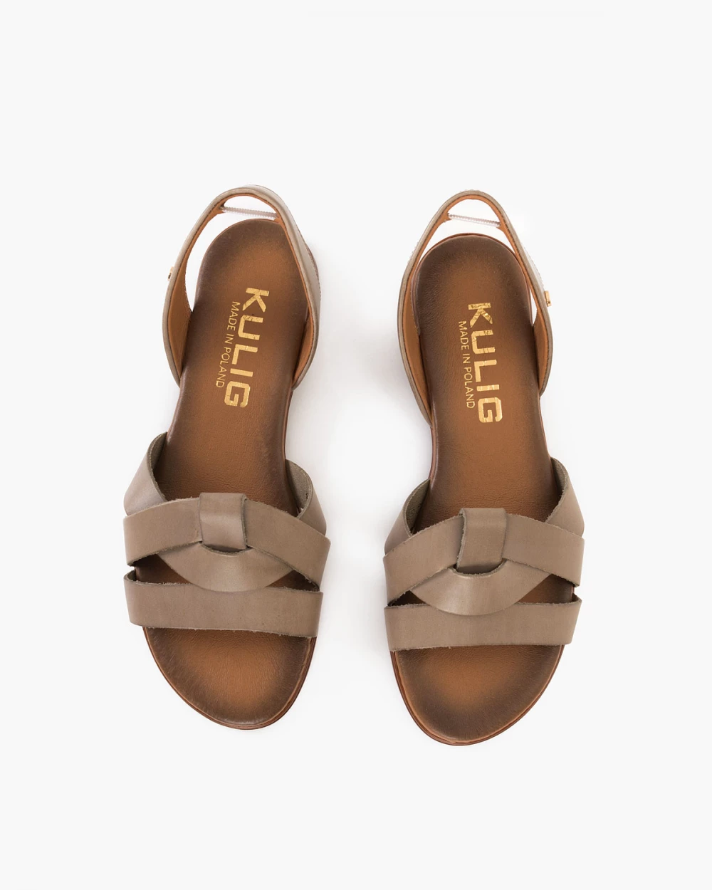 Ciemnobeżowe sandały ze skóry licowej z gumką