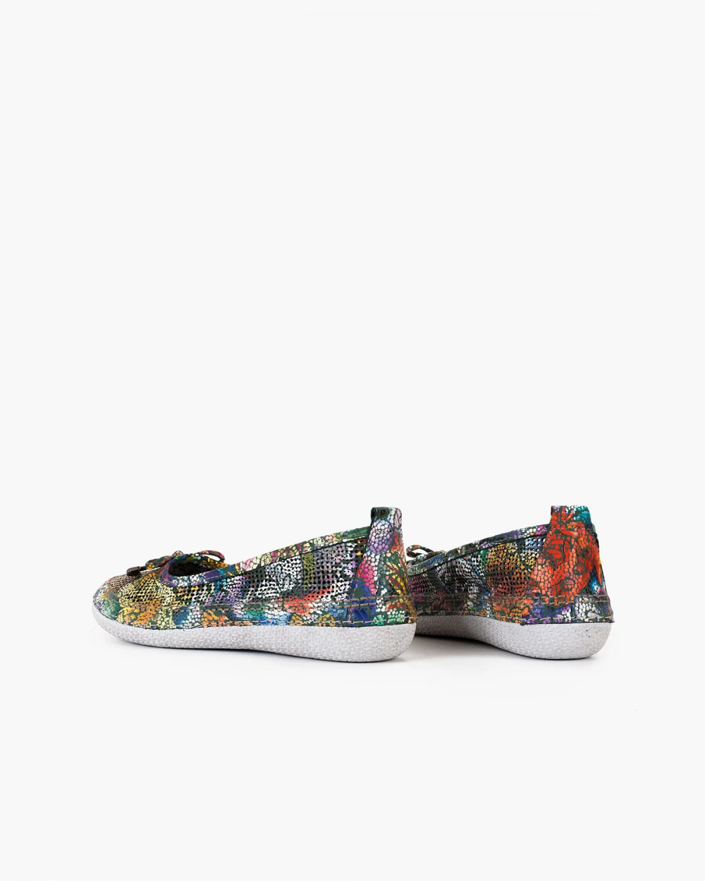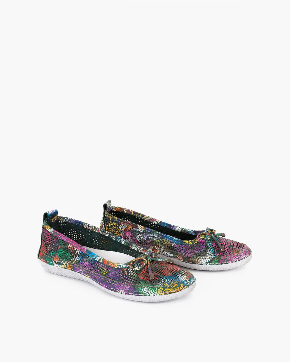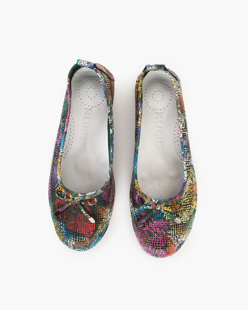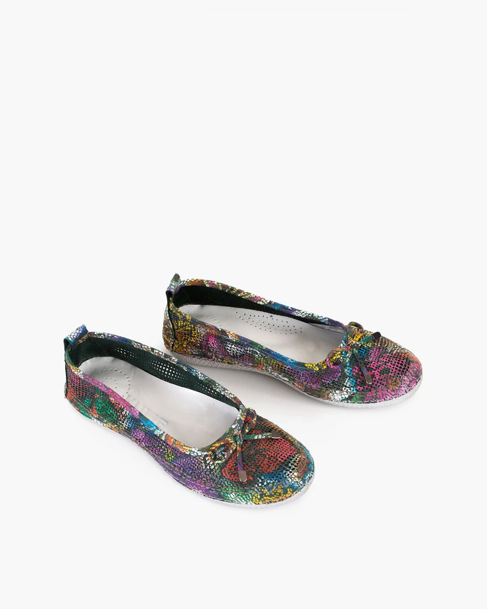 Kolorowe baleriny damskie skórzane z motywem kwiatowym