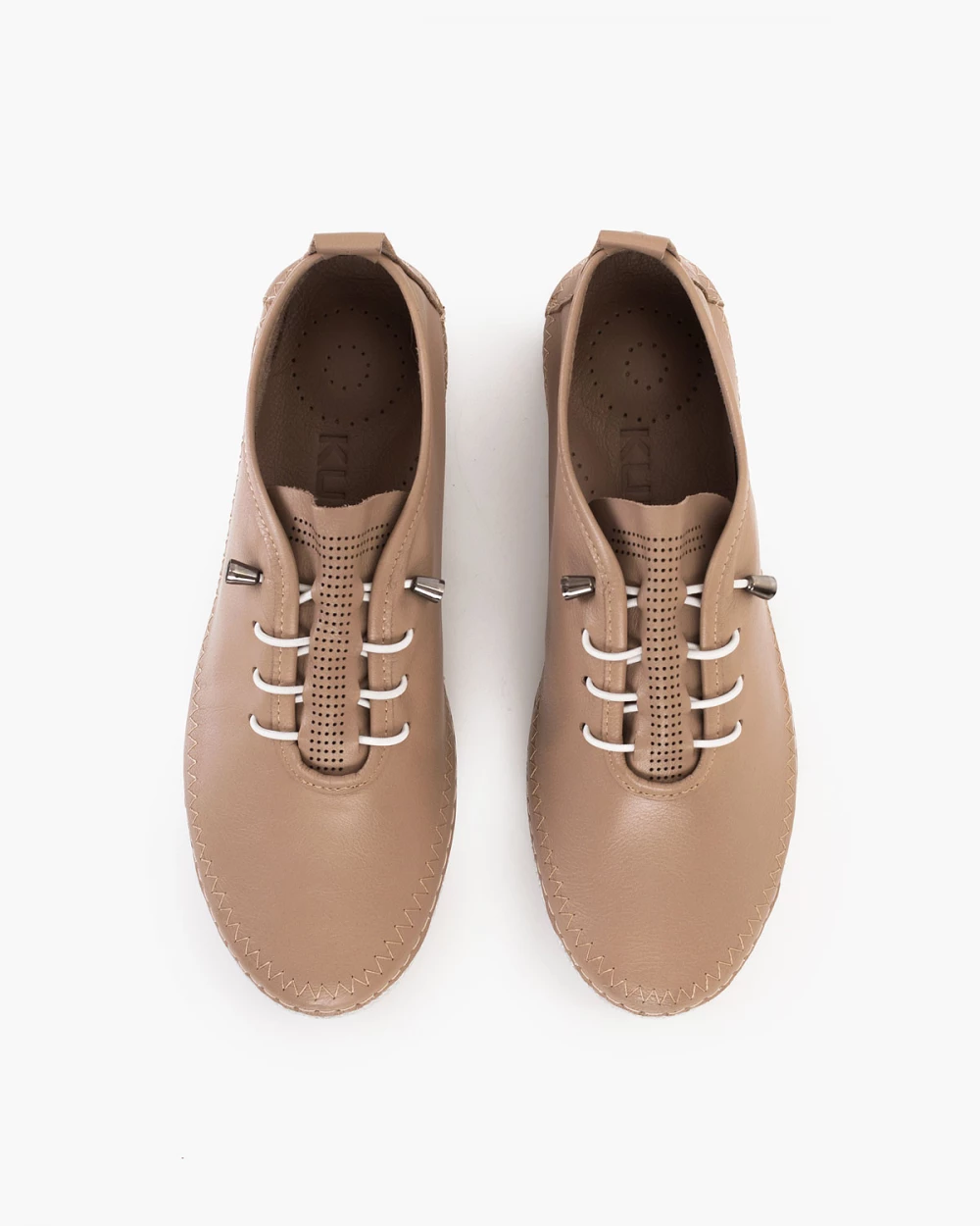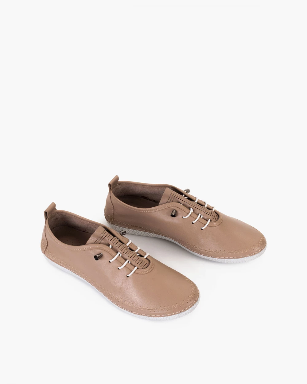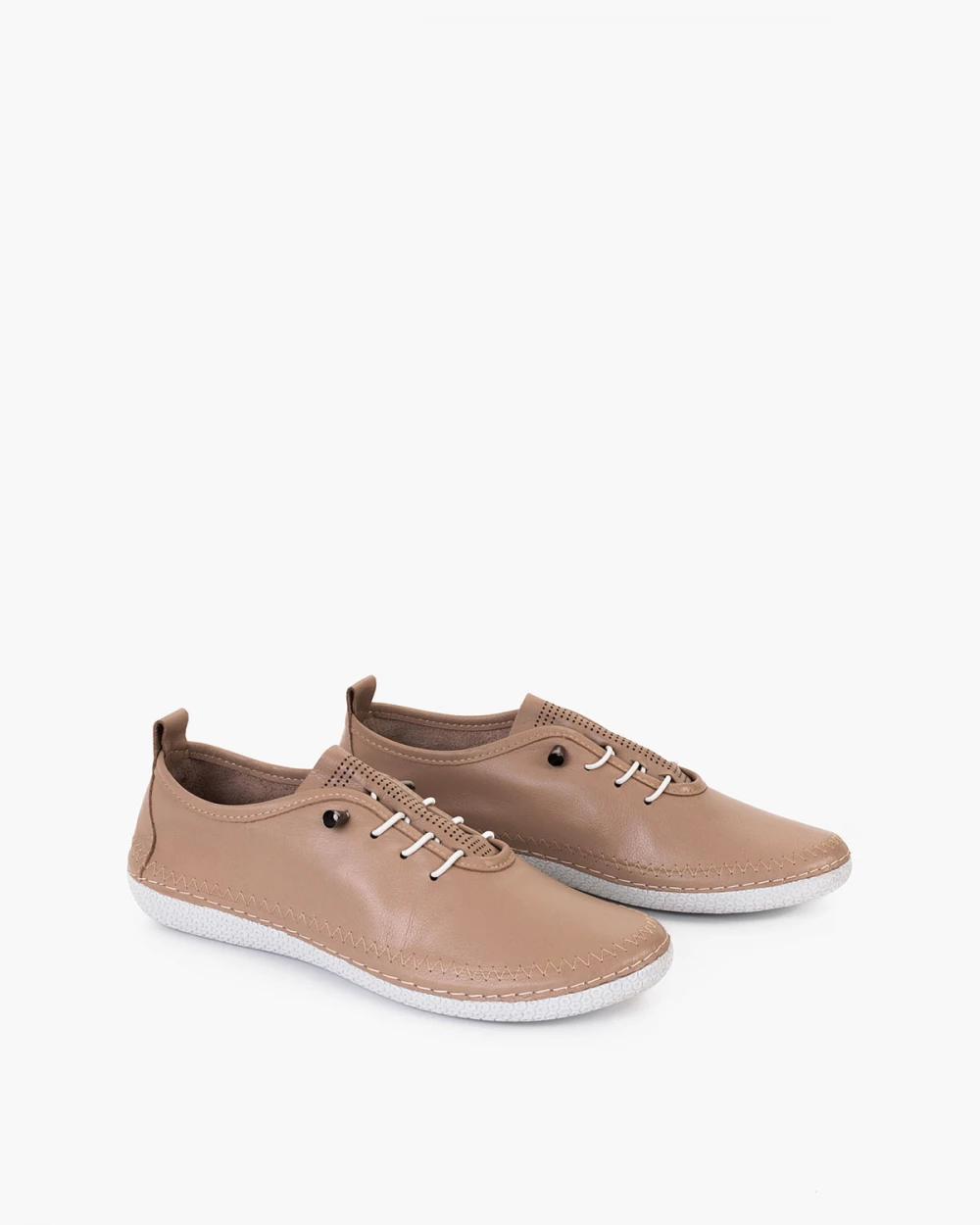 Ciemnobeżowe półbuty damskie z naturalnej skóry licowej