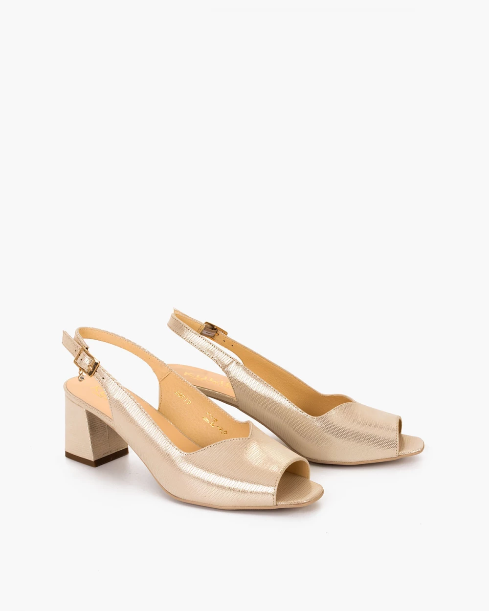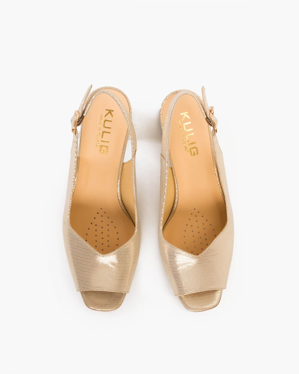 Złote sandały ze skóry naturalnej na słupku