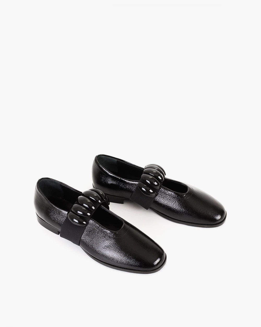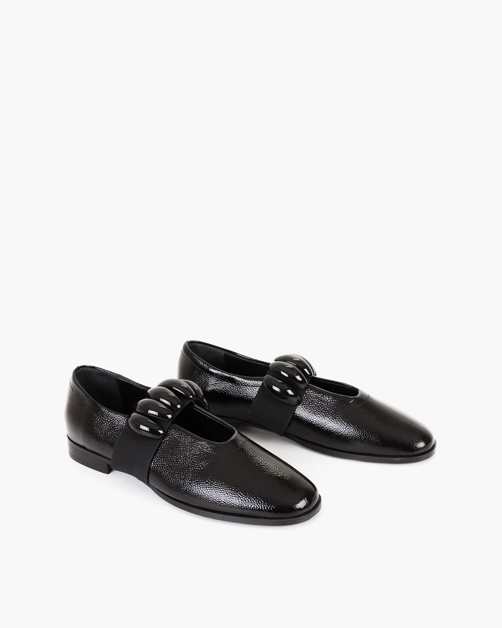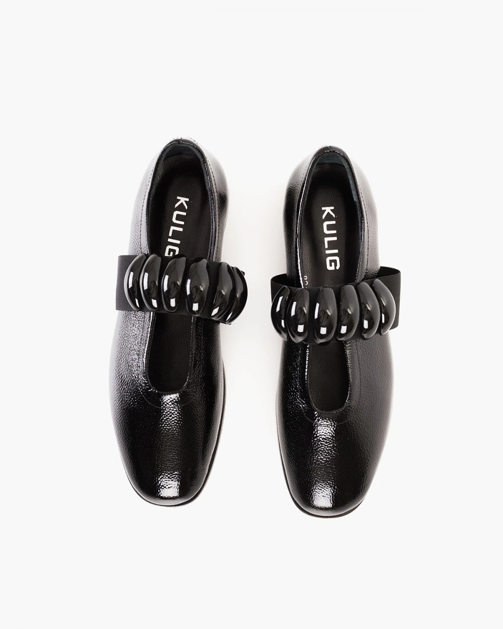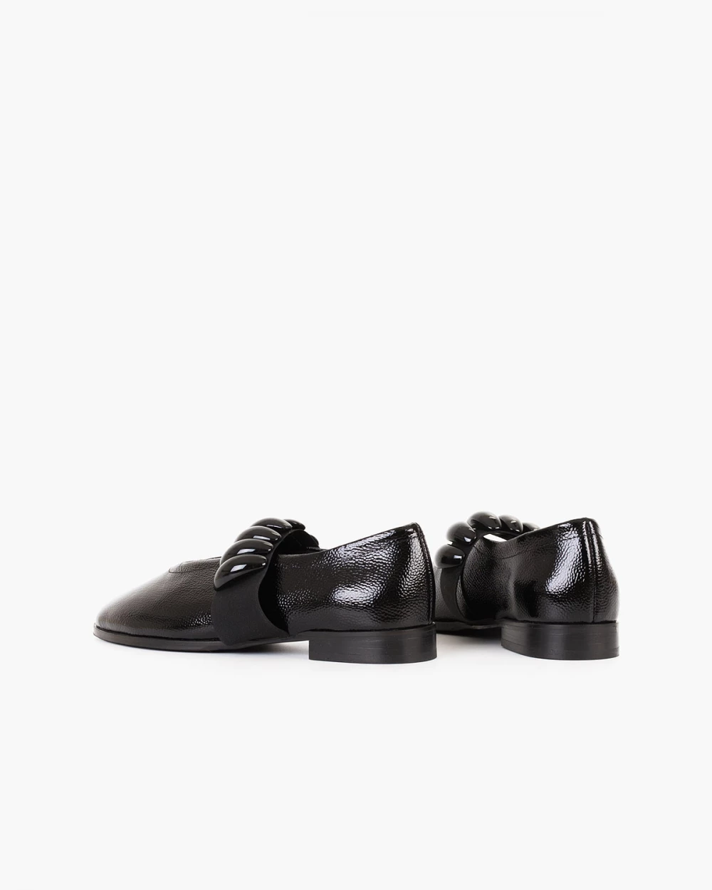 Czarne półbuty damskie ze skóry licowej z kamieniami