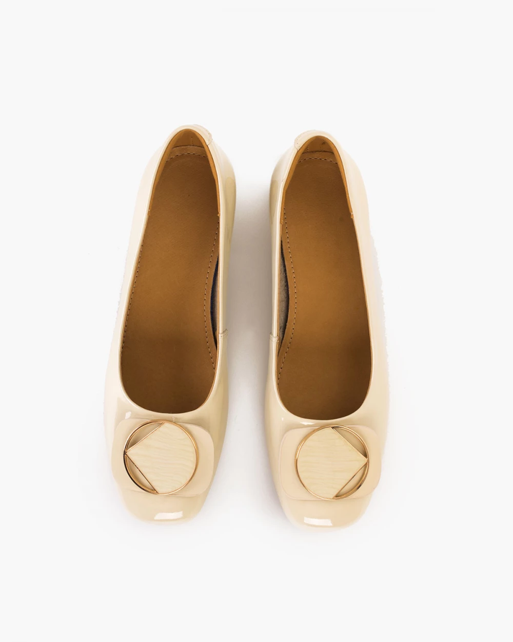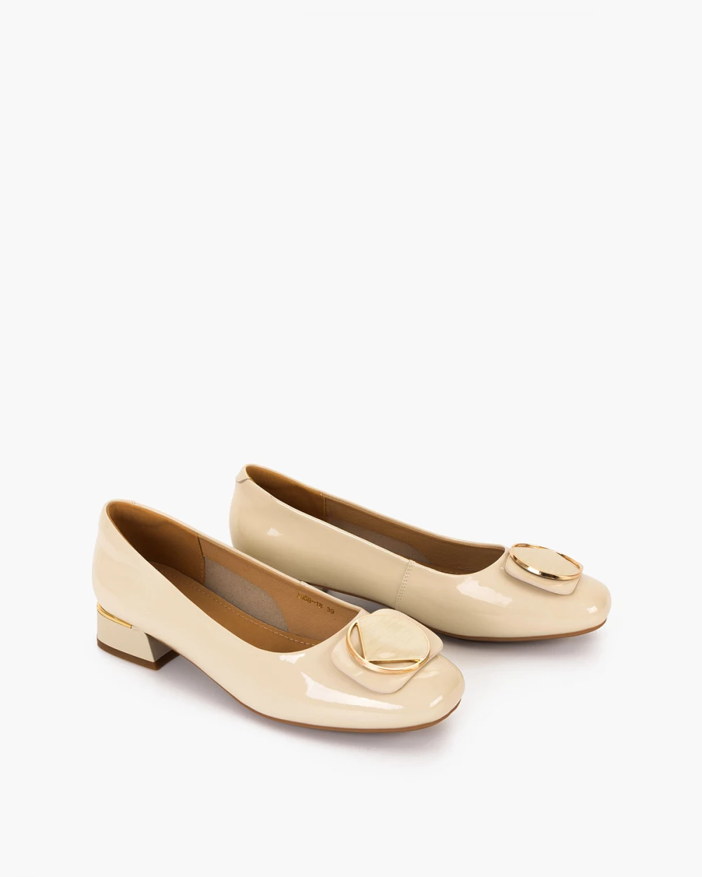 Jasnobeżowe czółenka ze skóry lakierowanej na klocku