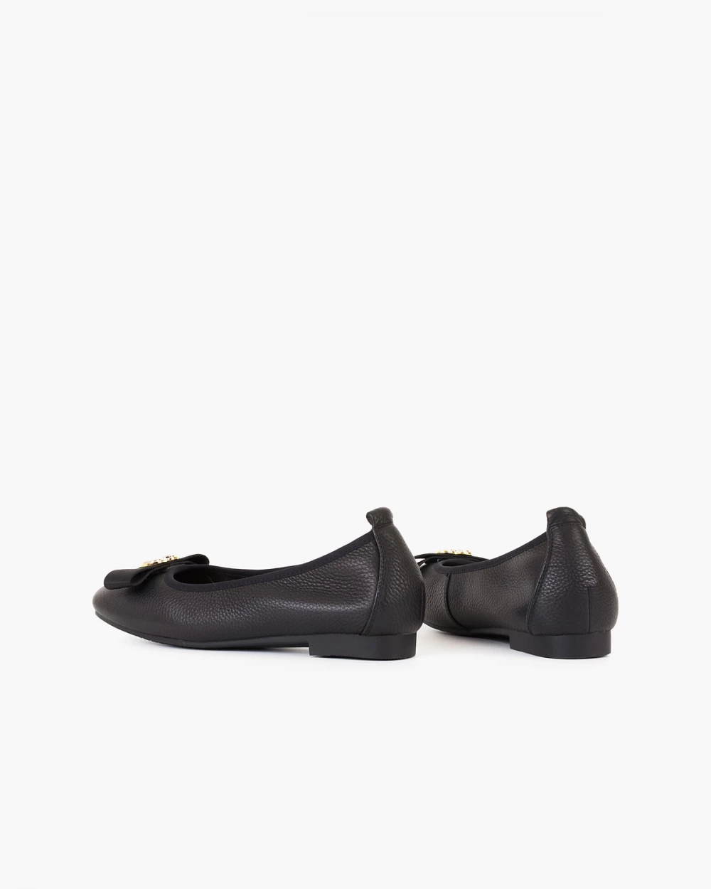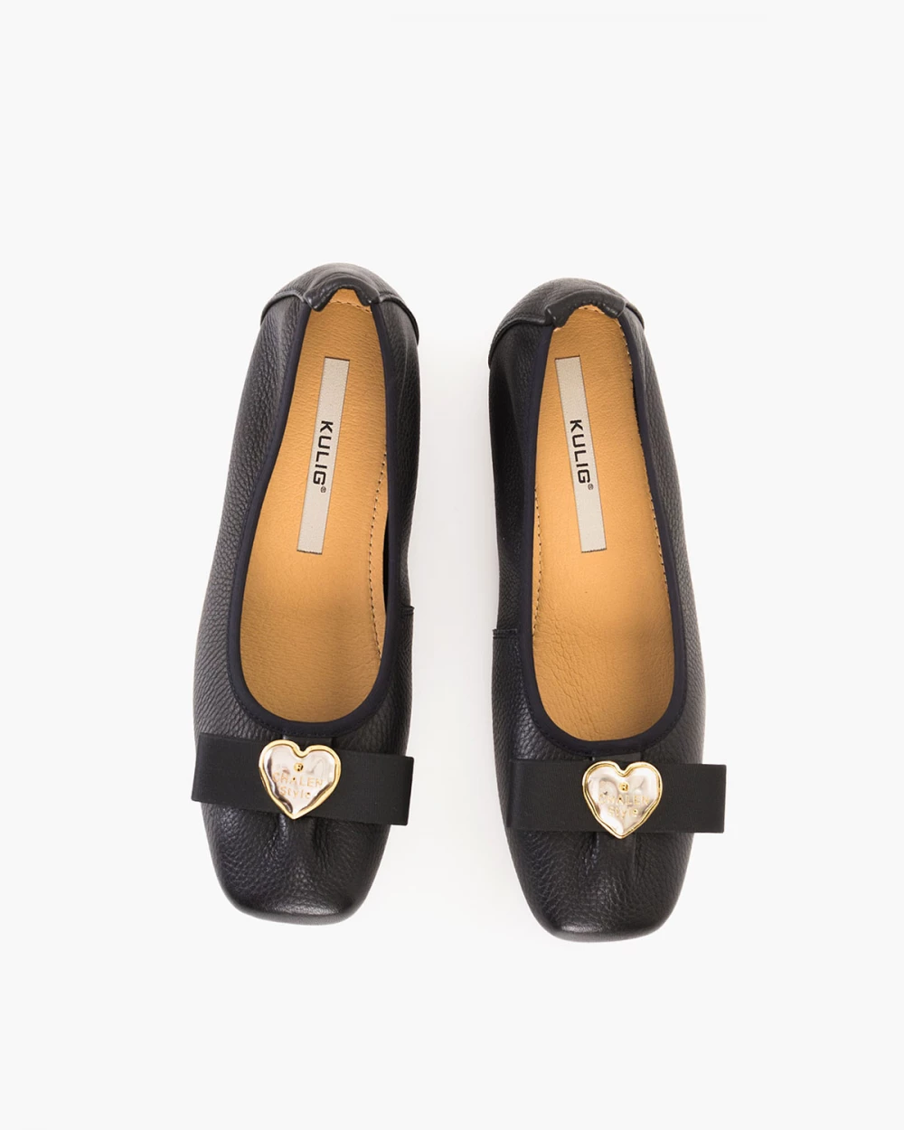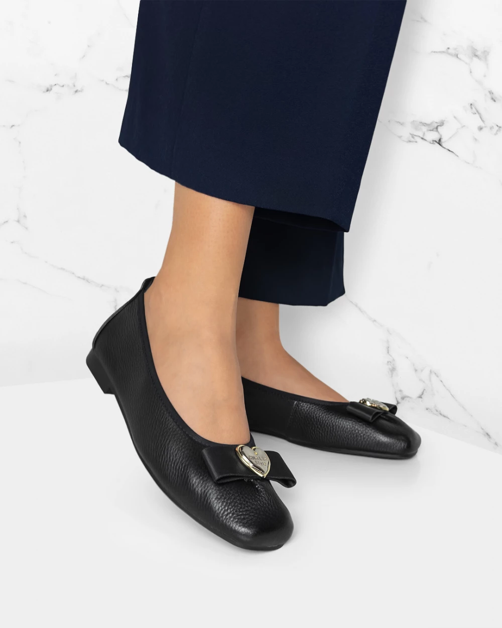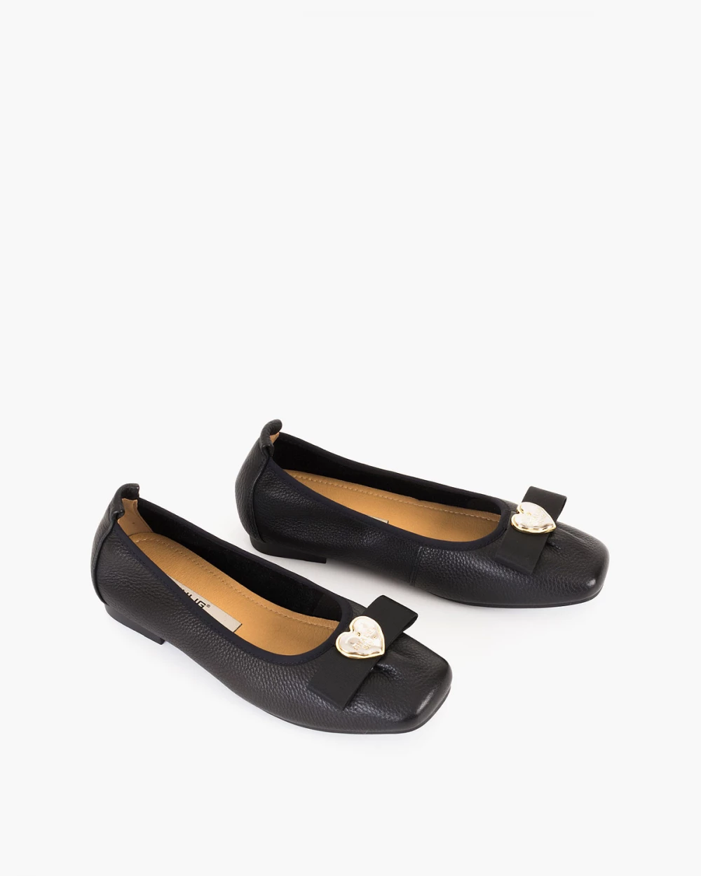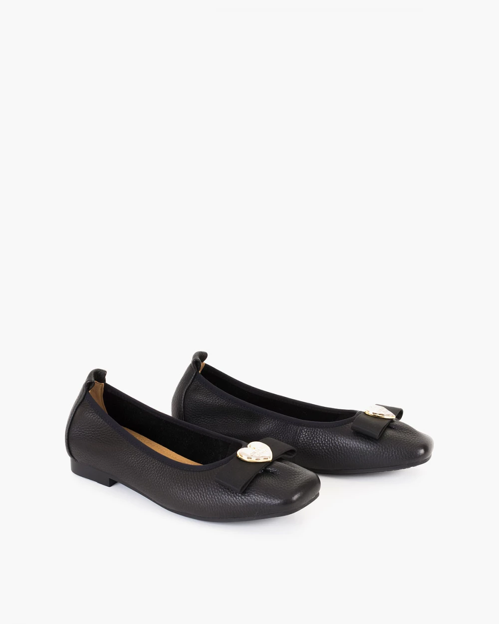 Czarne baleriny damskie skórzane z serduszkiem