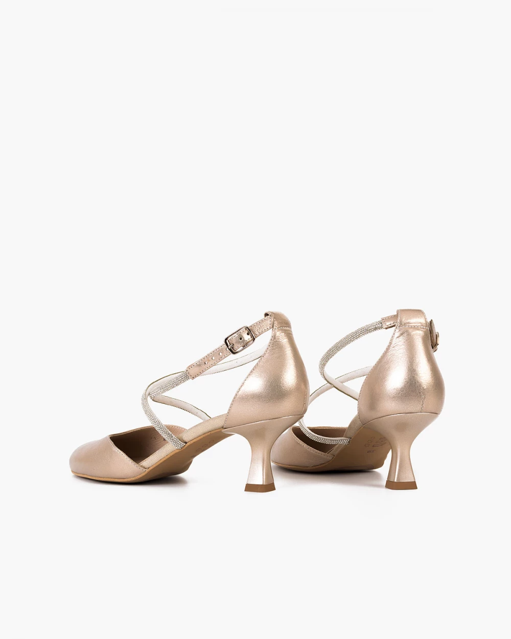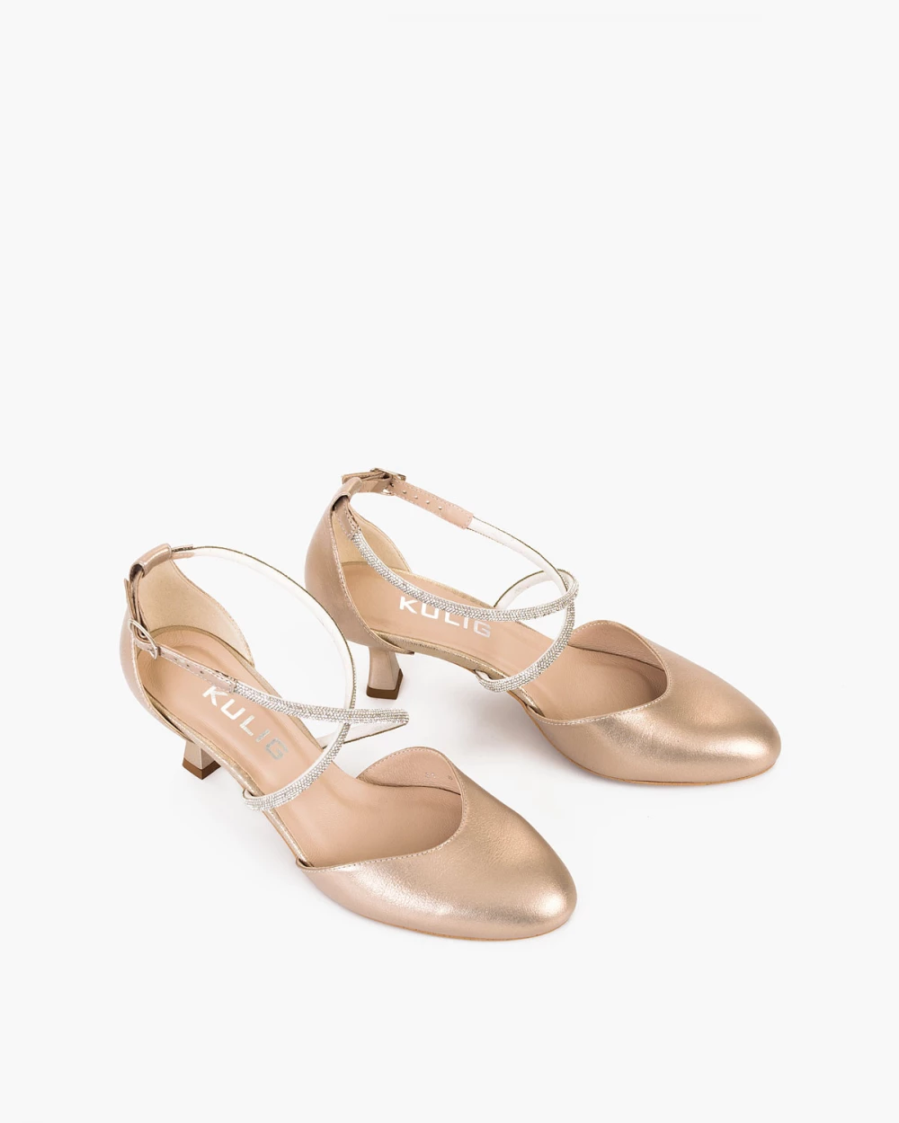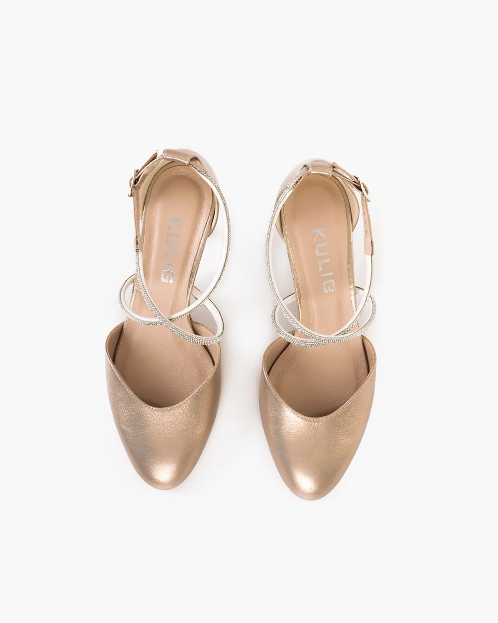 Złote czółenka z naturalnej skóry licowej na szpilce